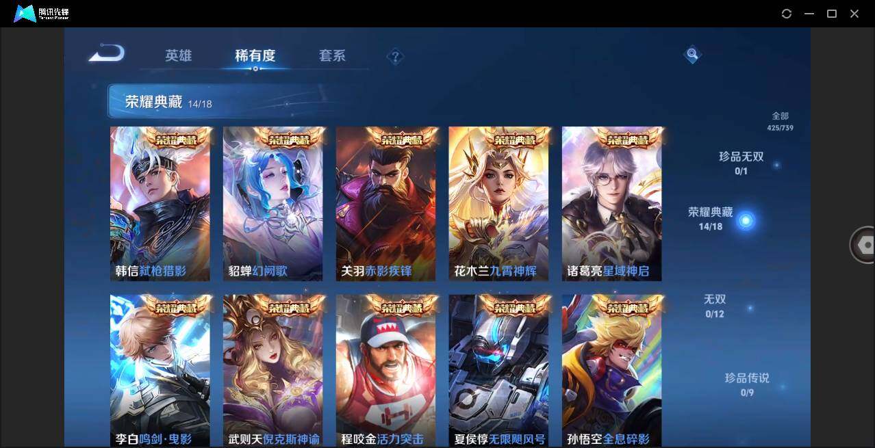 【荣耀典藏】:武则天英雄,孙悟空全息碎影,武则天倪克斯神谕,夏侯惇无限飓风号,小乔天鹅之梦,孙尚香杀手不太冷,鲁班七号星空梦想,芈月大秦宣太后,程咬金活力突击,李白鸣剑曳影,诸葛亮星域神启,花木兰九霄神辉,关羽赤影疾锋,貂蝉幻阙歌,韩信弑枪猎影