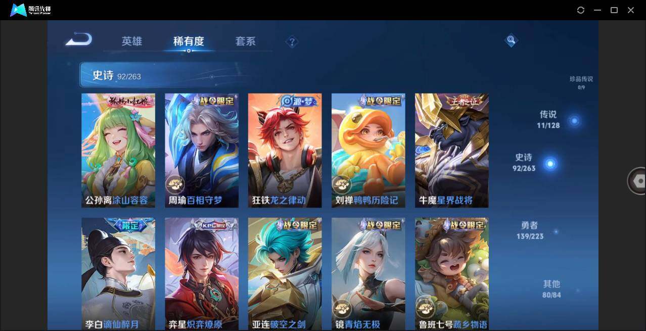 - [12314313]【商品标题】:安卓Q-V8-至尊星耀I段位-125英雄-207皮肤-2典藏-0珍品无双-0无双-0珍品传说-11传说-63史诗 【荣耀典藏】:李白鸣剑曳影,诸葛亮星域神启 【内测皮肤】:孙尚香蔷薇恋人,狂铁特工战影 【传说皮肤】:貂蝉仲夏夜之梦,干将莫邪久胜战神,刘备时之恋人,李信一念神魔,关羽武圣,孙悟空零号赤焰,虞姬启明星使,镜炽阳神光,周瑜音你心动,曜李逍遥 ,马超无双飞将 【限定皮肤】:白起狰,狄仁杰阴阳师,赵云皇家上将,赵云百木心枪,孙尚香蔷薇恋人,庄周高山流水,钟无艳超时空战士,白起夜都怪侠,芈月重明,芈月幻夜卜梦,夏侯惇朔风刀,甄姬落雪兰心,曹操烛龙,典韦穷奇,狄仁杰魔术师,狄仁杰万华元夜,达摩沙漠行僧,项羽海滩派对,老夫子醍醐杖,关羽武圣,程咬金演武夺筹,露娜一生所爱,韩信傲雪梅枪,王昭君午后时光,兰陵王金庭之子,花木兰青春决赛季,孙悟空零号赤焰,后羿圣弓游侠,李元芳云中旅人,虞姬启明星使,钟馗驱傩正仪,干将莫邪真爱魔法,太乙真人饕餮,鬼谷子原初探秘者,鬼谷子五谷丰年,黄忠火炮绅士,苏烈千军破阵,弈星混沌棋,梦奇顽趣,沈梦溪大漠名商,明世隐吟游魔法,裴擒虎李小龙,裴擒虎擒涛扼浪,狂铁御狮,狂铁电玩高手,米莱狄御霄,曜李逍遥 ,蒙犽狂想玩偶喵,镜匿光追影者,桑启海盐诗旅 【年限皮肤】:关羽武圣 【赛季限定】:白起狰,芈月重明,夏侯惇朔风刀,曹操烛龙,典韦穷奇,狄仁杰万华元夜,达摩沙漠行僧,老夫子醍醐杖,程咬金演武夺筹,兰陵王金庭之子,李元芳云中旅人,钟馗驱傩正仪,太乙真人饕餮,鬼谷子原初探秘者,苏烈千军破阵,弈星混沌棋,梦奇顽趣,沈梦溪大漠名商,裴擒虎擒涛扼浪,狂铁御狮,米莱狄御霄,桑启海盐诗旅 【战令限定】:钟无艳超时空战士,白起夜都怪侠,芈月幻夜卜梦,甄姬落雪兰心,王昭君午后时光,后羿圣弓游侠,干将莫邪真爱魔法,黄忠火炮绅士,明世隐吟游魔法,狂铁电玩高手,蒙犽狂想玩偶喵 【史诗皮肤】:露娜紫霞仙子,赵云皇家上将,赵云未来纪元,貂蝉圣诞恋歌,王昭君偶像歌手,狄仁杰魔术师,廉颇地狱岩魂,宫本武藏鬼剑武藏,孙尚香蔷薇恋人,孙尚香水果甜心,嬴政暗夜贵公子,嬴政摇滚巨星,妲己魅力维加斯,妲己女仆咖啡,墨子金属风暴,吕布圣诞狂欢,刘禅绅士熊喵,曹操幽灵船长,李白千年之狐,吕布末日机甲,张飞乱世虎臣,花木兰水晶猎龙者,兰陵王暗隐猎兽者,诸葛亮黄金分割率,亚瑟心