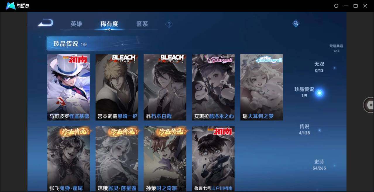 - PX_2061678-46 苹果QQ/非凡王者/303皮肤/125英雄/3典藏/0珍品无双/0无双/2珍品传说/27传说/88史诗/10稀有英雄 【2 珍品传说】怪盗基德 马可波罗,江户川柯南 鲁班七号, 【3 典藏皮肤】杀手不太冷 孙尚香,星空梦想 鲁班七号,拾光映像 瑶, 【27 传说皮肤】胖达荣荣 梦奇,启明星使 虞姬,云霓雀翎 虞姬,花朝如约 蔡文姬,白虎志 百里玄策,地狱火 孙悟空,云鹰