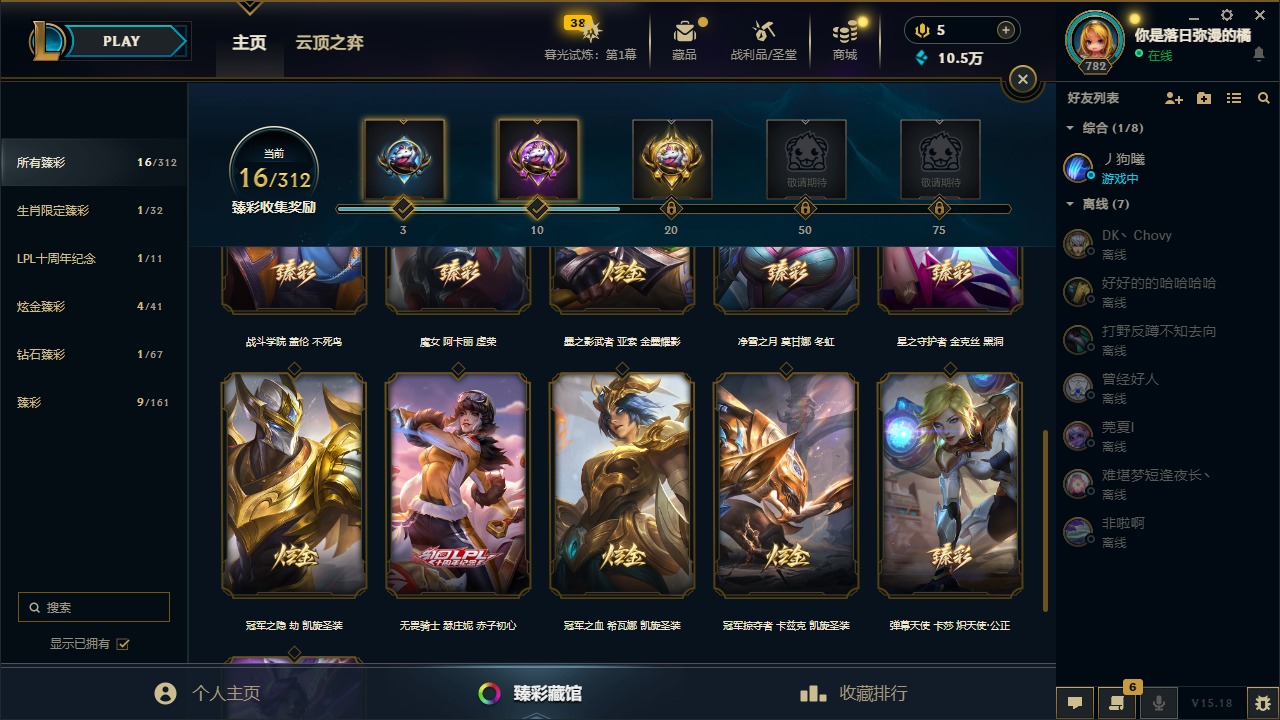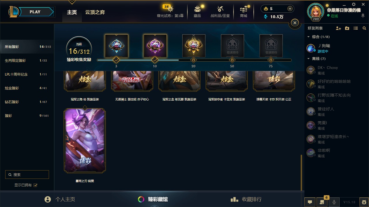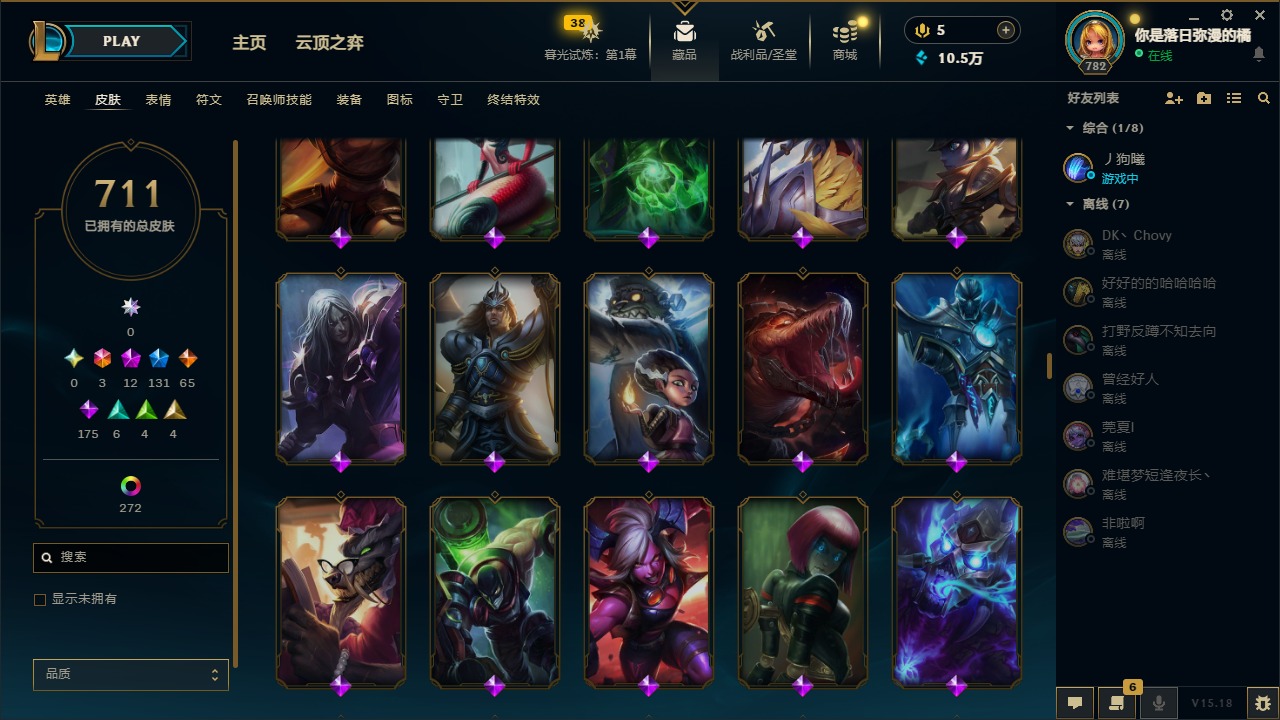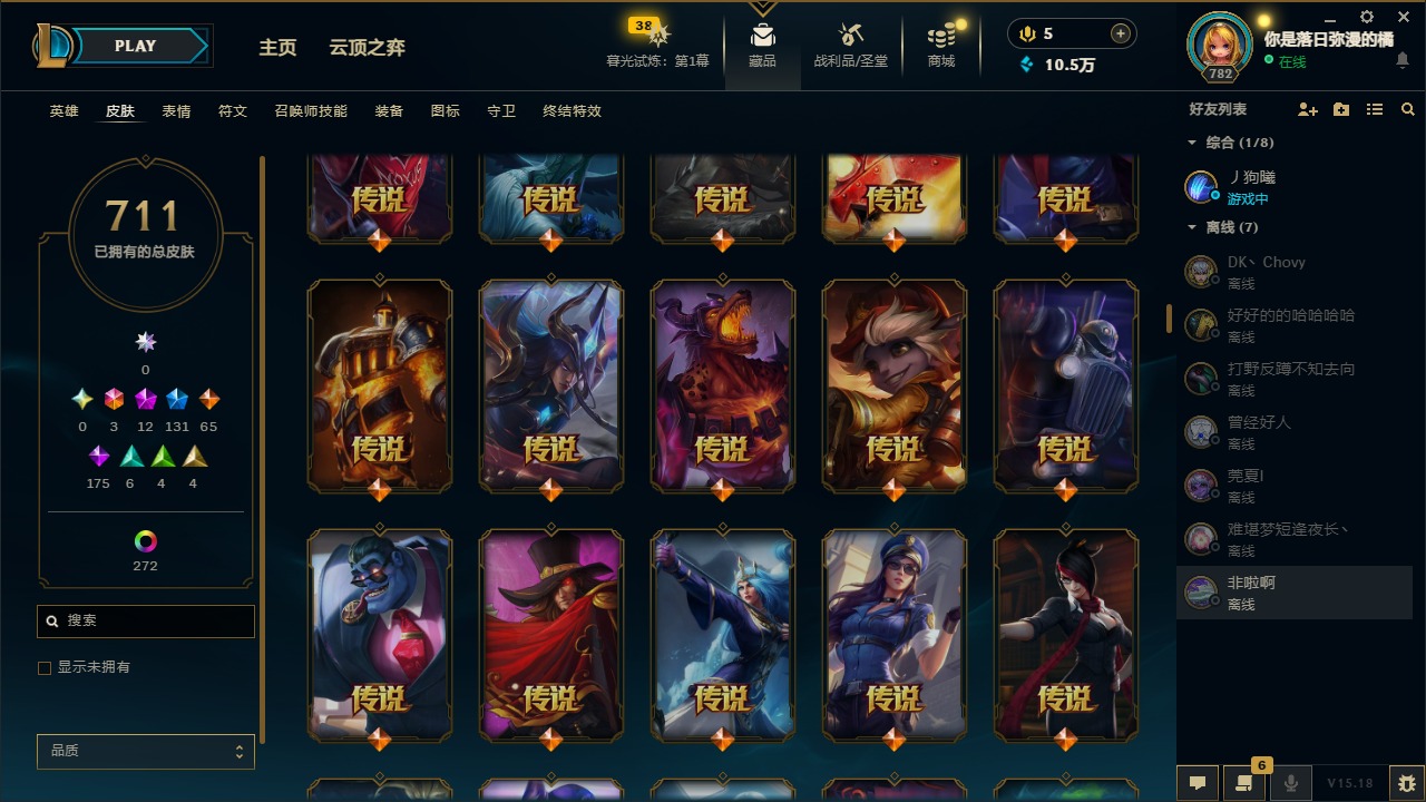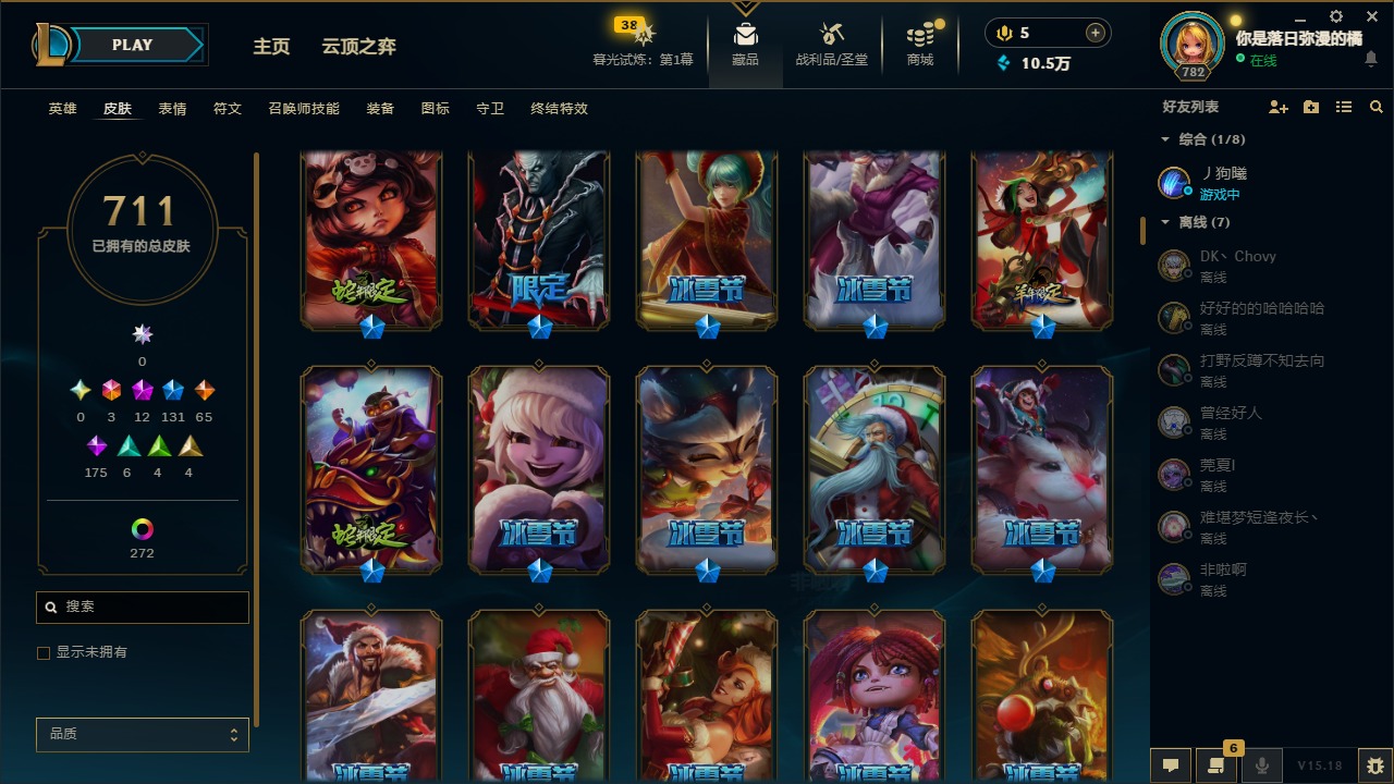 [12281384]3终极 12神话 131限定 65传说 175史诗 711皮肤 301炫彩 168英雄 可二次 可修改实名 优质装备:至臻 玉剑传说 武剑仙,至臻 战斗学院 拉克丝,至臻 K/DA 卡莎,至臻 星之守护者 妮寇,至臻 女帝 黛安娜,穿星魔锋,斩星魔剑,防爆天使 凯尔,暗影 沃里克,巧克力工坊 波比,创世纪 希维尔,地底世界 崔斯特,电玩战魂 人马,都铎王朝 图奇,防爆士兵 炼金,防爆士兵 格雷福斯,钢铁之翼 凤凰,冠军典狱长 锤石,冠军掠夺者 卡兹克,冠军之箭 艾希,冠军之矛 滑板鞋,冠军之刃 锐雯,冠军之刃 锐雯 2016,冠军之隐 劫,警用试作体K-9 内瑟斯,密林猎手 提莫,诺斯费拉图 弗拉基米尔,野兽猎人 德莱文,野兽猎人 瑟庄妮,野兽猎人 泰达米尔,勇者 阿狸,御魔星矢 寒冰,战场BOSS 吉格斯,至臻 星之守护者 艾克,大元素使,灵魂守卫,未来战士,2022 全球总决赛 阿兹尔,至臻 星之守护者 妮蔻,雾雨之刃 锐雯,冠军之刃 锐雯 2016 凯旋圣装,冠军掠夺者 卡兹克 凯旋圣装,弹幕天使 卡莎 炽天使·公正,冠军之血 希瓦娜 凯旋圣装,无畏骑士 瑟庄妮 赤子初心,外星装甲 库奇,星之守护者 金克丝 黑洞,冠军之隐 劫 凯旋圣装,至臻 星之守护者 妮蔻(2022),至臻 玉剑传说 武剑仙(2022),至臻 战斗学院 拉克丝(2022),净雪之月 莫甘娜 冬虹,银龙裁夬 泰隆 潜龙在渊,墨之影武者 亚索 金墨耀影,战斗学院 盖伦 不死鸟,十五周年纪念 希维尔,心之钢 伊泽瑞尔 天纵才华,魔女 阿卡丽 虚荣,北极星钢影 卡蜜尔 智慧纽带,幻灵战斗兔 阿萝拉 梦幻强袭,魅影之刃 锐雯,暗裔英雄 盖伦 海克斯:摄魂 薇恩 限定:奥斯曼大帝 普朗克,创星之灵 璐璐,舞会公主 安妮 情人节限定:觅心猎手 薇恩,觅心魔灵 奥利安娜,觅心女王 寒冰,甜心之翎 洛,甜心之羽 霞 赛季限定皮:胜利凤凰 艾尼维亚,胜利剑圣 易,胜利女神 娑娜,胜利巨口 克格莫,胜利之王 泰达米尔,胜利女神 莫甘娜,胜利女神 希维尔,胜利之树 茂凯,胜利之剑 剑魔,胜利枪神 卢锡安,胜利女神 瑟庄妮 冠军限定系列:S13 T1 李青,S1FNC 酒桶,S1FNC 迦娜,S1FNC 嘉文四世,S1FNC 卡尔萨斯,S1FNC 库奇,S2 暗杀星 蒙多,S2 暗杀星 努努,S2 暗杀星 慎,S