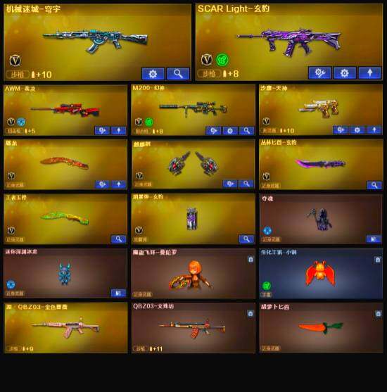 【英雄级武器】:AWM-裁决,M200-幻神,AWM-昌龙,M4A1-赤狱骑士,沙鹰-天神,麒麟刺,屠龙