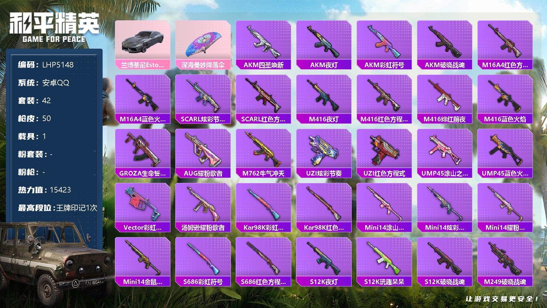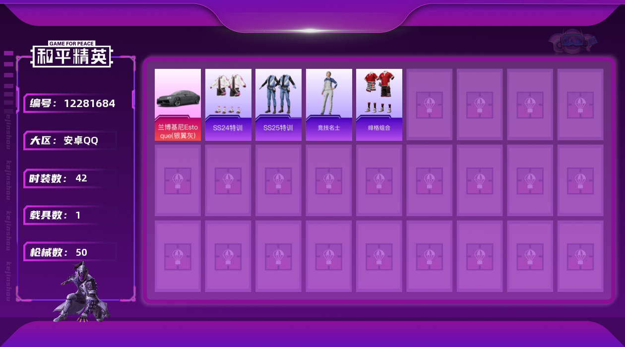 [12281684]【特价急出/详情看图】:安卓 手Q-1载具-1.5w热力值-1王牌印记-42套装-50枪皮【粉色载具】:兰博基尼Estoque(银翼灰)