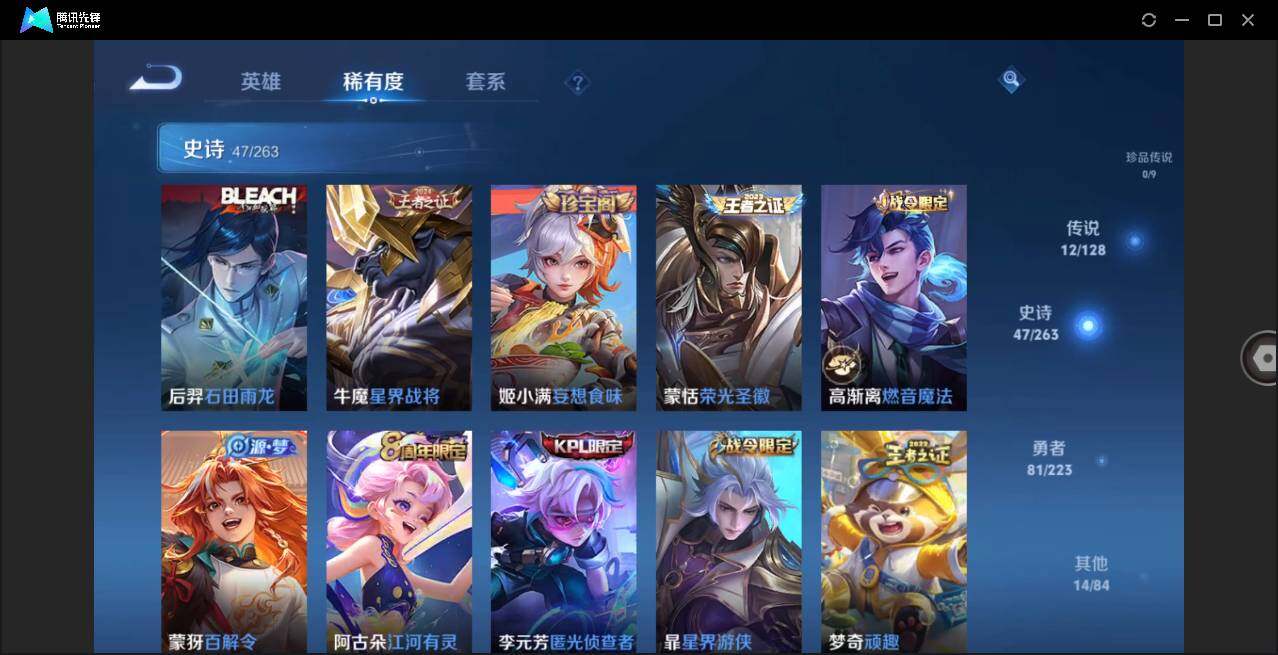 - PX_2084965-贵族等级: V4 英雄数: 86 皮肤数: 51 传说皮: 挚爱之约