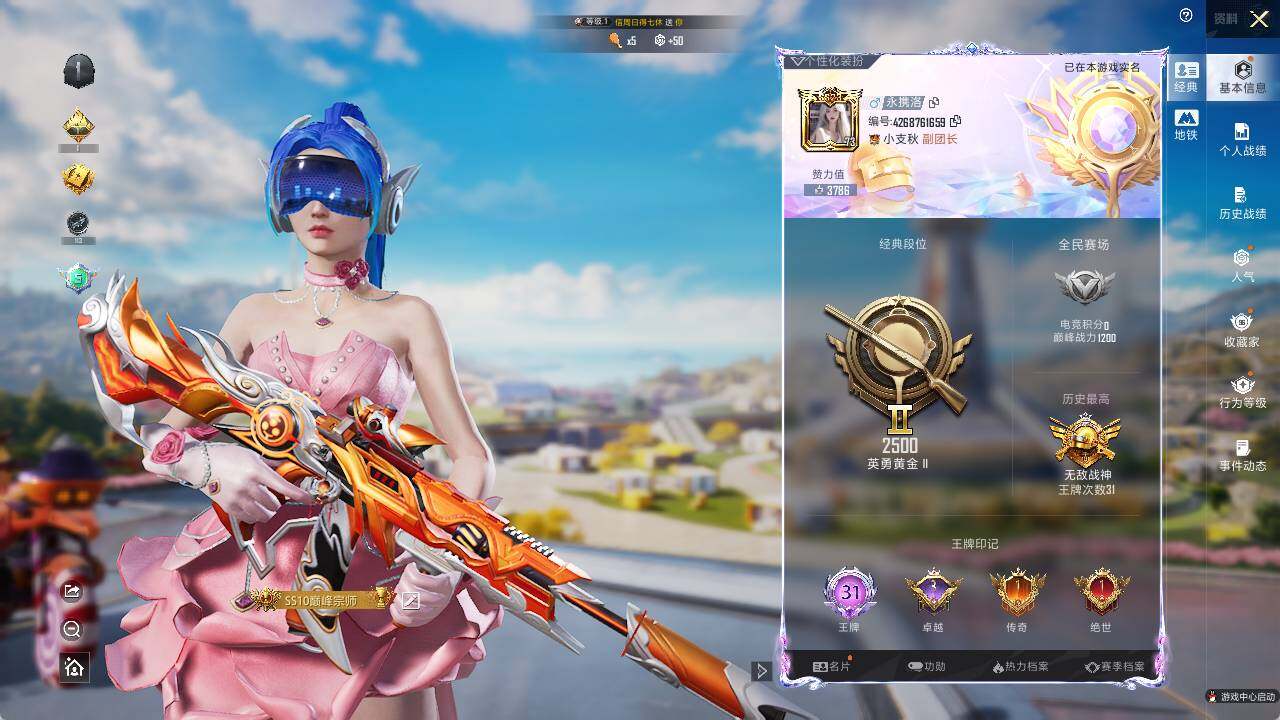- PX_2100361-5【可二次】【因赛季更新游戏段付以上号为准!】安卓Q-7w热力值 2王牌印记 历史超级王牌8星 165套装 246枪皮 【6粉装】 星穹咏叹调 冰霜白皇 炙焰红王 王牌四分卫 山涧鹿灵 彩虹鹿灵 【6特效枪】 SCAR-L-锦绣绵绵 (5级) M416-电玩时刻 (5级) AKM-绿萝繁花 (5级) Kar98K-巳巳如意 (5级) 莫辛纳甘-未来领航者 (6级) M249-