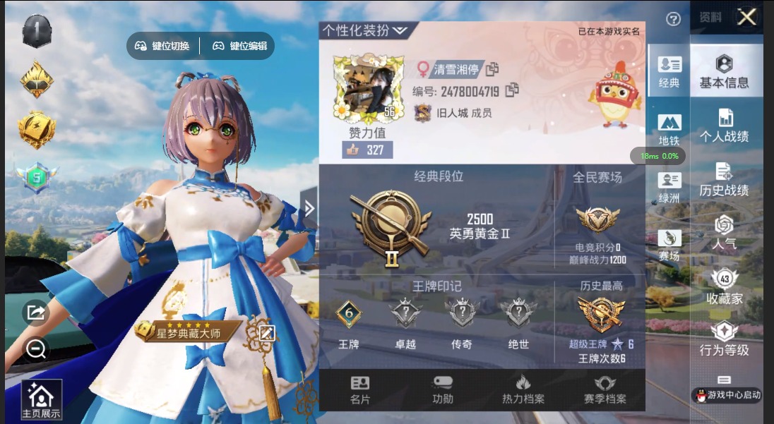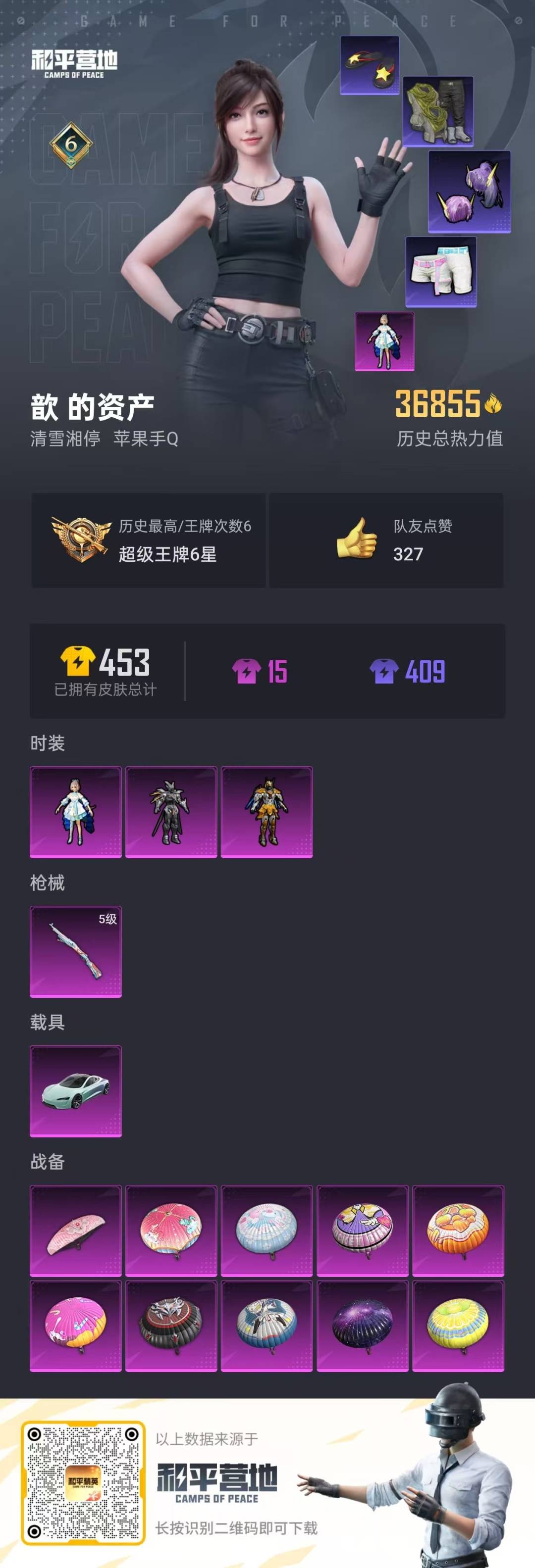 - [10320190]实名: 不可修改 时装数: 574 枪械数: 192 战备数: 149 热门装扮: 烟云彩露,金丰海韵 稀有枪皮: SCAR-L-锦绣绵绵,M416电玩时刻,Kar98K创世·救赎,UMP45量子极限,Kar98K-巳巳如意