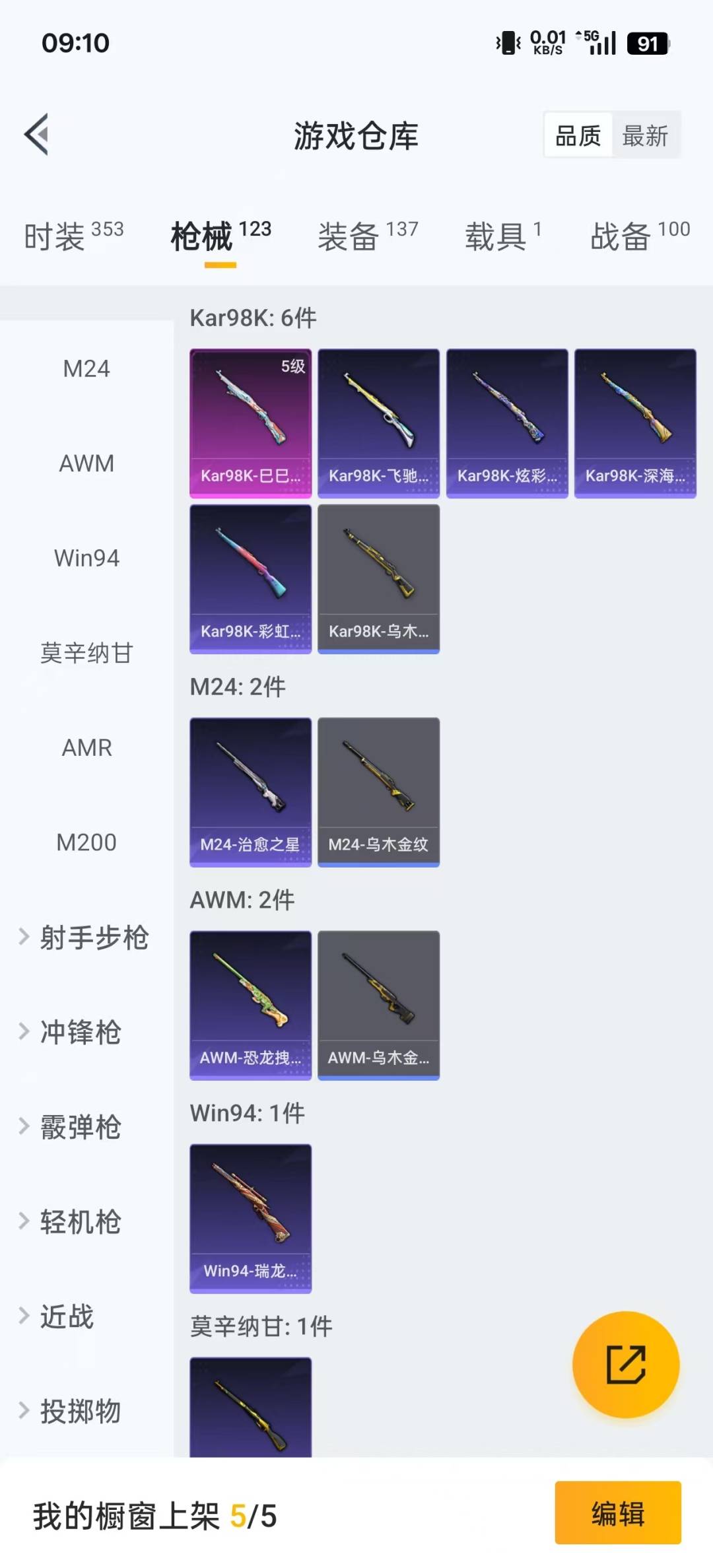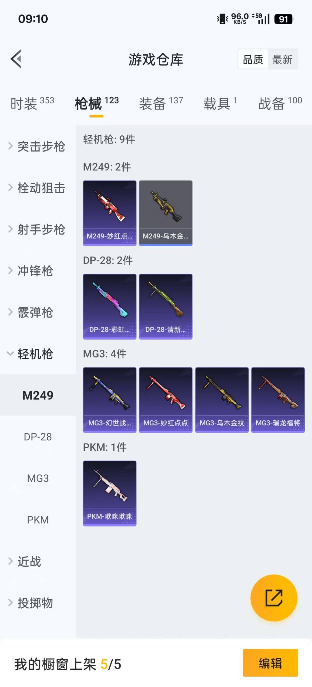 - [11529428]1粉装 5特效枪 1印记 可二次 可修改实名 优质装备:M416五爪金龙,AKM绿萝繁花,SCAR-L-锦绣绵绵,七级M416-五爪金龙,MK14-甜梦熊击,Kar98K-巳巳如意 热门装扮:创世·救赎,鹰眼刺客 五级特效枪:五级MK14-甜梦熊击,五级SCAR-L-锦绣绵绵,五级AKM-绿萝繁花 一级特效枪:一级Kar98K-巳巳如意 紫色装扮:田园牧歌,轻风白浪,SS22特训,SS31特训套装,极速光影,SS33特训套装,乐音,星梦畅游,竞技角斗士,长空猛禽,缤纷果语,耀眼新星,荣耀,蓝色运动,龙腾端午,魅力单车,龙的传人,龙魂突击队,坚韧舞者,白色伏地魔,特战英豪,特殊使命,特训学院,SS29特训,SS28特训,竞技名士,银尘,惊鸿侠骨,神气柴柴,懵萌河马,SS24特训(SS24特训套装),SS25特训,元气发射,锦衣飞扬,SS27特训,明鸳圣池,SS26特训,云丝凤蟒,大橘大利,耀粉歌者,青玉碎影,漫步者,冰原奔狼,冰冻风暴,光之冒险 优质战备:忍者神龟降落伞,江南烟雨降落伞,喜羊羊与灰太狼降落伞,未来歌姬降落伞