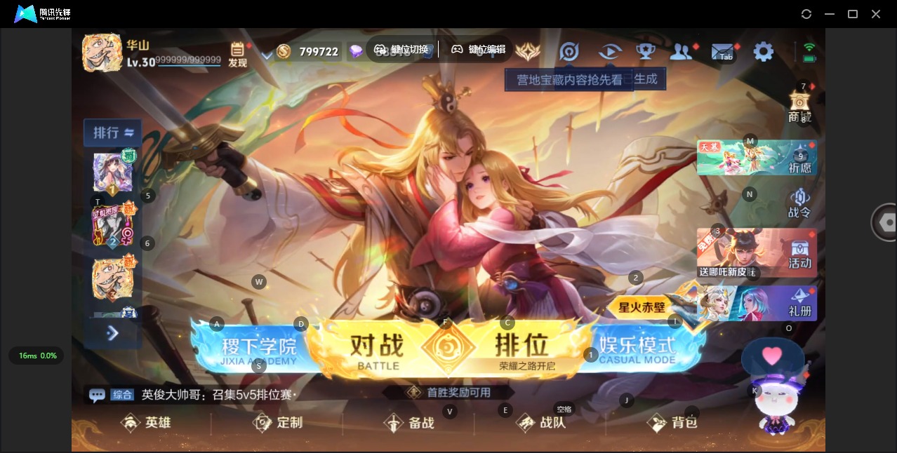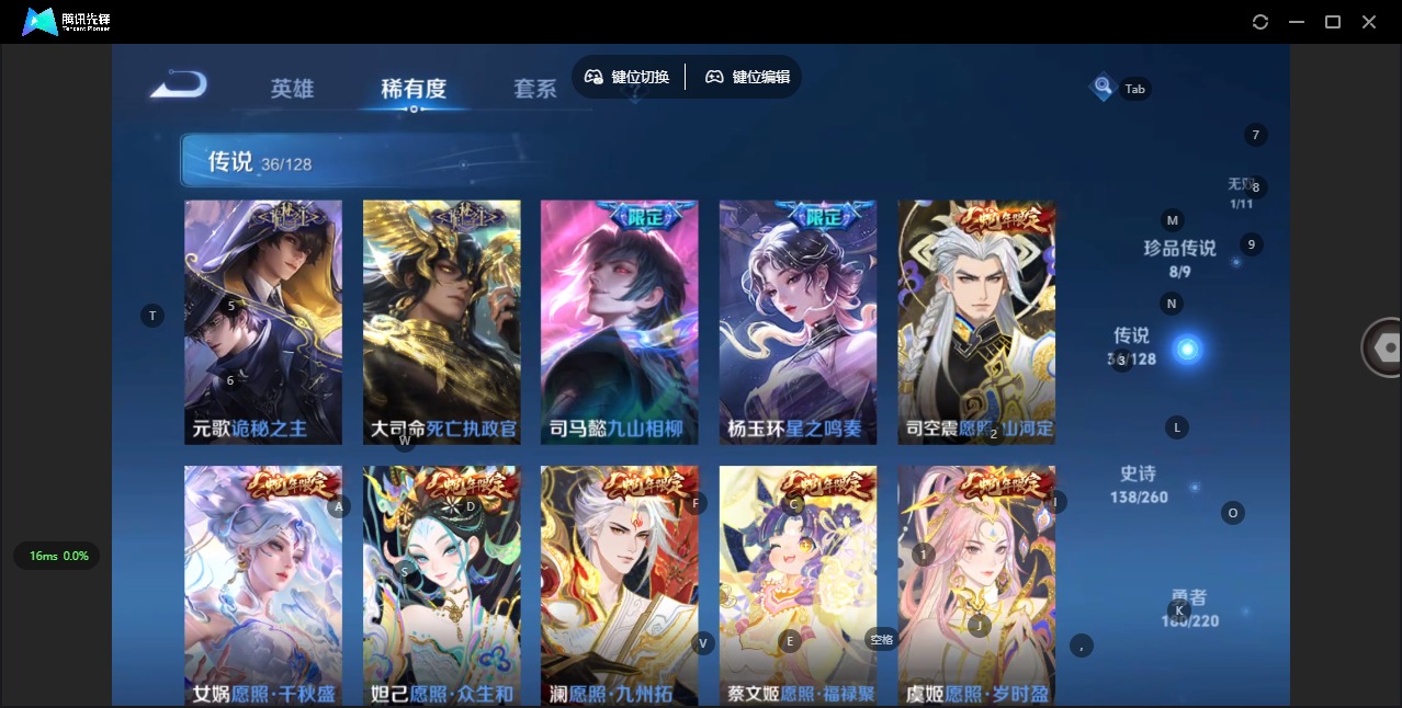 - [11874860]V7 1典藏 6传说 124英雄 210皮肤 可修改实名 优质装备:鸣剑·曳影,地狱之眼,时之恋人-刘备(电焊工),画中仙 传说皮:云诺千山,幻光神枪 珍宝阁皮:万物之道,蔷薇恋人 限定皮:愿照·千秋盛(女娲年限),遇见飞天,高山流水,五谷丰年,冰锋战神,孙行者,猪悟能,女儿国国王 史诗皮:器灵·浮梦炉,化蝶舞,龙之律动,藏狐·褐绒,戍鼓铭心,茶境仙,破空之剑,战舞者,谪仙醉月,百相守梦-百里守约,百相守梦-黄忠,紫霞仙子,苍穹之光,黄金分割率,电玩·爆裂旋风,江河有灵,蒙恬荣光圣徽,偶像歌手,魅语,冰冠公主,猫狗日记-孙策,猫狗日记-大乔,乱世虎臣,女仆咖啡,摇滚巨星,水果甜心,天才门将,星夜王子,时之奇旅-安琪拉,功夫厨神,德古拉伯爵,暗隐猎兽者,幽灵船长,鬼剑武藏,心灵战警,乐园奇幻夜,天秀·启明,地狱岩魂,拒霜思,缤纷独角兽,乘风破浪,水晶猎龙者,曙光守护者,金属风暴,原初追逐者,圣诞狂欢,圣诞恋歌,鹰眼统帅,暗夜贵公子,天秀·音浪,未来纪元-赵云