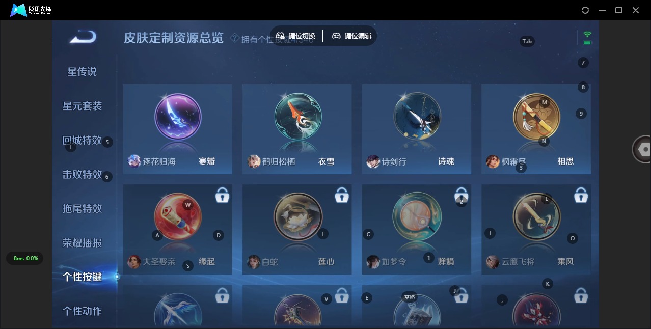 赵云龙胆,孙尚香异界灵契,后羿如梦令,裴擒虎李小龙,裴擒虎天狼狩猎者,裴擒虎寅虎·赤拳,上官婉儿梁祝,李白诗剑行,花木兰默契交锋,马可波罗山海·玄木吟,马可波罗深海之息,孙悟空至尊宝,孙悟空美猴王,马超神威,赵云引擎之心,韩信傲雪梅枪,韩信飞衡,橘右京枫霜尽