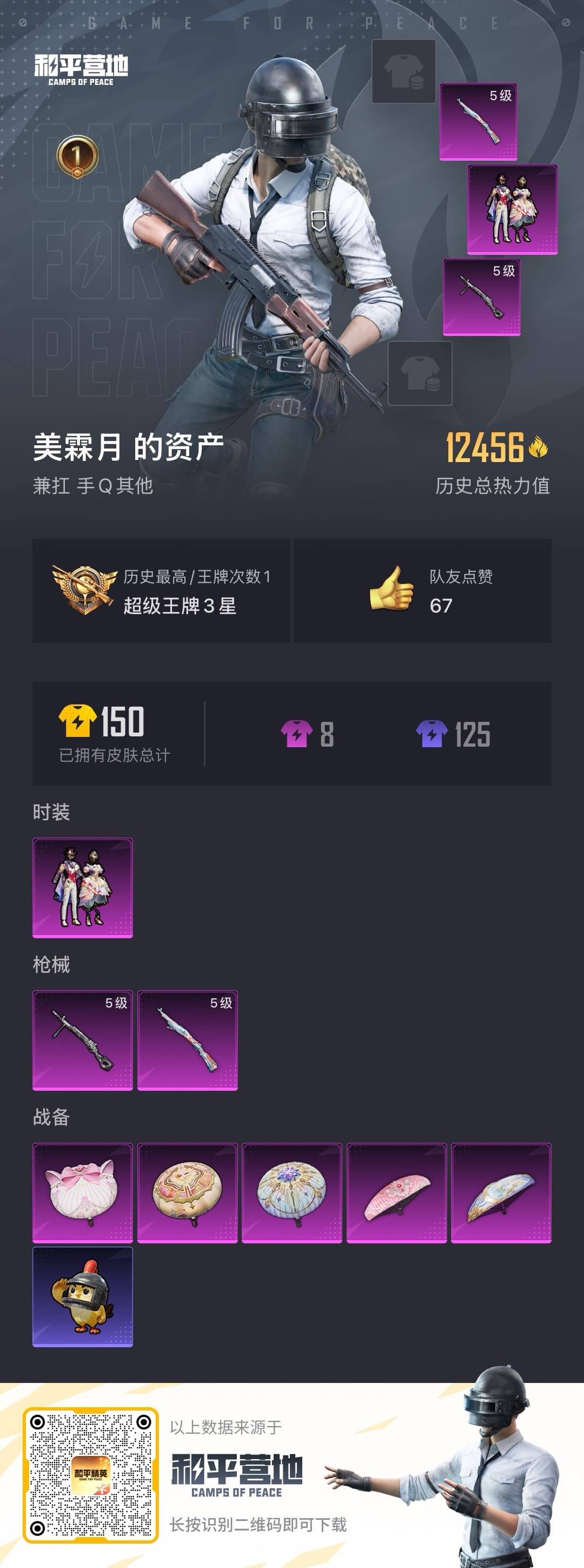 - PX_2096422- 安卓手Q-10王牌印记-5粉装-4特效枪-2载具-61238热力值-154套装-193枪皮-4卓越印记-2传奇印记 【5粉装】,缤纷油彩,王牌四分卫,天衡星秤,圣堂之誓,粉色回忆 【4特效枪】AKM-梦之光华-6级 Kar98K-巳巳如意-4级 M417-第五大道-6级 MG3-梦幻舞会-7级 【4稀有紫装】,奇异狩猎者,深海小丑鱼,雪山精英,龟仙人, 【2稀有载具】,阿