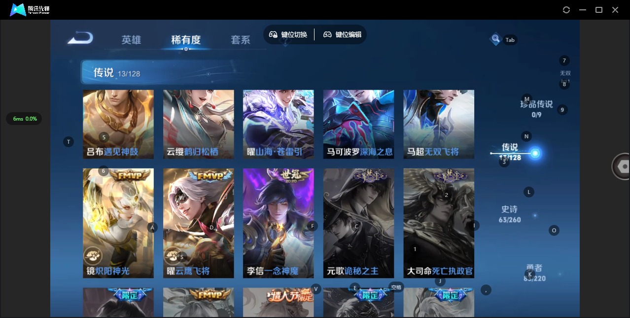 - [12116590]V8 1典藏 23传说 124英雄 330皮肤 可修改实名 优质装备:全息碎影(猴子典藏),黄金狮子座,云鹰飞将(小将军),久胜战神,炽阳神光,一念神魔,末日机甲-孙尚香(绿蚂蚱),地狱火,仲夏夜之梦(大飞蛾),胖达荣荣,末日机甲-孙策,挚爱之约,无双飞将,涂山容容 传说皮:幻光神枪 珍宝阁皮:妄想食味,优雅恋人 限定皮:愿照·九州拓(澜年限),鸣野蒿,至尊宝,白虎志(电光耗子),凤求凰(白切鸡),梅西,武陵仙君(小桃花),傲雪梅枪,补天,魔法小厨娘,神威(电光马子),飞衡(韩信年限),瑞麟志(木兰年限),高山流水,匿光决锋者,青龙志(铠年限),冰锋战神,武圣,梁祝,天狼狩猎者,逐梦之星,李小龙,玄武志(苏烈年限),朱雀志(守约年限),永曜之星,辉光之辰,圣诞老人,孙行者,猪悟能,一生所爱,大圣娶亲,神奇女侠,美猴王,匿光追影者,女儿国国王,玉兔公主,启示之音,唐三藏 史诗皮:化蝶舞,灵蛊蚀心,星界战将,龙之律动,石田雨龙,茶境仙,蔬乡物语(鲁班七号),紫霞仙子,苍穹之光,电玩小子(小书包),白龙吟,黄金分割率,特工魅影,千年之狐,永昼,江河有灵,魅语,蒙恬荣光圣徽,无限星赏官,冰冠公主,偶像歌手,晚萤,暗夜猫娘,末日机甲-吕布,猫狗日记-孙策,乱世虎臣,修罗,女仆咖啡,水果甜心,天才门将,星夜王子,心灵骇客,时之奇旅-安琪拉,德古拉伯爵,暗隐猎兽者,幽灵船长,鬼剑武藏,心灵战警,地狱岩魂,纤云弄巧,繁星吟游(呼啦呼啦),拒霜思,缤纷独角兽,乘风破浪,逐浪之夏,水晶猎龙者,曙光守护者,金属风暴,原初追逐者,圣诞狂欢,圣诞恋歌,鹰眼统帅,黎明之约,赏金猎手,无心,未来纪元-赵云