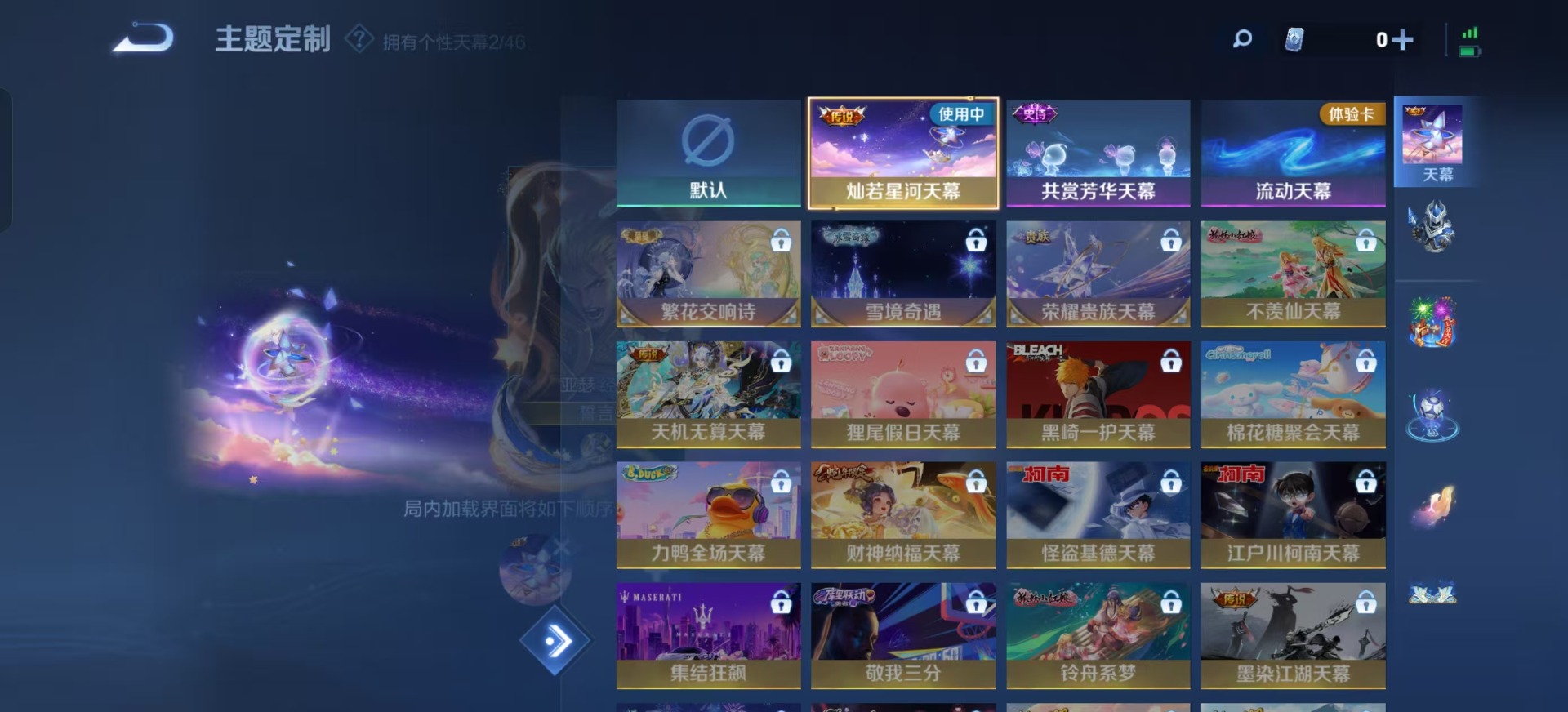刘邦德古拉伯爵,夏侯惇乘风破浪,阿轲节奏热浪,曹操幽灵船长,廉颇地狱岩魂,孙策猫狗日记,不知火舞魅语,吕布末日机甲,露娜紫霞仙子,刘禅电玩·爆裂旋风,司马懿暗渊魔法,刘禅天才门将,刘禅绅士熊喵,宫本武藏鬼剑武藏,兰陵王暗隐猎兽者,貂蝉圣诞恋歌,花木兰水晶猎龙者,李白千年之狐,安琪拉心灵骇客,白起星夜王子,亚瑟心灵战警,嬴政摇滚巨星,嬴政暗夜贵公子,程咬金功夫厨神,百里玄策原初追逐者,雅典娜黎明之约,李元芳逐浪之夏,百里守约特工魅影,墨子金属风暴,蔡文姬舞动绿茵,王昭君偶像歌手,嫦娥拒霜思,橘右京修罗