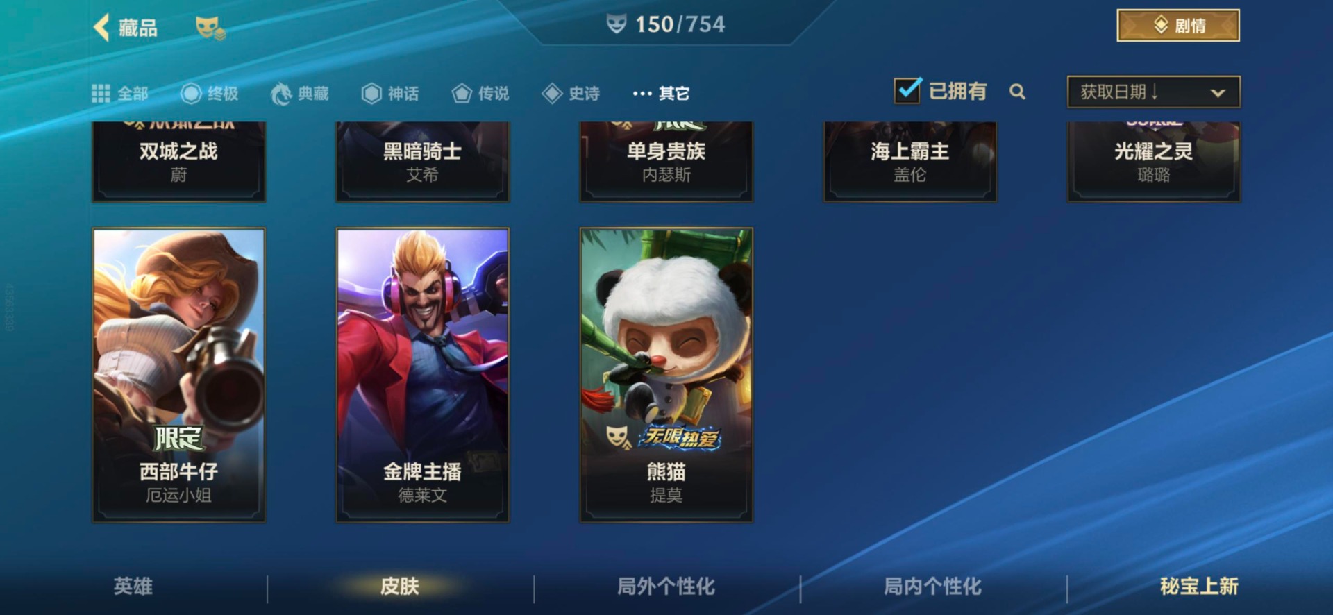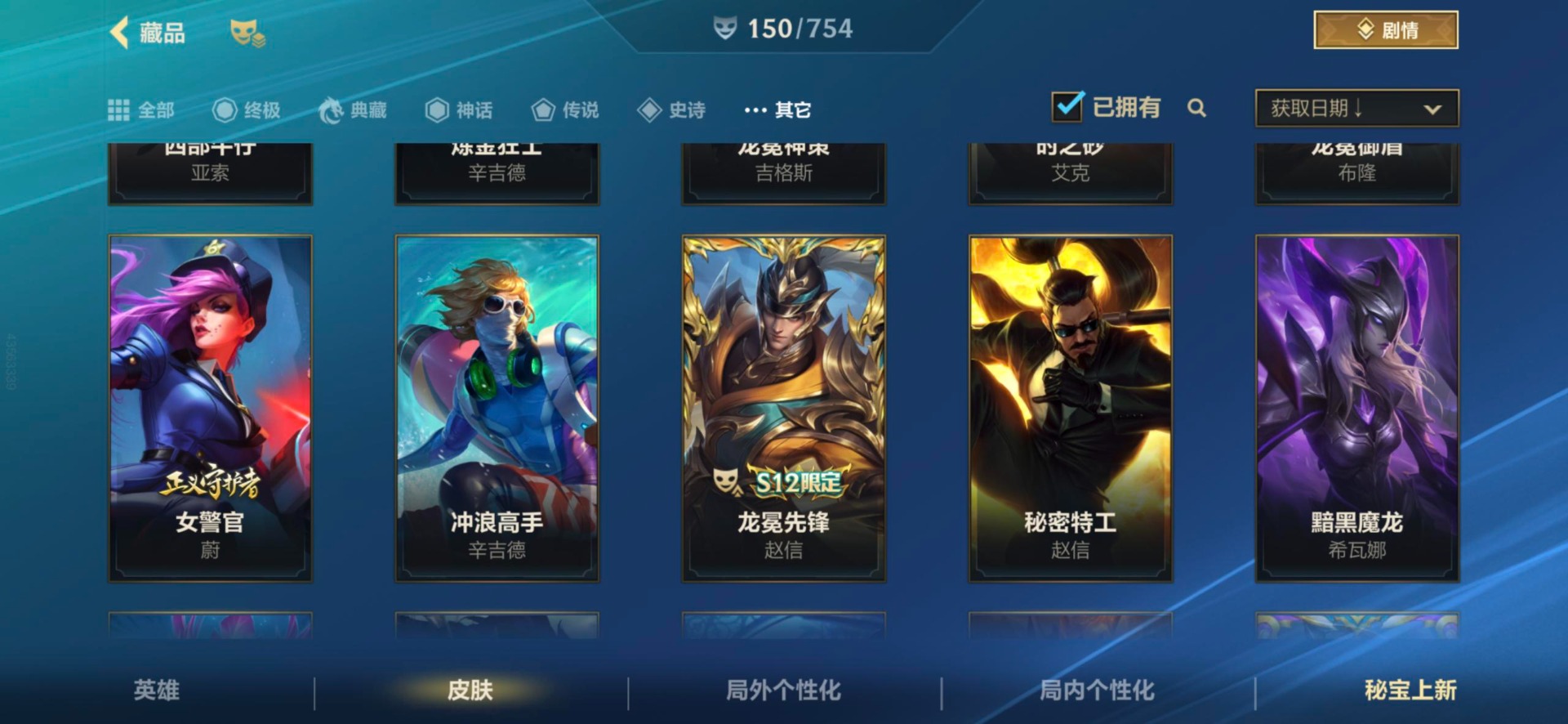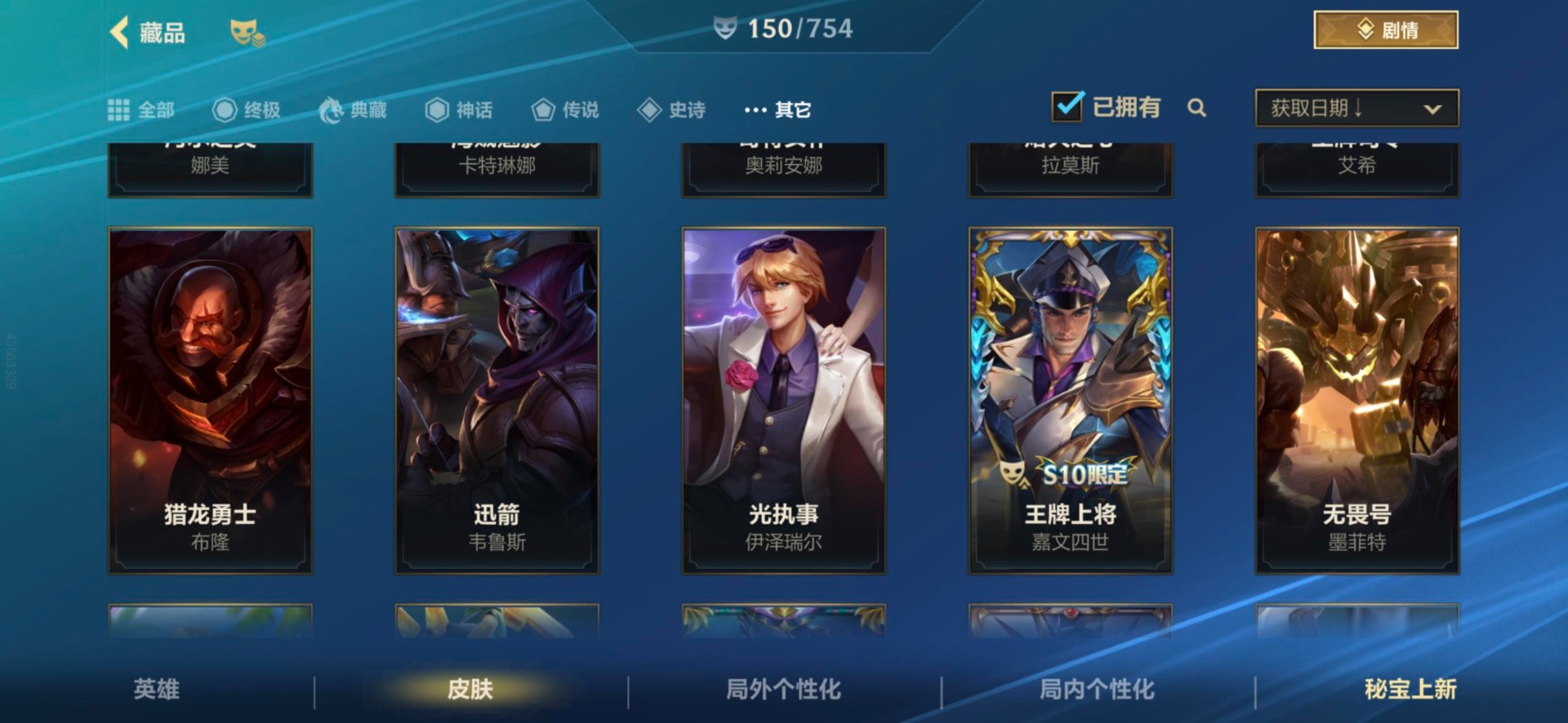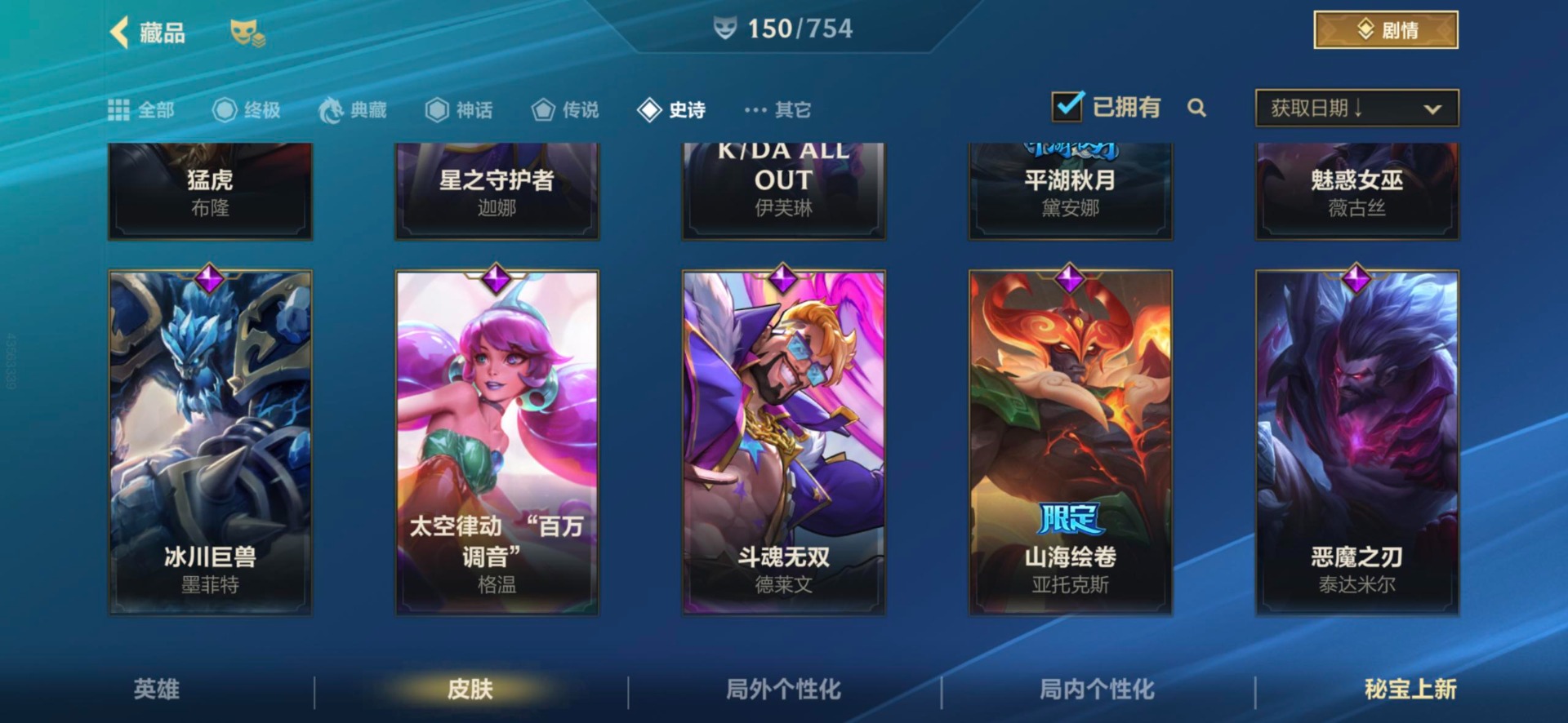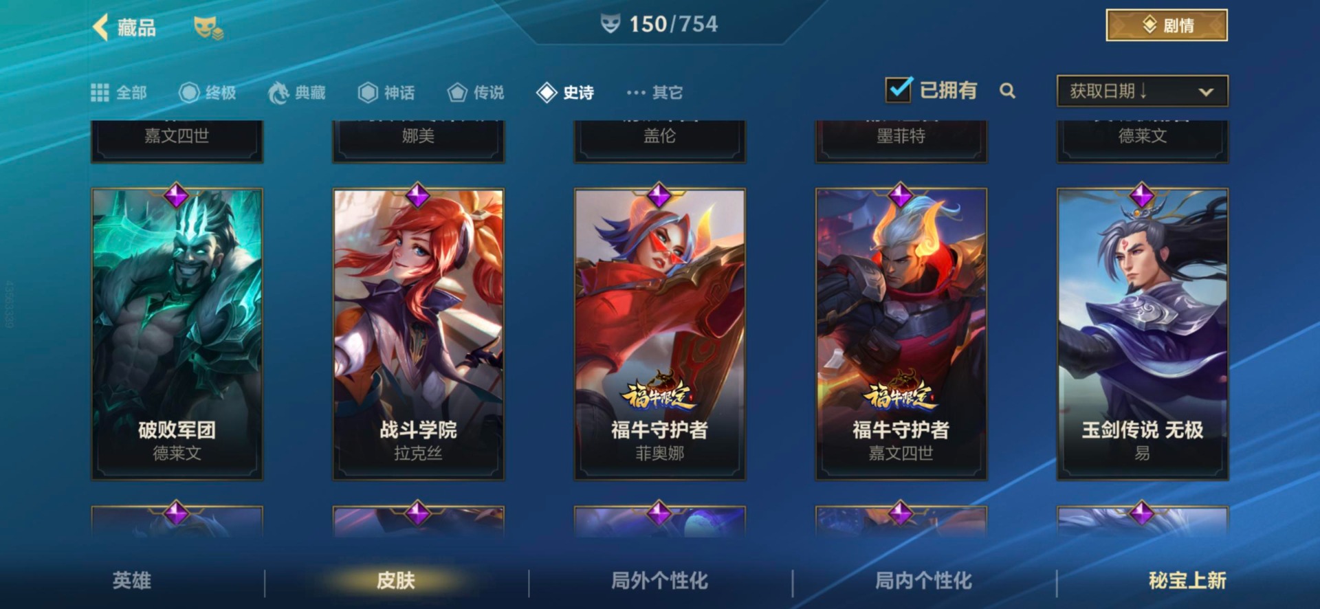 - [11516258]V5 4传说 123英雄 187皮肤 可修改实名 传说皮:地狱之眼,末日机甲-孙尚香(绿蚂蚱) 珍宝阁皮:胡桃夹子,女武神,玩趣恶龙 限定皮:愿照·岁时盈(虞姬年限),鸣野蒿,五谷丰年,梁祝,李小龙,猪悟能 史诗皮:星界战将,化蝶舞,紫霞仙子,黄金分割率,特工魅影,无限星赏官,末日机甲-吕布,摇滚巨星,水果甜心,天才门将,功夫厨神,暗隐猎兽者,幽灵船长,鬼剑武藏,心灵战警,乘风破浪,逐浪之夏,水晶猎龙者,曙光守护者,箭羽风息,金属风暴,原初追逐者,圣诞恋歌,鹰眼统帅,王者之锤,未来纪元-赵云