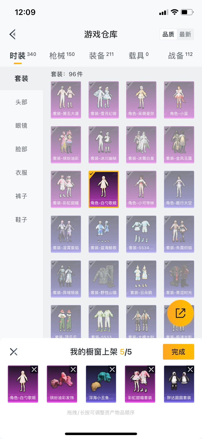 套装-深海小丑鱼,套装-胖达圆圆,套装-金风玉露,套装-潮萌小黄鸭,套装-缤纷油彩,套装-彩虹甜喵,角色-小可学妹,角色-呆萌星弥,角色-白勺歌姬,角色-小蓝,套装-雪月幻音,套装-第五大道,套装-冰川幽秘