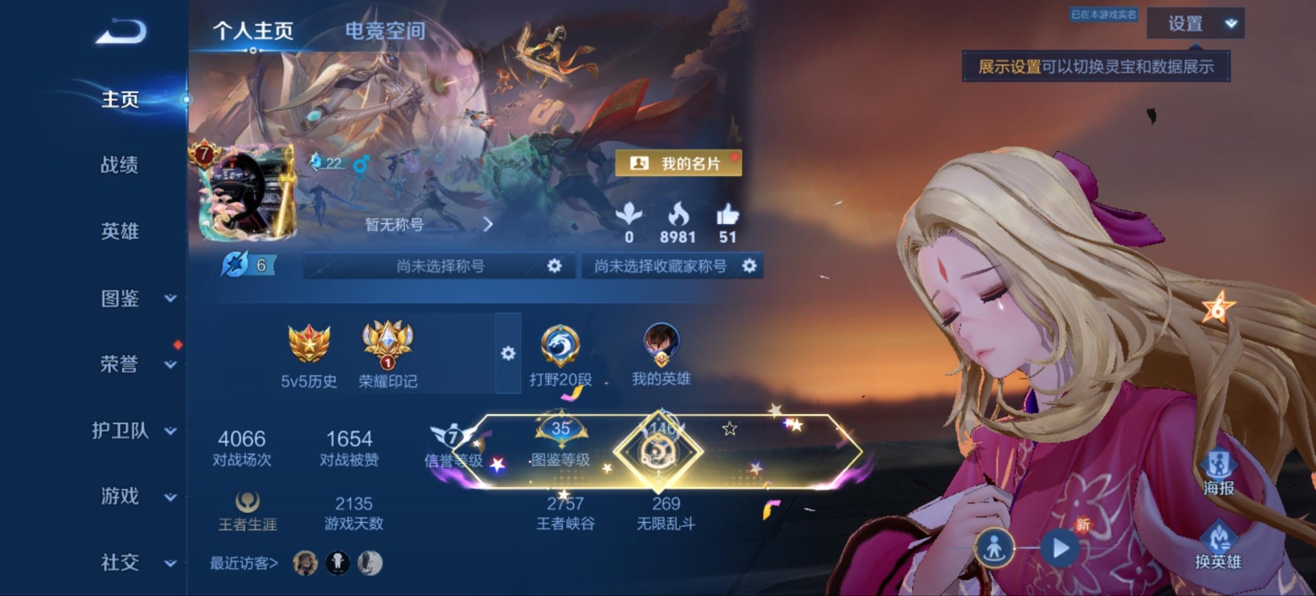 - PX_2093793-实名: 可修改 贵族等级: V7 英雄数: 104 皮肤数: 101 荣耀水晶: 最初的交响 无双皮: 雪境奇遇-甄姬 珍品传说: 江户川柯南,怪盗基德 传说皮: 绛天战甲,幻光神枪 限定皮: 引擎之心,鸣野蒿,愿照·山河定