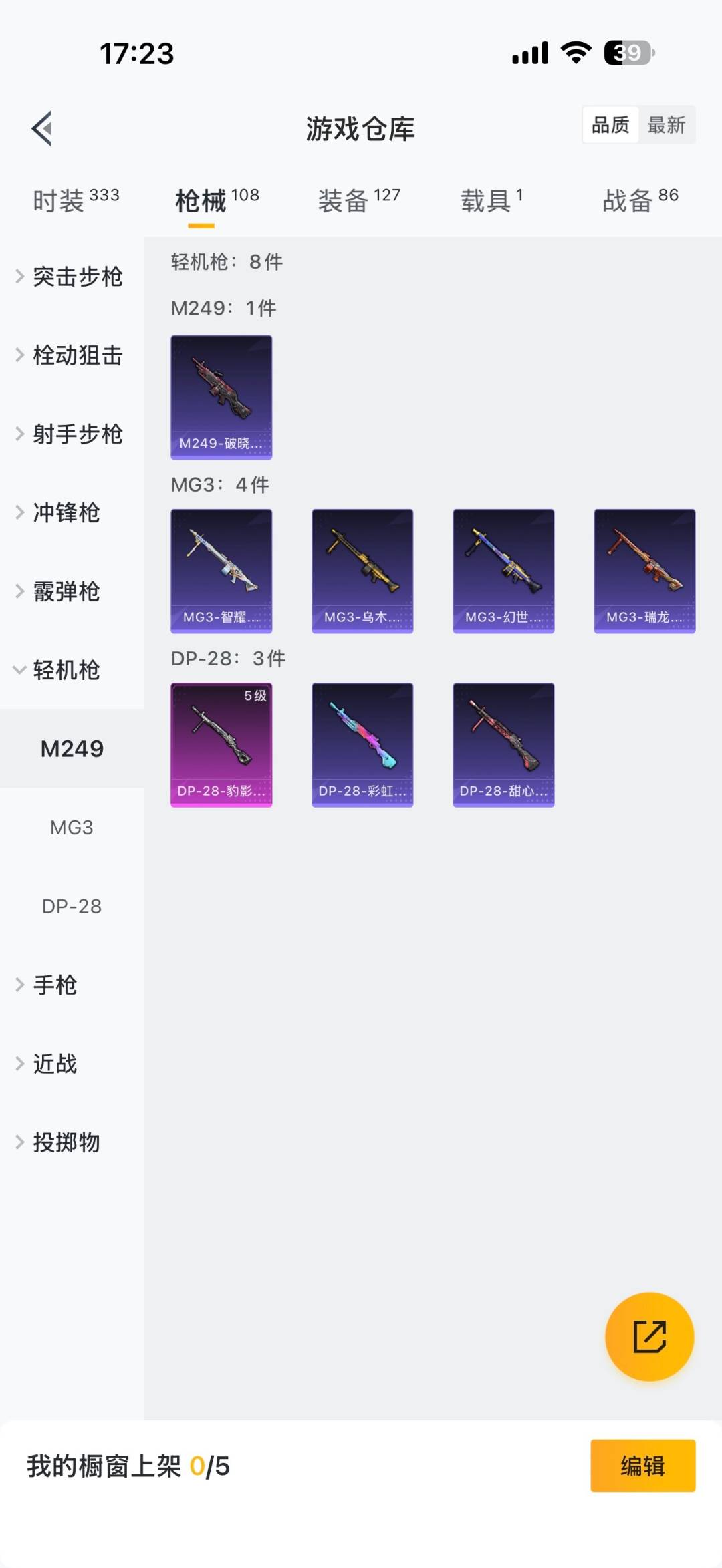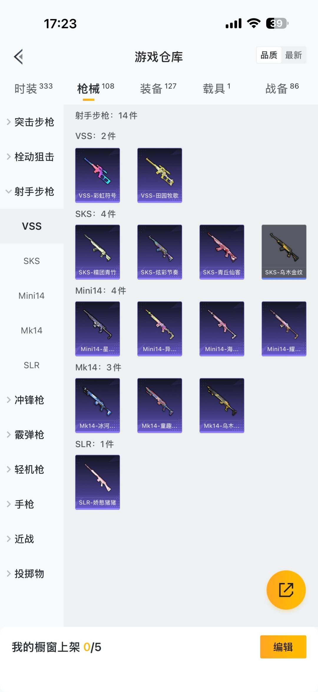 - [12250321]【商品标题】:山西一区-39V-5王者-1炫金 【热门武器】:QBZ03-金色蔷薇,M14EBR-玄武,HK417-朱雀,M200-竞技荣光,白虎-电玩蓝兔,M4A1-黑骑士,汤姆逊-烈龙,RPK-盘龙,USP-雷暴,沙鹰-修罗 【王者炫金武器】:炫金火麒麟,王者玄武,王者冰锋 【音效卡】:屠龙-动感闪耀 音效卡,烈火-动感闪耀 音效卡 【稀有皮肤】:星神-璀璨皮肤,雷神-耀金皮肤,雷神-冠军之魄,火麒麟-大唐荣光,火麒麟-心动糖果,黑骑士-暗月,毁灭-星空 【角色】:王者葵-惊若翩鸿,幽,电竞教官-云悠悠,荒漠琉璃,战地猎狐,暗黑审判,青霞仙子 【人偶武器】:星神-炽天使,AWM-灵狐-15周年嘉年华,迷你超能女侍,迷你巨石泰坦-魔花研究所,迷你裂空之翼,迷你波特博士,夺魂,生化手雷-机甲核心,深渊终结者手雷 【暴走生化】:超级对讲机 【挑战大师】:神圣爆裂者-末日III,阐释者III,试炼破坏者III,激光毁灭者III,冰龙粉碎者-白马银枪*2 【英雄级武器】:M200-竞技荣光,柯尔特-竞技荣光,擎天-竞技荣光,高爆手雷-竞技荣光*2,烟雾弹-竞技荣光,闪光弹-竞技荣光,USP-雷暴,烈火-动感闪耀,天神-动感闪耀,屠龙-动感闪耀,手雷-动感闪耀,QBZ03-金色蔷薇,M14EBR-玄武,HK417-朱雀,白虎-电玩蓝兔,无影-神兵利器,M4A1-雷神*2,M4A1-黑骑士,RPK-盘龙,汤姆逊-烈龙,AK47-火麒麟,Barrett-毁灭,AWM-裁决,AA-12-雷霆,黑武士-锦绣游龙,死神-雪域霜狐,AK-47-猩红传说,M4A1-赤狱骑士,沙鹰-修罗 【特殊枪械】:1黑骑士,1烈龙,1盘龙