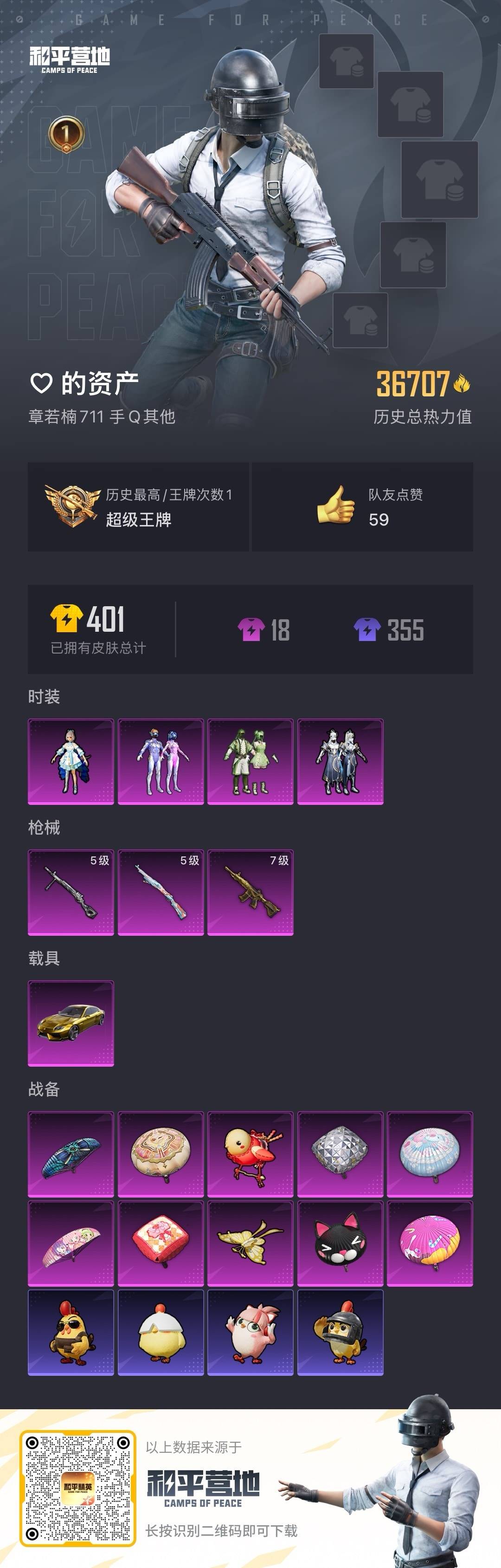 - [12339899]地铁满天赋【特价急出/详情看图】:安卓 手Q-3粉装-7特效枪-1载具-1粉色飞行器-4.9w热力值-13王牌印记-119套装-168枪皮【热门品类】:粉装-梦幻火箭,套装-浪漫天命,套装-龟仙人【粉色载具】:兰博基尼Estoque(银翼灰)【粉色套装】:粉装-梦幻火箭,粉装-花影阑珊,粉装-星穹咏叹调【粉色枪皮等级】:SCAR-L-梦幻火箭(七级),GROZA-镜光银凌(五级),AUG-暖羊咩咩(五级),Vector-绯穹魔姬(五级),Kar98K-巳巳如意(五级),Mk14-甜梦熊击(五级),DP-28-豹影疾电(五级)【粉色飞行器】:梦幻火箭飞行器