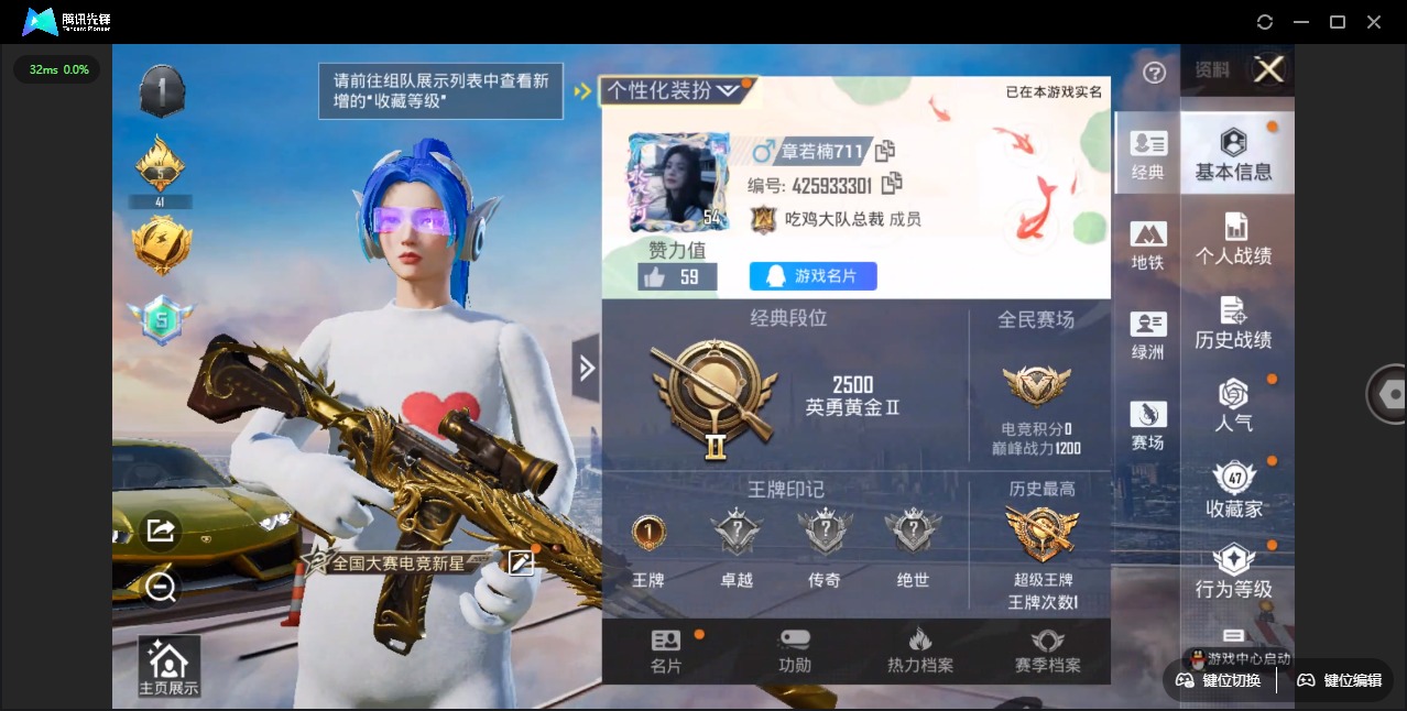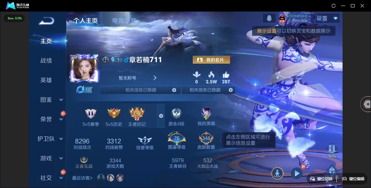 - PX_2095013-实名: 不可修改 贵族等级: V4 英雄数: 31 皮肤数: 18 限定皮: 无限倾心-虞姬