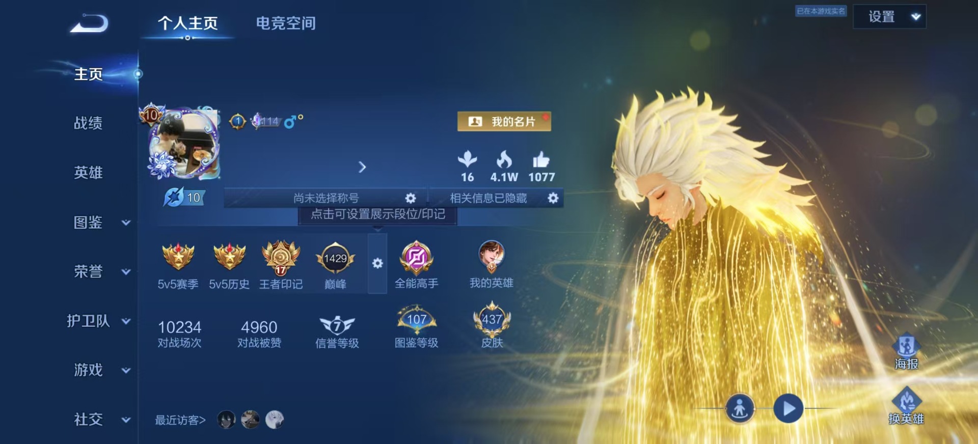 [12287037]V10 4典藏 1无双 48传说 125英雄 437皮肤 可修改实名 优质装备:鸣剑·曳影,全息碎影(猴子典藏),弑枪猎影(韩信典藏),碎月剑心(李白无双),拾光映像(瑶典藏),黄金狮子座,黄金射手座,冠军飞将,云鹰飞将(小将军),绛天战甲(鸡嘴战神),久胜战神,炽阳神光,一念神魔,末日机甲-孙尚香(绿蚂蚱),仲夏夜之梦(大飞蛾),地狱之眼,音你心动-周瑜,李逍遥,时之恋人-刘备(电焊工),淬星耀世,超时空战士-狄仁杰,遇见胡旋,挚爱之约,无双飞将,碎云,神器·狴犴令,山海·炽霜斩(李信年限),山海·苍雷引(电光曜子),炽翼辉光(娃娃菜牛角包),燃星之曲,浮生妄,艾琳觅芳踪,涂山容容 传说皮:乘龙·铭钟鼎(赵云年限),乘龙·淬吴钩(孙策年限),落雪白狼,续相思 珍宝阁皮:妄想食味,女武神,玩趣恶龙 限定皮:愿照·千秋盛(女娲年限),鸣野蒿,凤求凰(白切鸡),凤凰于飞,太华(伽罗年限),武陵仙君(小桃花),异界灵契(白毛香),傲雪梅枪,补天,星穹之声,神威(电光马子),飞衡(韩信年限),瑞麟志(木兰年限),至美·乘鲤谣,遇见飞天,高山流水,诗剑行,齐天大圣,匿光决锋者,怒海麟威,降魔,五谷丰年,青龙志(铠年限),梁祝,御风骁将(吕布年限),烈魂,天狼绘梦者,逐梦之影,朱雀志(守约年限),孙行者,蜜橘之夏,匿光追影者,寅虎·御盾(廉颇年限),寅虎·瑞焰(虎皮蛋子),寅虎·赤拳(老虎年限),百木心枪,玉兔公主,启示之音,无尽星芒,深海之息(深海大菠萝),唐三藏,匿光启智者,神器·万象笔,山海·玄木吟(马可年限) 史诗皮:赞萌露比,鸭鸭历险记-刘禅,化蝶舞,灵蛊蚀心,星界战将,谪仙醉月,龙之律动,石田雨龙,百相守梦-周瑜,茶境仙,幻珠鲛人,怒海争锋,破空之剑,蔬乡物语(鲁班七号),百相守梦-黄忠,织梦人,遇见神鹿,紫霞仙子,苍穹之光,电玩小子(小书包),白龙吟,黄金分割率,特工魅影,千年之狐,永昼,江河有灵,鹤归松栖(赵怀真),魅语,百解令(蒙犽),高渐离燃音魔法,蒙恬荣光圣徽,冰冠公主,青蛇,偶像歌手,晚萤,电玩·爆裂旋风,暗夜猫娘,龙骑士(小龙虾),末日机甲-吕布,猫狗日记-孙策,猫狗日记-大乔,时之恋人-孙尚香,乱世虎臣,节奏热浪,修罗,女仆咖啡,摇滚巨星,水果甜心,绅士熊喵,天才门将,星夜王子,心灵骇客,时之奇旅-安琪拉,功夫厨神,德古拉伯爵,暗隐猎兽者,幽灵船