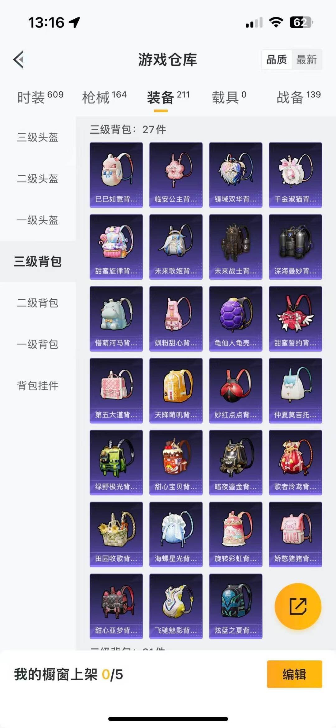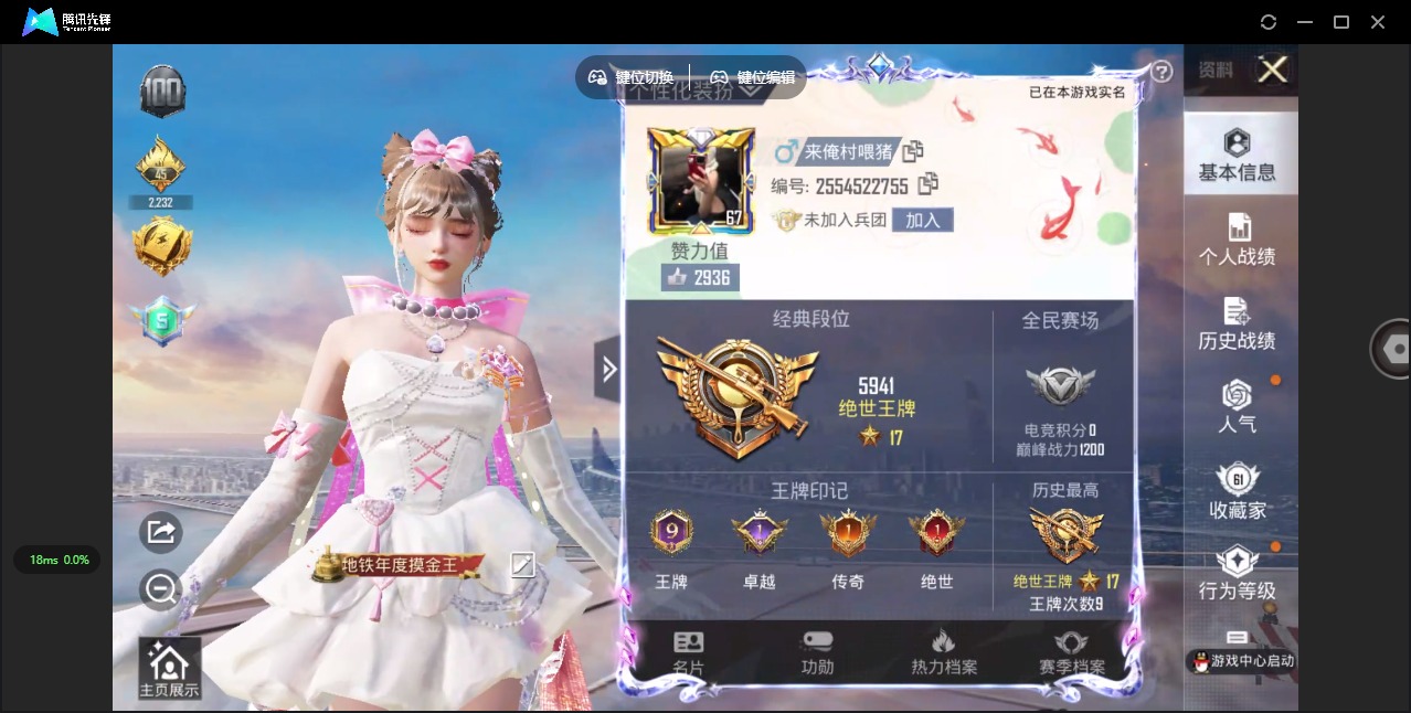 - [11824152]4粉装 7特效枪 2载具 9印记 可二次 可修改实名 女号 身法装备:Mark.06(新蓝螳螂) 优质装备:宝马X6 M(曼岛绿),AKM绿萝繁花,M416电玩时刻,时空协奏·心弦,GROZA-镜光银凌,SVD-月影灵韵,七级SVD-月影灵韵,樱桃泡泡,MK14-甜梦熊击,幻彩电音,Kar98K-巳巳如意 热门装扮:金丰海韵,迅捷狂鲨 稀有枪皮:DP-28-豹影疾电 五级特效枪:五级GROZA-镜光银凌,五级Kar98K-巳巳如意,五级DP-28-豹影疾电,五级MK14-甜梦熊击,五级M416-电玩时刻,五级AKM-绿萝繁花 紫色装扮:SS31特训套装,六六大吉,冷焰舞者,千禧之恋,霓虹热舞,SS30特训套装,云朵鹅,彩虹兔,雪绒豹,SS33特训套装,顶瓜瓜,时希公主,豚鼠丹丹,竞技角斗士,吉莉礼服,SS17特训,酒红色名流,野性山猫,长空猛禽,霓虹街区,青年教官,缤纷果语,蓝色运动,魅力单车,龙的传人,龟仙人,冰河战士,龙魂突击队,蝶变,香桃花海,格斗先锋,暗黑骑手,幻影武者,完美偶像,帅气教官,绮丽涂鸦,生化防暴队,空岛之星,竞技达人朋克,王牌教练,燃烧卡路里,特殊使命,特训学院,小熊娃娃,雏菊兔兔,萝兰蝴蝶,SS29特训,星途旅人,SS28特训,铁血战翼,Mark.06(新蓝螳螂),异域银装,鱼渊荷华,燕燕于飞,巳巳如意,森林游猎者,海琴烟,青团波波,糖糖葫芦,棉花软糖,竞技名士,街头风暴,怀庆长公主,银尘,惊鸿侠骨,SS25特训,锦衣飞扬,SS27特训,华灯初上,SS26特训,晶辉守护,大橘大利,星渊小夜曲,粉恋花,蓝冰羽,紫幽梦,SS32特训服(SS32特训套装),猎影月神,绯格组合,闪电轻猫,糖霜甜心,恋语绒绒,冰冻风暴,旷野奇兵,光之冒险,奇趣企鹅 优质战备:星梦奇缘降落伞,霓虹漫游降落伞,星途旅人降落伞,未来领航者降落伞,莲影清波降落伞,绝色倾城飞行器,蜜语绒猫降落伞,繁龙极客降落伞,幻彩电音降落伞,冷漠罗丽降落伞,飞天猪飞行器,荧海星豚降落伞,智趣喵喵降落伞,鬼刀降落伞,牡丹亭·游园飞行器,智耀战神降落伞,雪月幻音降落伞,桃粉嫣然降落伞,樱桃泡泡降落伞