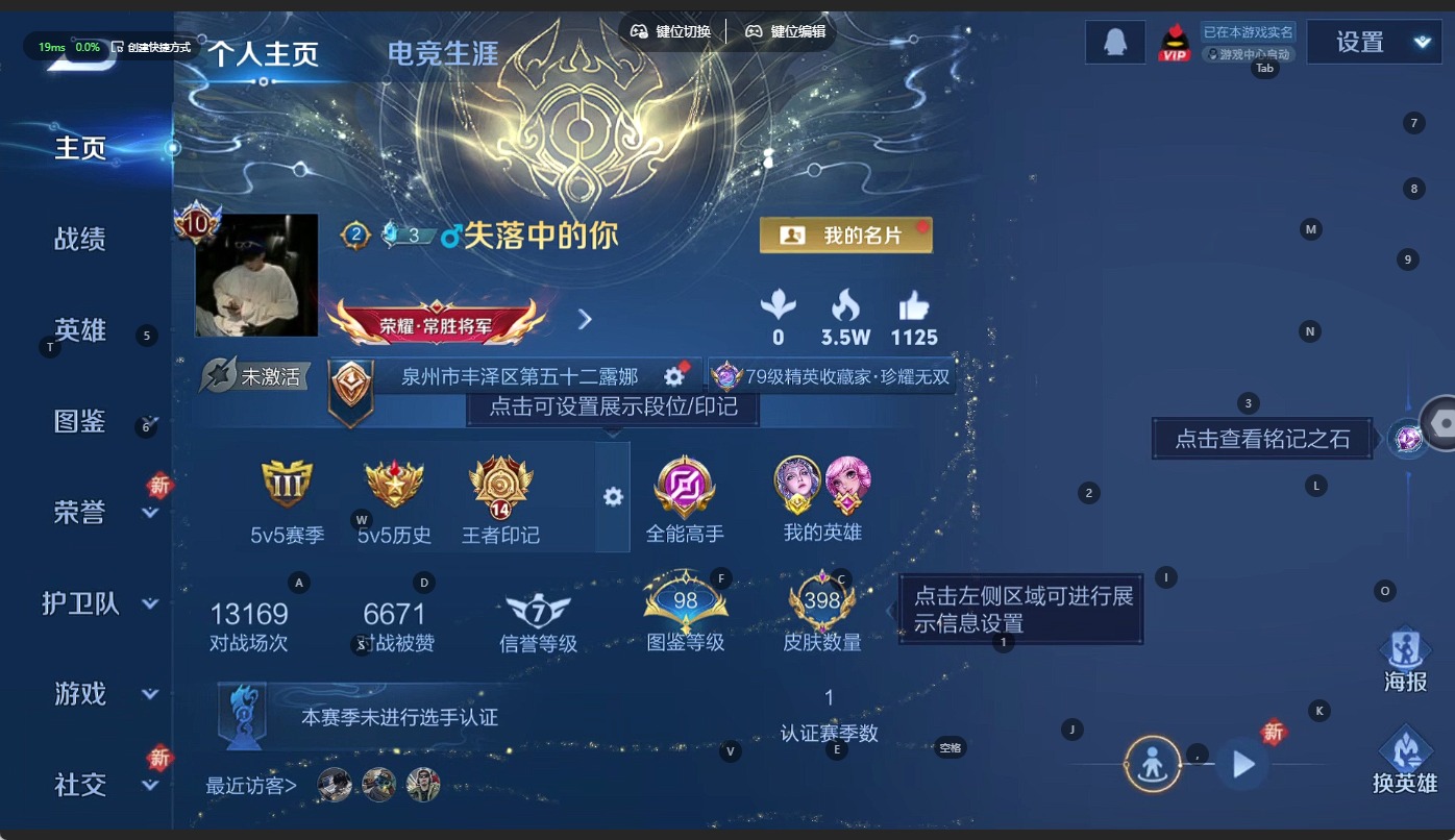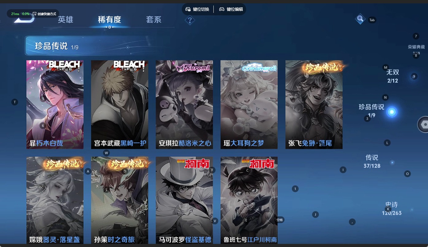 - PX_2091348-实名: 可修改 贵族等级: V10 英雄数: 124 皮肤数: 472 荣耀水晶: 鸣剑·曳影,九霄神辉 无双皮: 青丘·九尾 珍品传说: 江户川柯南,怪盗基德,兔狲·蓬尾,酷洛米之心,大耳狗之梦 星传说: 未来机甲,金色仲夏夜,星际治安官 传说皮: 黄金狮子座,黄金射手座,冠军飞将,云鹰飞将,绛天战甲,猫影幻舞,久胜战神,炽阳神光,一念神魔,末日机甲-孙尚香,地狱火,仲夏夜