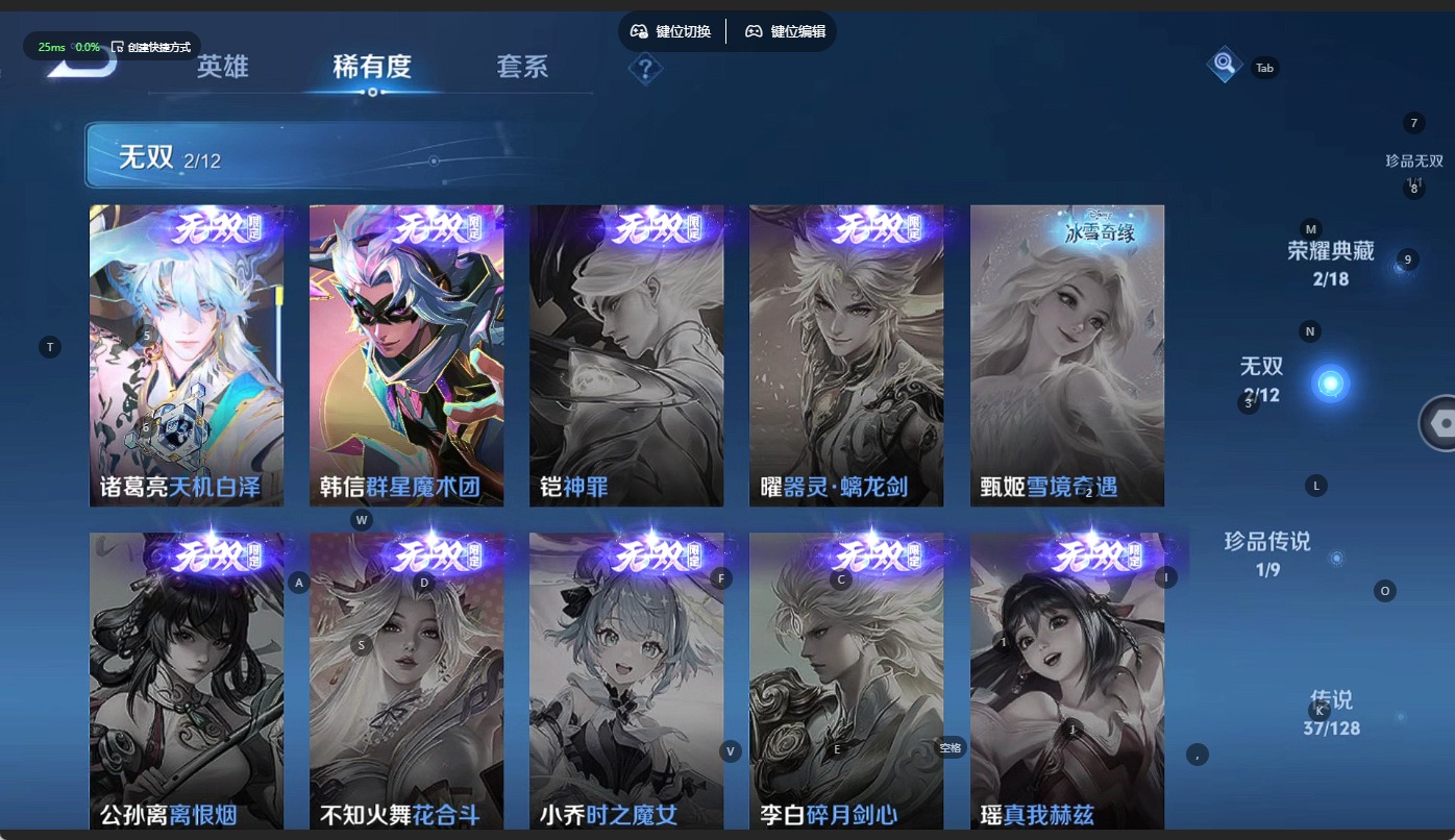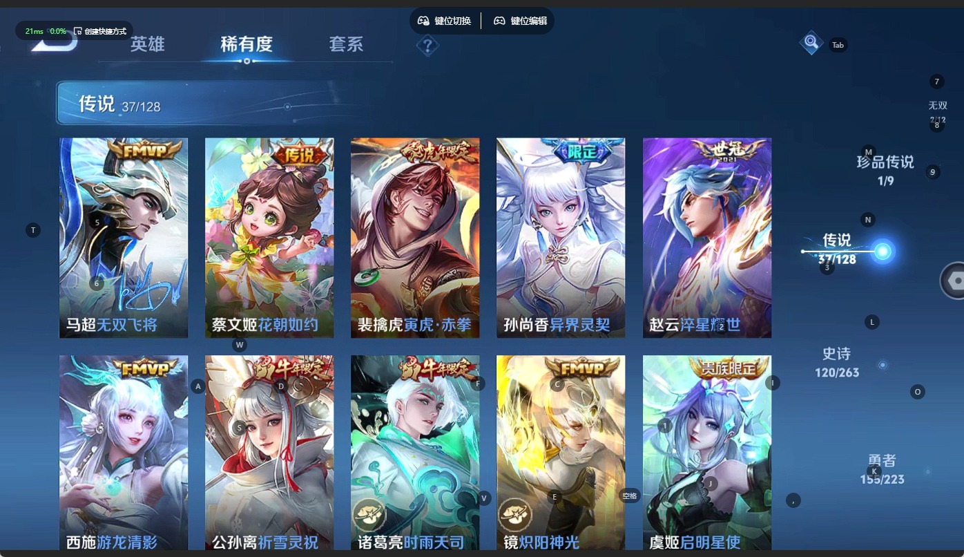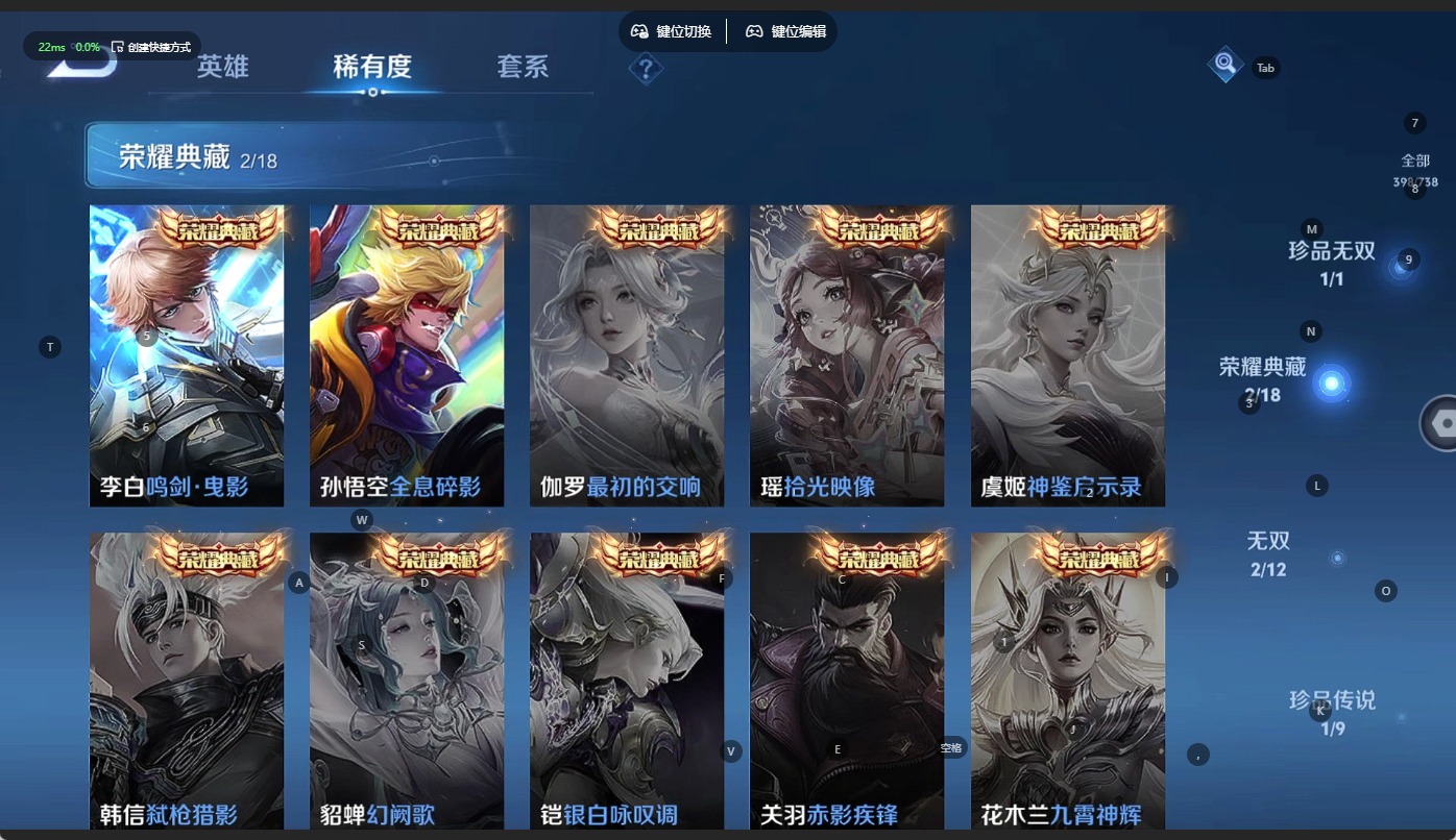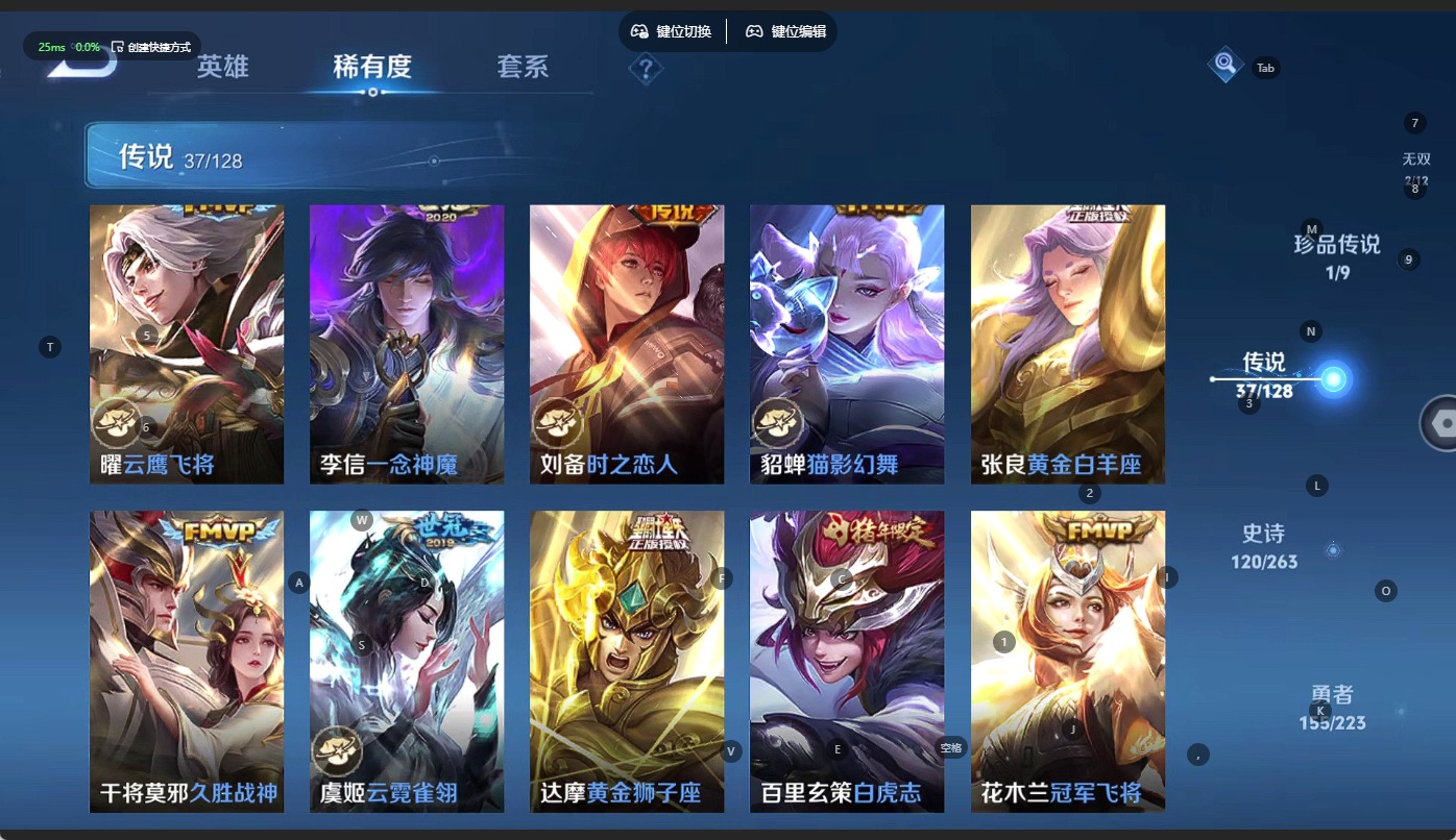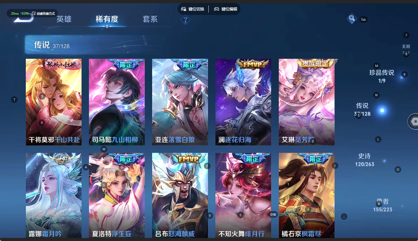 - [11702364]V5 4传说 124英雄 180皮肤 可修改实名 传说皮:幻光神枪 珍宝阁皮:优雅恋人,蔷薇恋人 限定皮:愿照·岁时盈(虞姬年限),逐霄战戟,鸣野蒿,夏侯惇霜北刀,至尊宝,高山流水,梁祝,李小龙 史诗皮:器灵·浮梦炉,星界战将,谪仙醉月,蒙犽顽岩魄,蔬乡物语(鲁班七号),紫霞仙子,电玩小子(小书包),黄金分割率,千年之狐,永昼,魅语,高渐离燃音魔法,蒙恬荣光圣徽,冰冠公主,偶像歌手,电玩·爆裂旋风,暗夜猫娘,龙骑士(小龙虾),猫狗日记-孙策,乱世虎臣,节奏热浪,女仆咖啡,摇滚巨星,水果甜心,绅士熊喵,天才门将,功夫厨神,德古拉伯爵,暗隐猎兽者,鬼剑武藏,心灵战警,拒霜思,乘风破浪,水晶猎龙者,箭羽风息,金属风暴,圣诞狂欢,鹰眼统帅