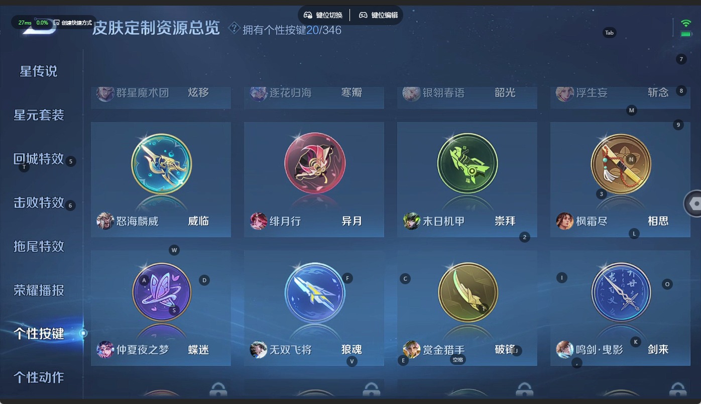大乔猫狗日记,刘邦德古拉伯爵,夏侯惇乘风破浪,阿轲节奏热浪,铠曙光守护者,曹操幽灵船长,廉颇地狱岩魂,伽罗箭羽风息,小乔缤纷独角兽,孙尚香时之恋人,孙策猫狗日记,不知火舞魅语,鲁班七号电玩小子,项羽苍穹之光,吕布圣诞狂欢,露娜紫霞仙子,吕布末日机甲,诸葛亮黄金分割率,刘禅电玩·爆裂旋风,刘禅天才门将,刘禅绅士熊喵,宫本武藏鬼剑武藏,杨玉环银翎春语,公孙离无限星赏官,兰陵王暗隐猎兽者,貂蝉圣诞恋歌,花木兰水晶猎龙者,李白千年之狐,安琪拉心灵骇客,安琪拉时之奇旅,白起星夜王子,亚瑟心灵战警,嬴政摇滚巨星,嬴政暗夜贵公子,程咬金功夫厨神,百里玄策热力回旋,百里玄策原初追逐者,雅典娜冰冠公主,雅典娜黎明之约,李元芳逐浪之夏,百里守约特工魅影,墨子金属风暴,蔡文姬舞动绿茵,澜赏金猎手,娜可露露晚萤,王昭君偶像歌手,嫦娥拒霜思,钟馗乐园奇幻夜,橘右京修罗