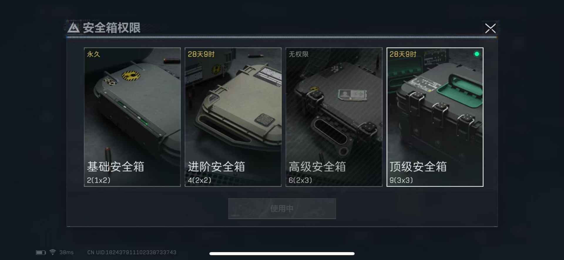[12287324]总资产:268.8 8传说枪械 顶尖安全箱(9.17到期) 可二次 可修改实名 优质装备:顶级安全箱(3x3) 烽火地带段位:黑鹰 全面战场段位:军士长 哈夫币:140 传说武器皮肤:QJB201轻机枪-风林火山,SMG45冲锋枪-骑士,CAR-15突击步枪-阿米娅,复合弓-黑-天际线,AK-12突击步枪-特斯拉线圈,SR-3M紧凑突击步枪-特斯拉线圈,UZI冲锋枪-特斯拉线圈,勇士冲锋枪-能天使-午夜邮差 史诗武器皮肤:SR-25射手步枪-战场英杰,MP5冲锋枪-深海恐惧,SG552突击步枪-深海恐惧,AKM突击步枪-林中猎手,SVD狙击步枪-暗夜猎手,M16A4突击步枪-竞赛选手,M1014霰弹枪-林中猎手,SV-98狙击步枪-林中猎手,沙漠之鹰-曙光,SVD狙击步枪-阿萨拉工艺,S12K霰弹枪-曙光,M700狙击步枪-竞技风