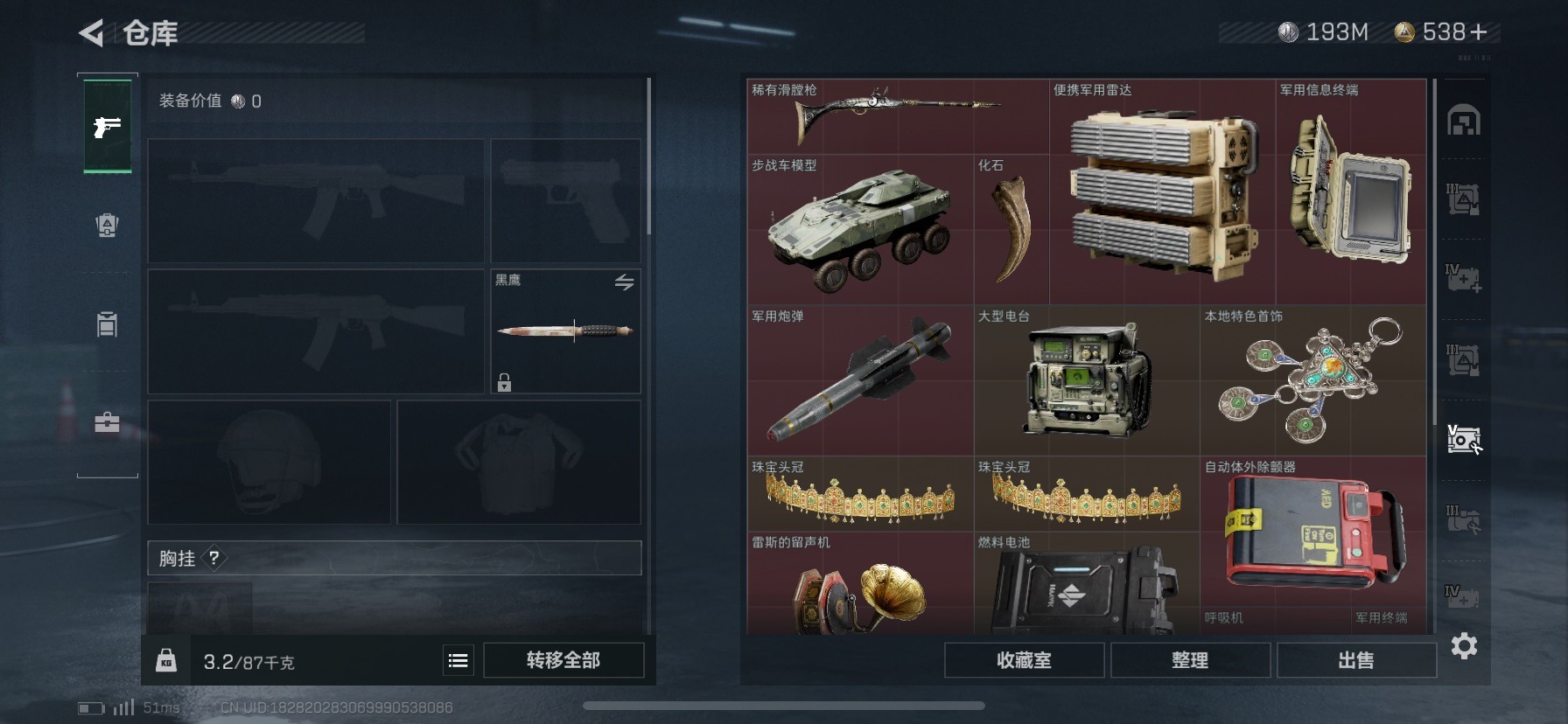 - [11884032]总资产:221.8M 6传说枪械 哈夫币:144K 顶级安全箱(3×3)9.15号到期 可二次 可修改实名 优质装备:顶级安全箱(3x3) 烽火地带段位:黄金 全面战场段位:无段位 传说武器皮肤:M16A4突击步枪-狩猎时刻,M4A1突击步枪-阿米娅,CAR-15突击步枪-阿米娅,Vector冲锋枪-狩猎时刻,G3战斗步枪-狩猎时刻,勇士冲锋枪-能天使-午夜邮差 史诗武器皮肤:PKM通用机枪-蝮蛇,SG552突击步枪-深海恐惧,AKM突击步枪-林中猎手,M1014霰弹枪-林中猎手,SV-98狙击步枪-林中猎手,PTR-32突击步枪-英雄,M250通用机枪-囚徒,SV-98狙击步枪-囚徒,SCAR-H战斗步枪-囚徒,QBZ95-1突击步枪-曙光