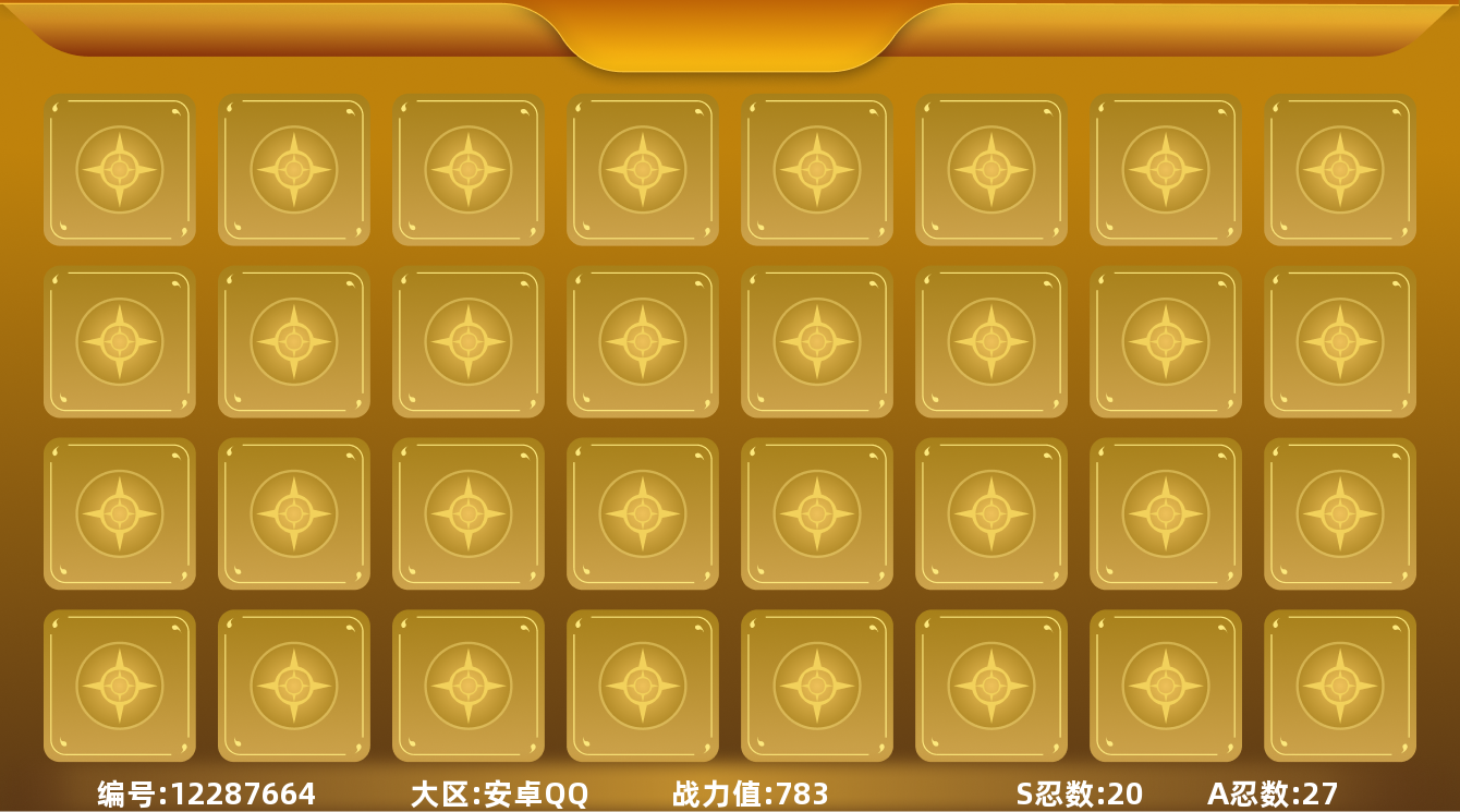 [12287664]V10 20S忍 27A忍 17通灵 783.2W战力 可二次 可修改实名 优质装备:宇智波鼬「秽土转生」,宇智波斑「秽土转生」,宇智波斑 「木叶创立」,千手扉间「秽土转生」,纲手「百豪」,千手柱间,迈特凯「死门」,宇智波带土 「忍界大战」,“宇智波斑” 「白面具」,漩涡鸣人 「九喇嘛连结」,春野樱 「忍界大战」,神秘面具男 「红夜之刃」,宇智波佐助「永恒万花筒」,宇智波斑「秽土转生·解」,艾「忍界大战」 S级忍者:自来也 「舞之豪杰」,佩恩「天道」,波风水门,大蛇丸,自来也