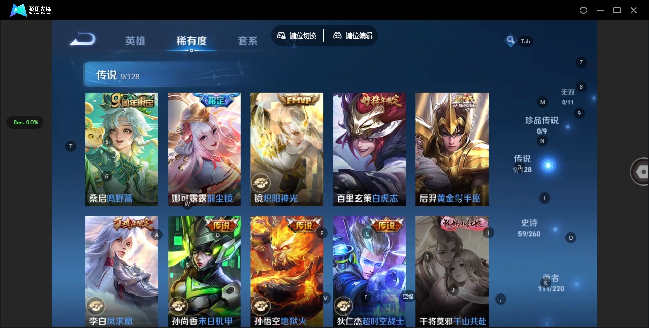 - PX_2093929-实名: 可修改 贵族等级: V7 英雄数: 123 皮肤数: 185 星传说: 幽冥火 传说皮: 地狱火,典韦战鼓燎原 限定皮: 李小龙,梁祝,五谷丰年,鸣野蒿,逐霄战戟
