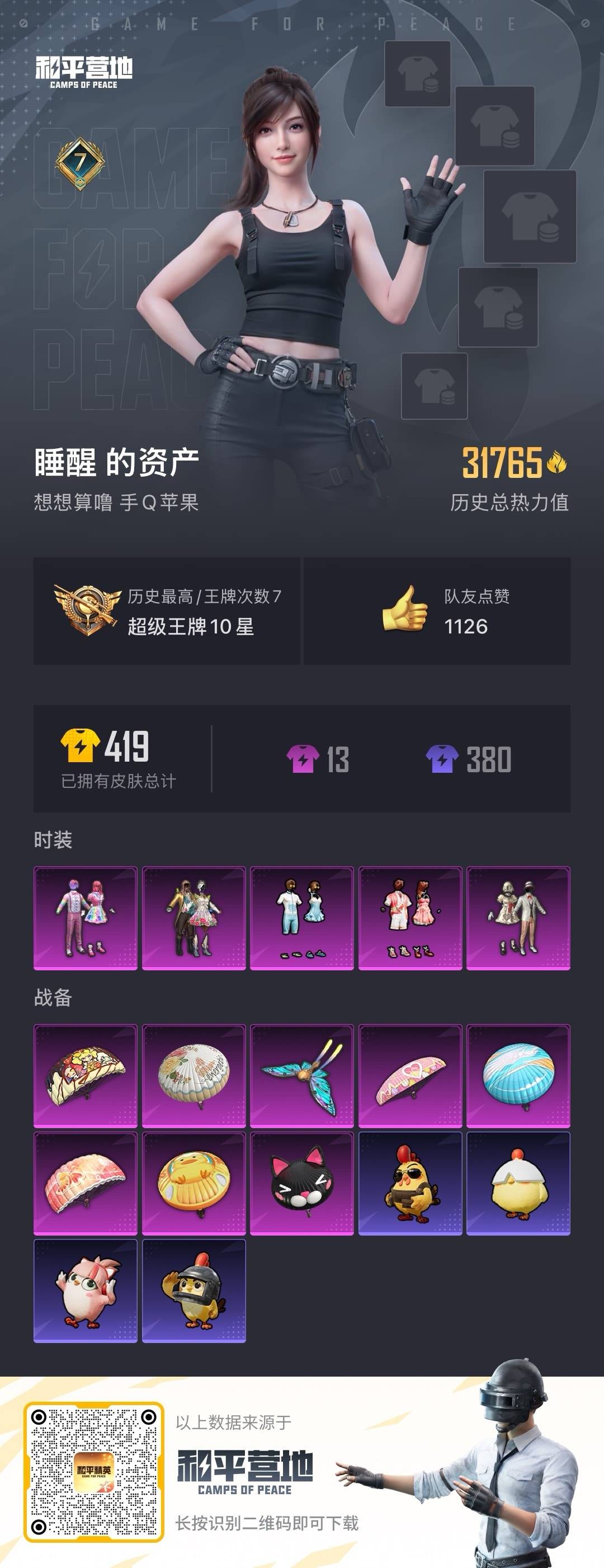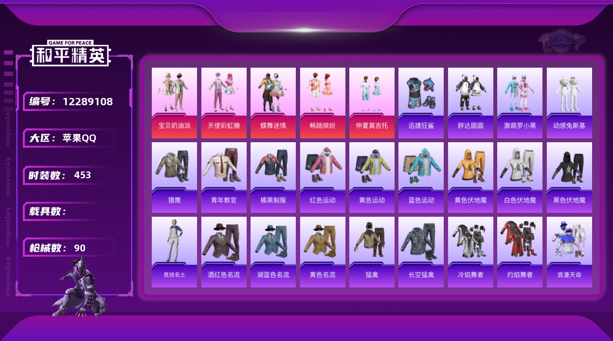 - PX_2067367- 安卓手Q-1王牌印记-5粉装-1特效枪-0载具-16864热力值-53套装-54枪皮-1卓越印记-1传奇印记 【5粉装】,冷漠罗丽,星穹咏叹调,罗征,天鹅座 冰河,傲傲奶龙 【1特效枪】AKS-74U-星穹咏叹调-5级 【2稀有紫装】,浪漫天命,龟仙人, 【53稀有时装】,SS31特训,SS33特训,SS32特训,彩虹兔,蓝冰羽,霓虹热舞,雪绒豹,星渊小夜曲,星影赞美诗,