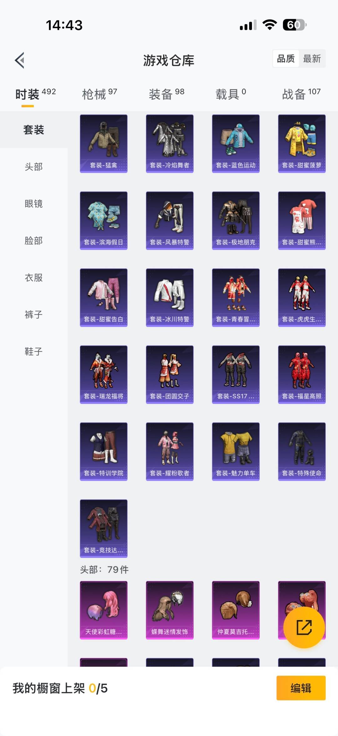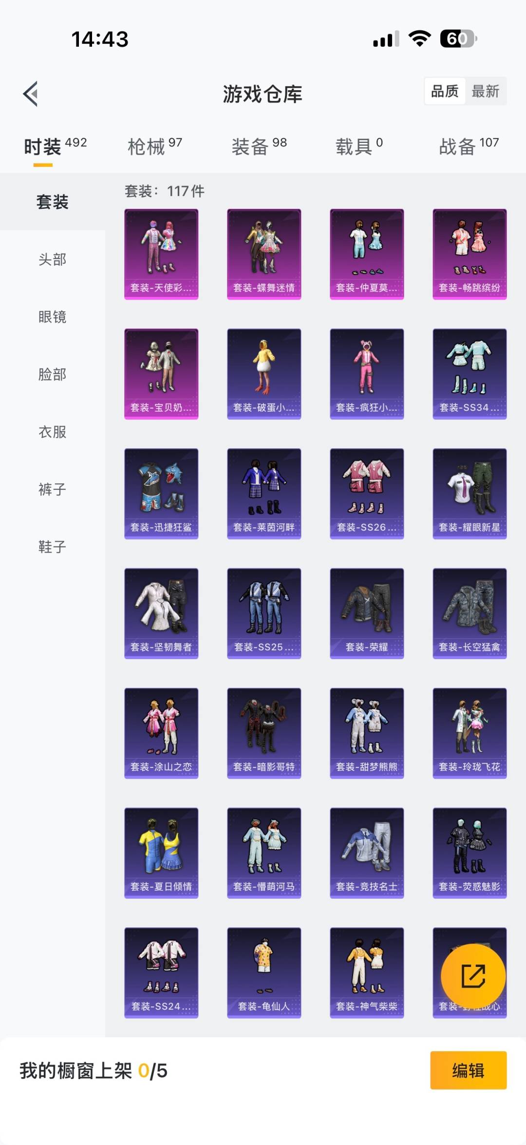 [12289108]5粉装 7印记 可二次 可修改实名 女号 身法装备:暗影哥特(红眼罩) 优质装备:蝶舞迷情,宝贝奶油派,天使彩虹糖 热门装扮:仲夏莫吉托,畅跳缤纷,动感兔斯基,胖达圆圆,激萌罗小黑,迅捷狂鲨 紫色装扮:SS23特训,田园牧歌,轻风白浪,幻彩翩翩,SS22特训,莱茵河畔,白兰地假日,龙舌兰冰茶,跃动晴空,活力清阳,摩登艾咪,妙红点点,夏日音浪,坚韧舞者,夏日倾情,完美偶像,帅气教官,幻世战舞者,幻影武者,战地督导,冷焰舞者,人气偶像,军械专家,冰川特警,娇憨猪猪,瑞龙福将,团圆交子,SS17特训,青春冒险家,SS21特训,SS20特训,萌趣咩咩,SS18特训,SS19特训,飞行日记,魅力单车,鹤鸣,麻辣教官,黄色伏地魔,黄色名流,黄色运动,黑色伏地魔,龙腾端午,风暴特警,龟仙人,都市魅力,酒红色名流,野性战心,长空猛禽,霓虹街区,青年教官,探宝勇士,炫蓝之夏,湖蓝色名流,滨海假日,滨海厨神,灰色格斗者,灼焰舞者,热血青春,牛气冲天,牛气满满,特殊使命,深蓝色名流,狂战萌兔,极地朋克,极速红龙,柠萌假日,涂山之恋,橘黑制服,特训学院,绮丽涂鸦,耀眼新星,红色运动,荣耀,荧惑魅影,蓝彩潮人,蓝色运动,虎虎生威吉莉,街头潮人,白色伏地魔,猎鹰,猛禽,王牌教练,甜蜜告白,甜蜜熊情侣,甜蜜菠萝,疯狂小兔子,白熊同盟,破晓战魂,破蛋小黄鸡,福星高照,空投萌叽,竞技达人朋克,玉兔迎春,竞技名士,暗影哥特(红眼罩),粉红小猪,甜梦熊熊,神气柴柴,懵萌河马,SS24特训(SS24特训套装),萤火魅影(套装-荧惑魅影),SS25特训,Alan Walker,浪漫天命,SS26特训,玲珑飞花,淡雅花蕊,耀粉歌者,萌黄之夏,光之冒险 优质战备:垂柳戏鸭降落伞,畅跳缤纷降落伞,仲夏莫吉托降落伞,飒粉甜心降落伞,甜心宝贝降落伞,春暖花开降落伞,飞行器-春暖花开,神秘黑猫降落伞