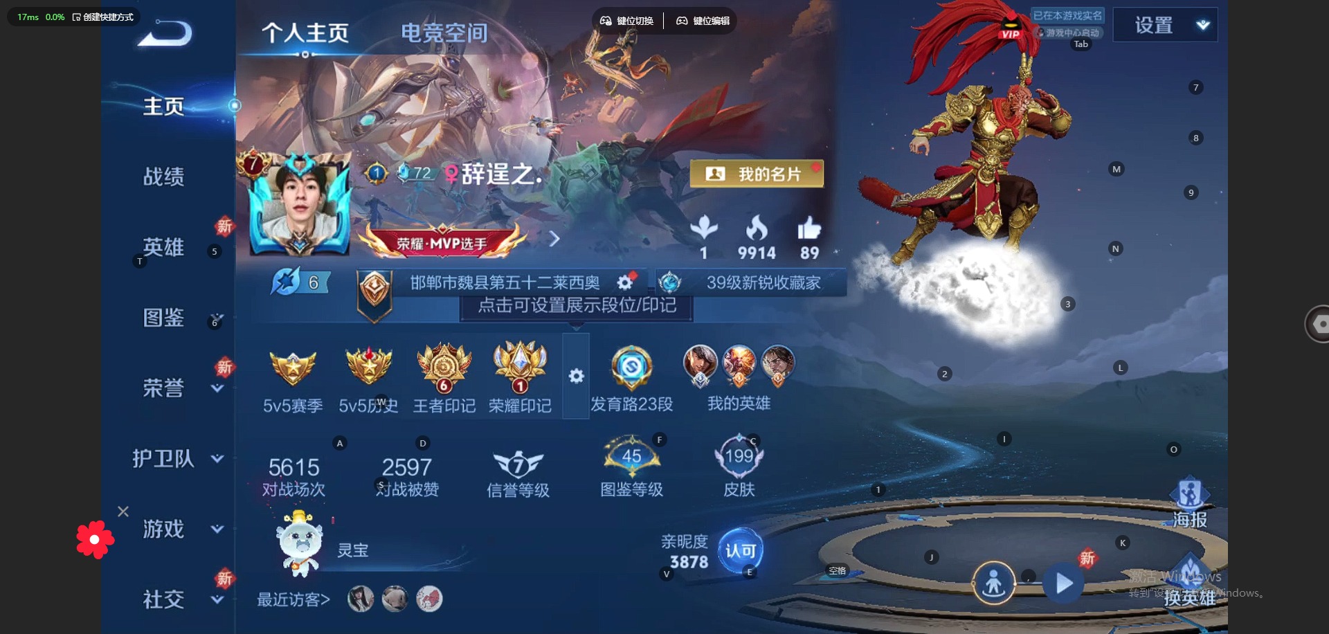 - [11651385]V6 1典藏 1珍品传说 8传说 124英雄 160皮肤 可修改实名 优质装备:鸣剑·曳影,怪盗基德,黄金射手座,云鹰飞将(小将军),猫影幻舞,妄想实况,涂山容容 传说皮:死亡执政官,九山相柳,幻光神枪 珍宝阁皮:妄想食味,蔷薇恋人 限定皮:鸣野蒿,梁祝,李小龙 史诗皮:星界战将,蒙犽顽岩魄,百相守梦-百里守约,遇见神鹿,苍穹之光,江河有灵,蒙恬荣光圣徽,青蛇,偶像歌手,猫狗日记-孙策,乱世虎臣,摇滚巨星,水果甜心,星夜王子,德古拉伯爵,暗隐猎兽者,幽灵船长,鬼剑武藏,心灵战警,缤纷独角兽,乘风破浪,逐浪之夏,水晶猎龙者,箭羽风息,金属风暴,原初追逐者,圣诞狂欢,鹰眼统帅,王者之锤,魅力维加斯,黎明之约