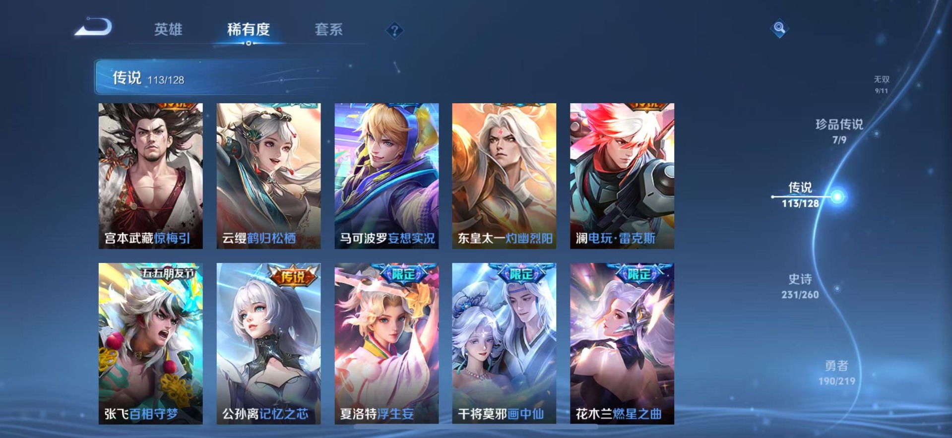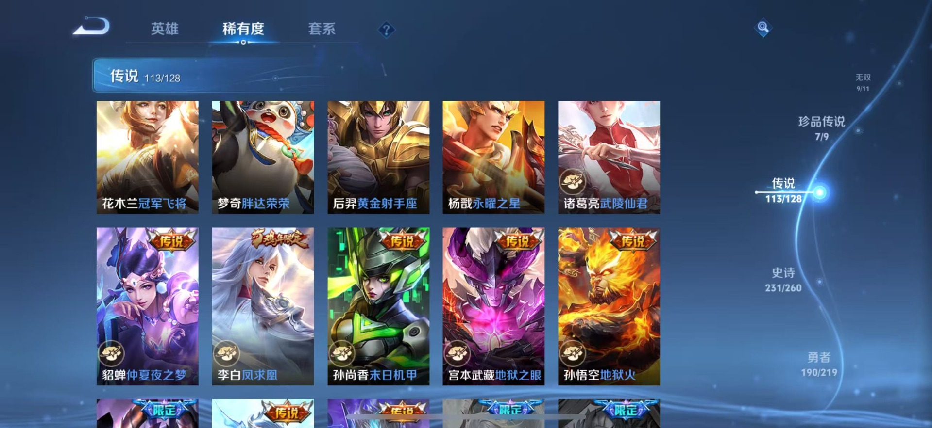 - [12223945]V8 1典藏 14传说 125英雄 321皮肤 可修改实名 优质装备:鸣剑·曳影,久胜战神,云霓雀翎,末日机甲-孙尚香(绿蚂蚱),胖达荣荣,淬星耀世,遇见胡旋,千山共赴,涂山容容 珍宝阁皮:妄想食味,优雅恋人,女武神 限定皮:愿照·九州拓(澜年限),鸣野蒿,至尊宝,凤求凰(白切鸡),武陵仙君(小桃花),傲雪梅枪,神威(电光马子),飞衡(韩信年限),遇见飞天,高山流水,诗剑行,五谷丰年,冰锋战神,梁祝,岱宗(典韦年限),天狼溯光者,李小龙,逐梦之影,朱雀志(守约年限),圣诞老人,真爱至上,孙行者,猪悟能,大圣娶亲,天魔缭乱,蜜橘之夏,匿光追影者 史诗皮:器灵·浮梦炉,绮世丹青,化蝶舞,龙之律动,星界战将,百相守梦-周瑜,茶境仙,东方月初,蔬乡物语(鲁班七号),紫霞仙子,电玩小子(小书包),白龙吟,黄金分割率,特工魅影,千年之狐,冰冠公主,江河有灵,魅语,电玩·爆裂旋风,晚萤,偶像歌手,龙骑士(小龙虾),末日机甲-吕布,猫狗日记-孙策,时之恋人-孙尚香,节奏热浪,修罗,女仆咖啡,摇滚巨星,水果甜心,天才门将,星夜王子,心灵骇客,时之奇旅-安琪拉,功夫厨神,德古拉伯爵,暗隐猎兽者,幽灵船长,鬼剑武藏,心灵战警,舞动绿茵,地狱岩魂,纤云弄巧,繁星吟游(呼啦呼啦),拒霜思,缤纷独角兽,乘风破浪,逐浪之夏,水晶猎龙者,曙光守护者,箭羽风息,金属风暴,原初追逐者,圣诞狂欢,圣诞恋歌,鹰眼统帅,暗夜贵公子,黎明之约,无心,未来纪元-赵云