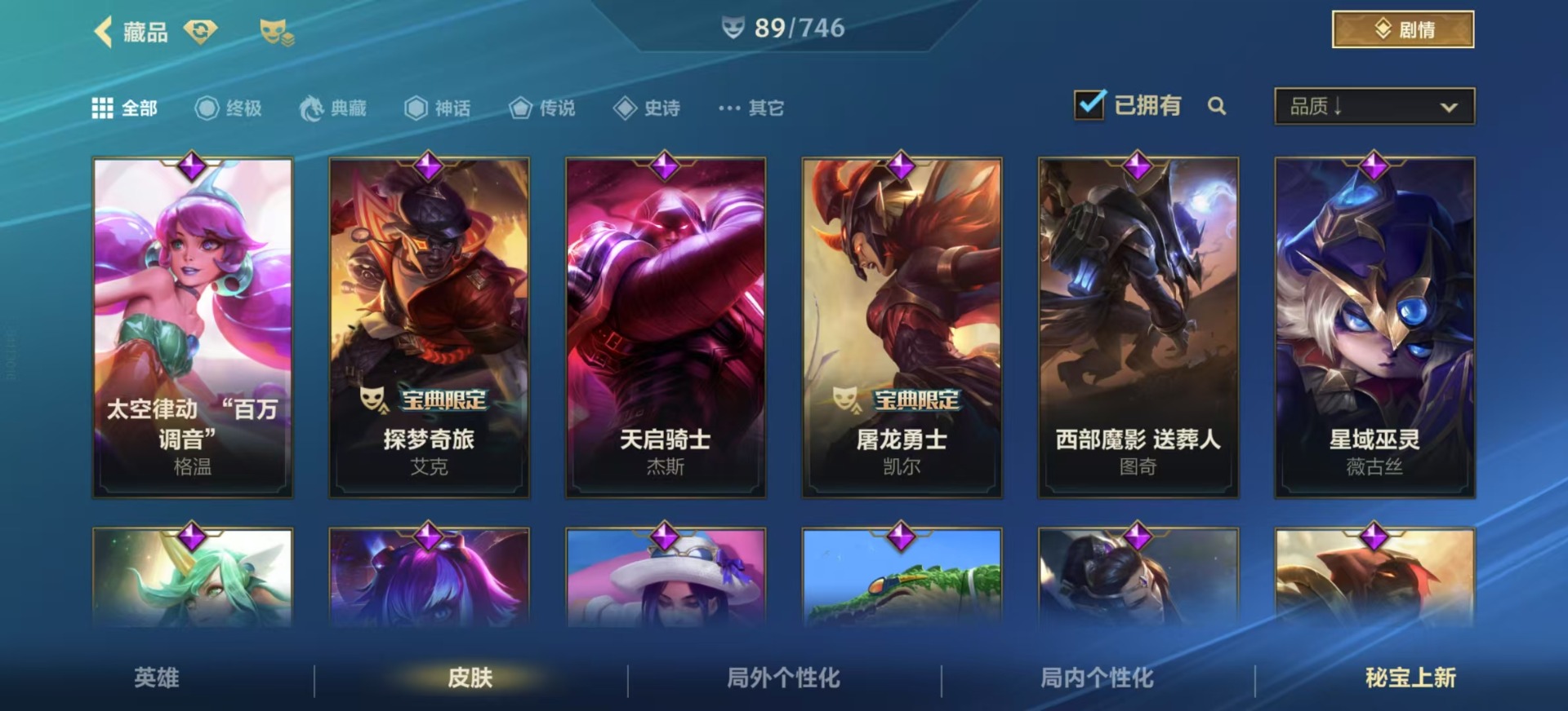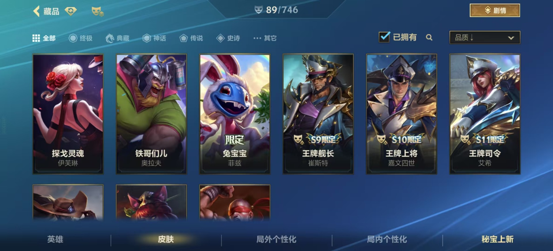 - [11498159]V4 1典藏 3传说 123英雄 169皮肤 可修改实名 荣耀水晶:鸣剑·曳影 传说皮:幻光神枪 珍宝阁皮:妄想食味,蔷薇恋人 限定皮:愿照·山河定(司空震年限),逐霄战戟,鸣野蒿,梁祝,李小龙,猪悟能 史诗皮:龙之律动,化蝶舞,白龙吟,千年之狐,江河有灵,百解令(蒙犽),冰冠公主,乱世虎臣,女仆咖啡,摇滚巨星,水果甜心,星夜王子,功夫厨神,德古拉伯爵,鬼剑武藏,心灵战警,地狱岩魂,乘风破浪,逐浪之夏,曙光守护者,箭羽风息,金属风暴,圣诞狂欢,圣诞恋歌,鹰眼统帅
