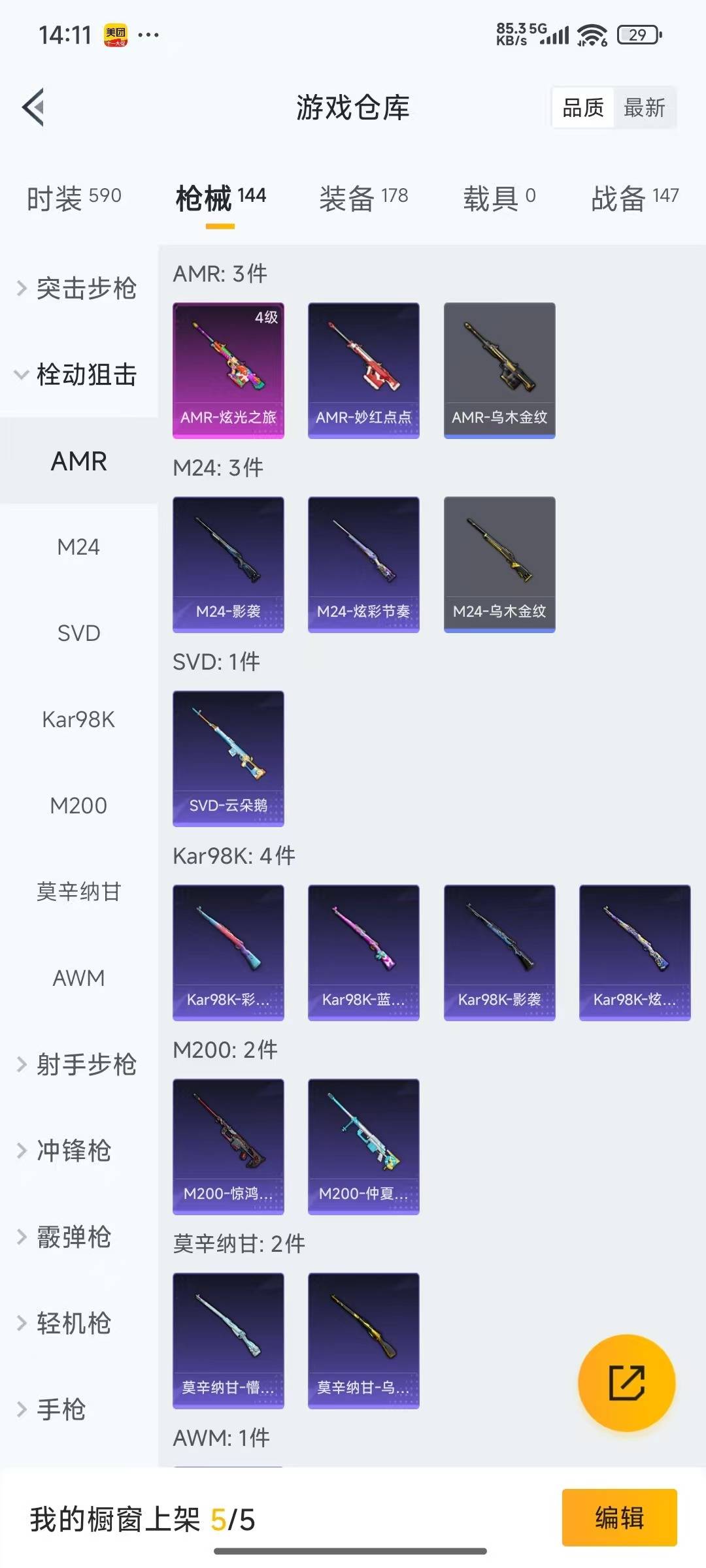 M416-心之恋语,AMR-炫光之旅,M249-彩虹甜喵