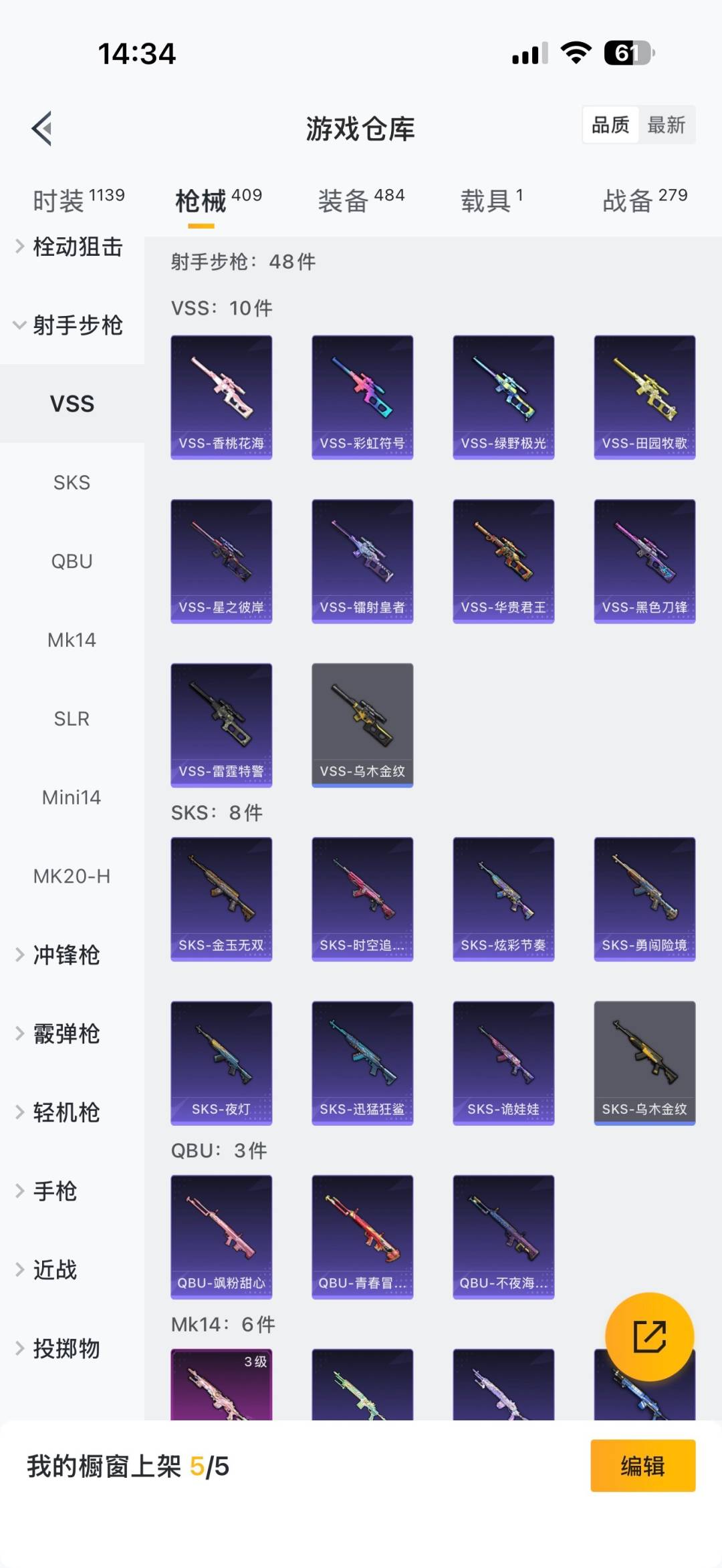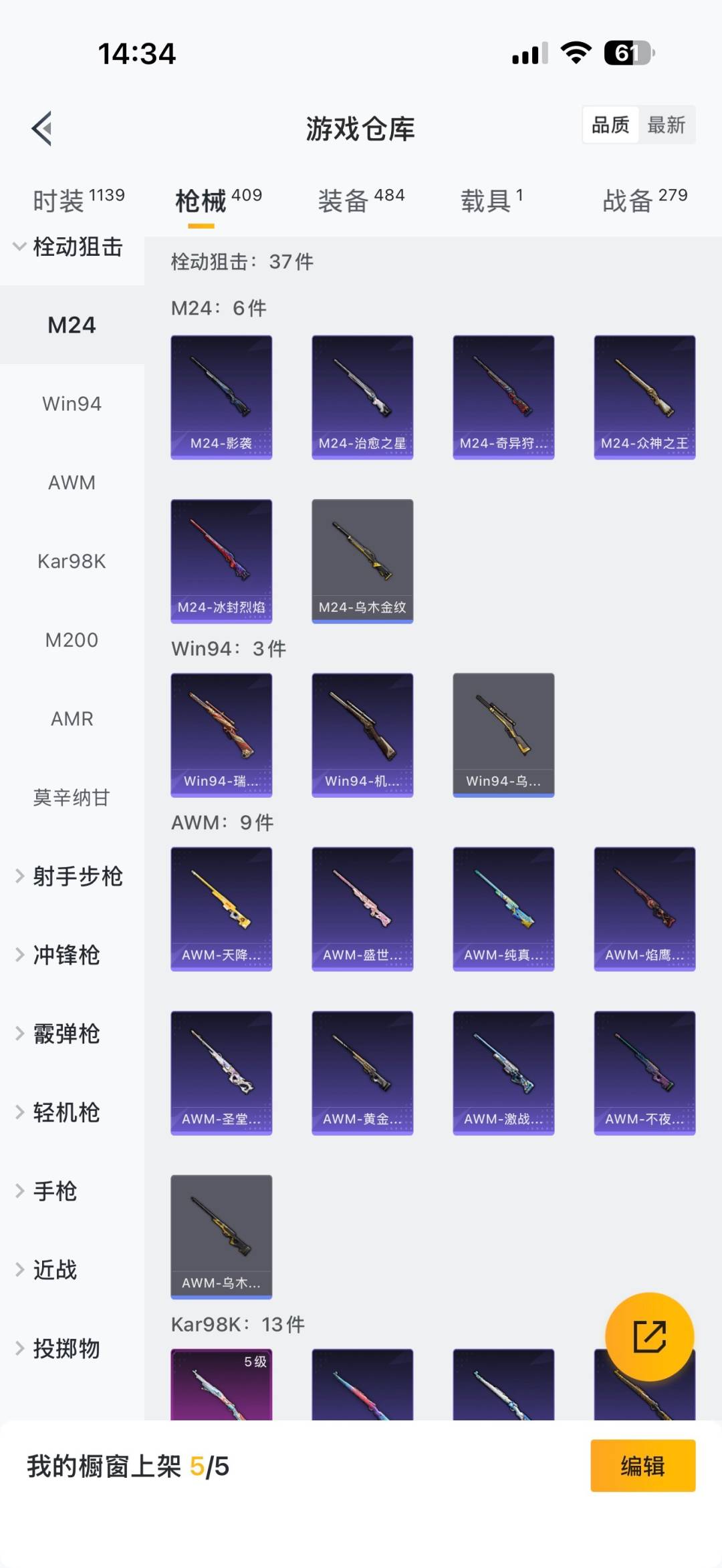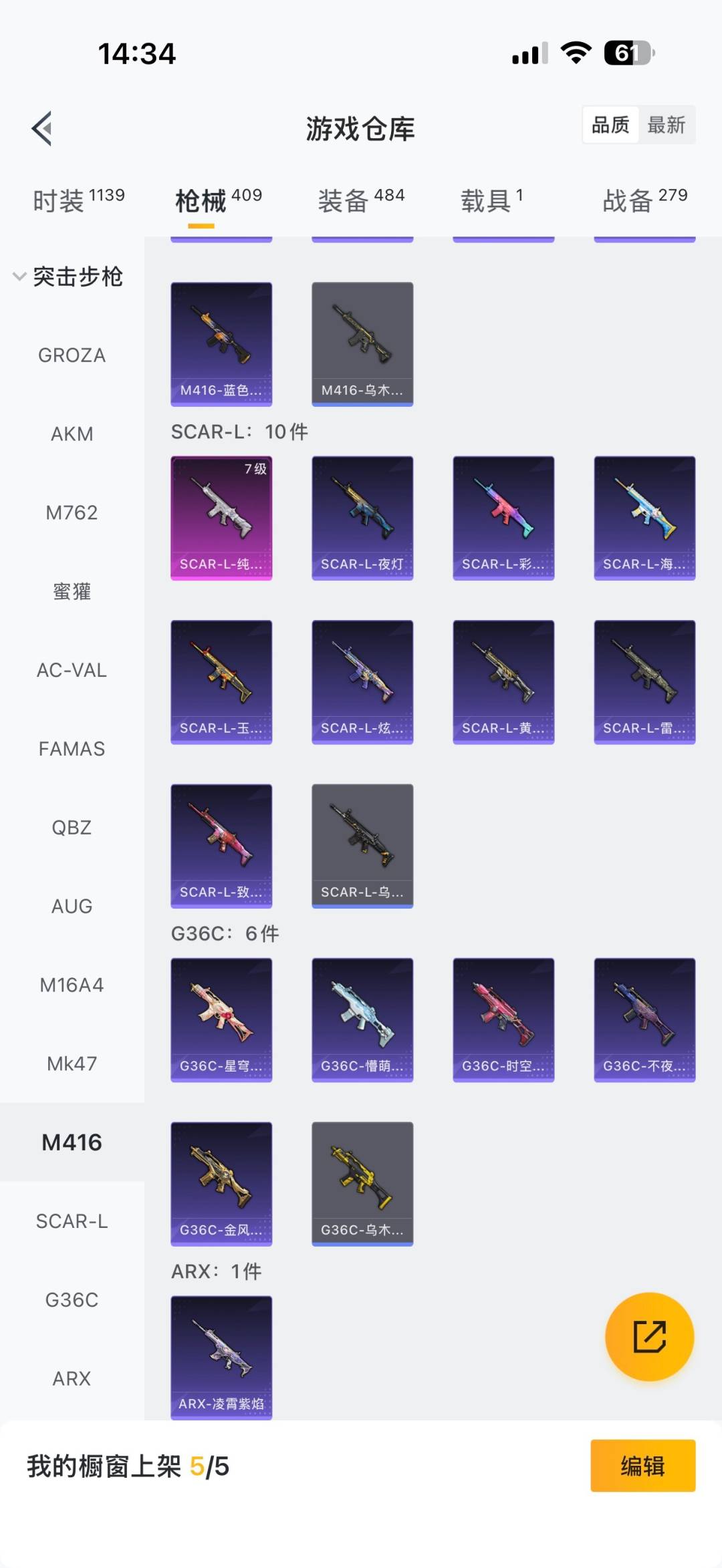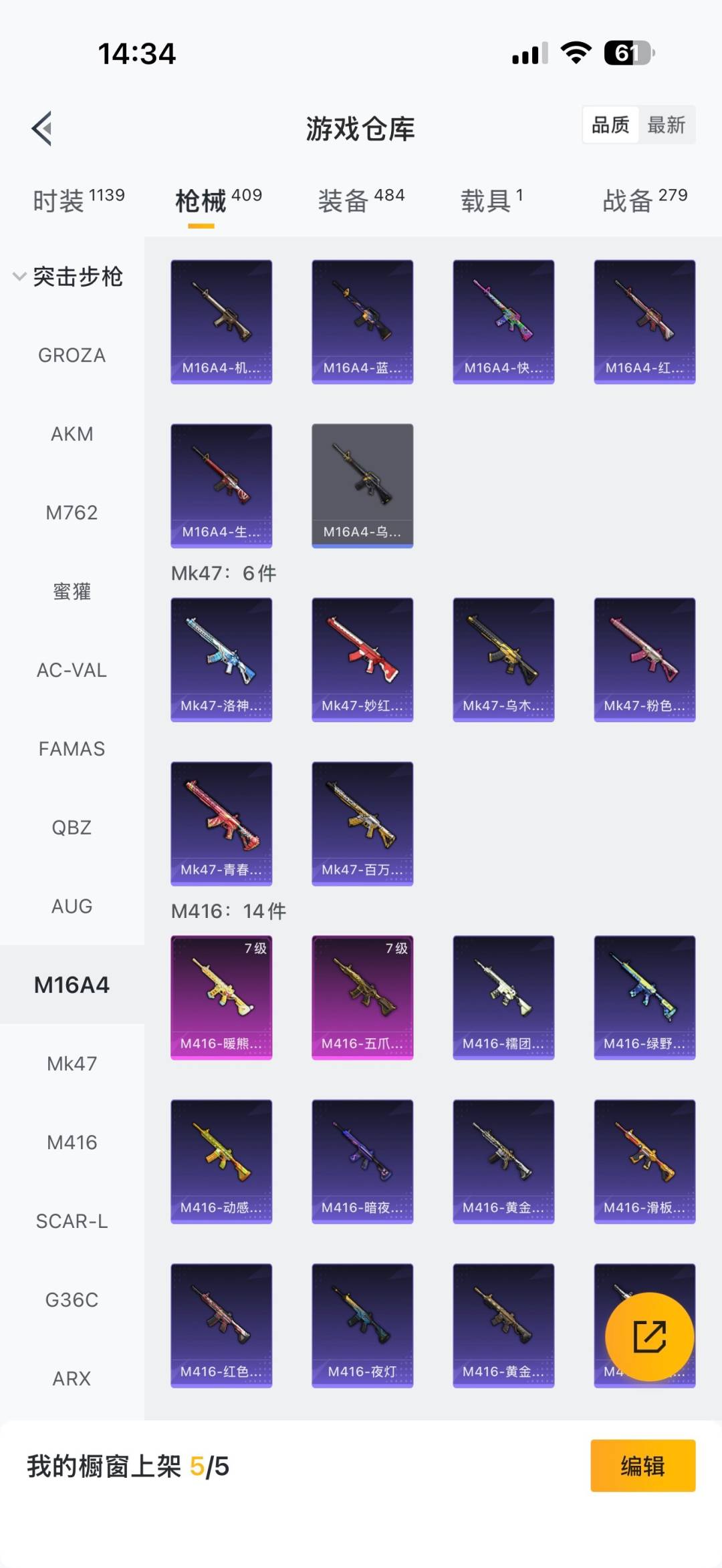 GROZA-镜光银凌,M762-激战未来,AUG-暖羊咩咩,M416-暖熊萌萌,M416-五爪金龙,SCAR-L-纯梦嫁纱,Kar98K-巳巳如意,Mk14-盛世惊鸿
