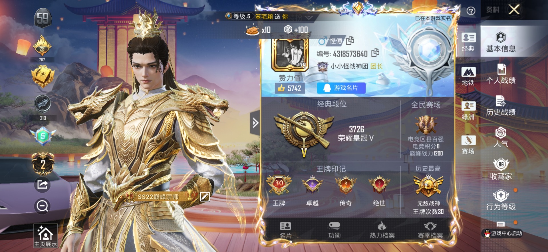 - PX_2095033-实名: 可修改 贵族等级: V5 英雄数: 80 皮肤数: 47 传说皮: 云霓雀翎,乘龙·问璇玑,貂蝉曦玄引 限定皮: 鸣野蒿