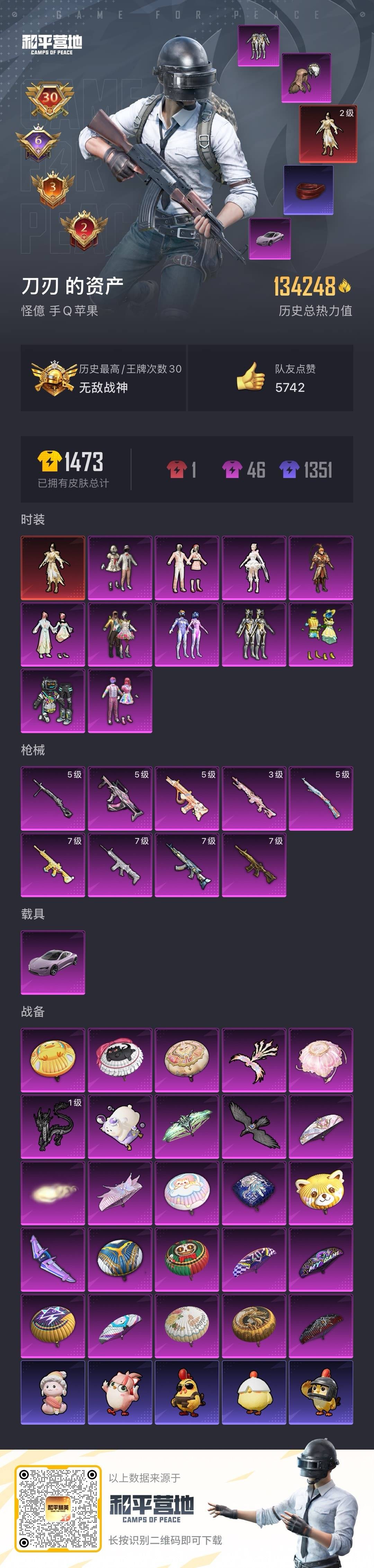 - [11522151]6粉装 4特效枪 2载具 15印记 可二次 可修改实名 身法装备:舞王派对(派对舞王、小金鞋),暗影哥特(红眼罩),萌熊伴侣背包(粉熊背包) 优质装备:玛莎拉蒂Ghibli(粉),甜心巧克力,路特斯EVIJA(星际黄),舞王派对(派对舞王、小金鞋),萌熊伴侣背包(粉熊背包),M416五爪金龙,宝贝奶油派,天使彩虹糖,向日葵(套装-向日葵先生),MG3炙焰牛王,七级MG3-炙焰牛王,七级M416-五爪金龙,羲和光序,Kar98K-巳巳如意 热门装扮:暗夜玫瑰,创世·救赎,万圣娃娃,梦魇先生,深海小丑鱼,东方飞龙,浪漫波比,萌熊伴侣,派对舞王(小金鞋) 稀有枪皮:DP-28-豹影疾电 五级特效枪:五级Kar98K-巳巳如意,五级DP-28-豹影疾电 紫色装扮:SS22特训,SS23特训,SS21特训,SS31特训套装,SS2特训,SS3特训,SS4特训,SS5特训,人气偶像,六六大吉,冰川特警,决胜时刻,冷焰舞者,凛冬战士,刚毅裁决者,北国孤狼,午夜朋克,旭日情侣,SS30特训套装,云朵鹅,彩虹兔,雪绒豹,SS33特训套装,青涩时光,顶瓜瓜,5.56爱好者,SS20特训,SS15特训,SS16特训,冰爽海盐,银白舞王,SS13特训,治愈之星,科技之星,SS14特训,飞驰魅影,音速流光,SS19特训,竞技角斗士,浑天鲲鹏,覆海蛟龙,甜心亚梦,虚音幻奏,瑞龙福将,团圆交子,SS17特训,异彩先驱,SS18特训,向日葵先生,阳光火鸡,都市魅力,酒红色名流,酷潮明星,野性战心,野性战魂,金鼠迎春,长空猛禽,雪山征服者,雪山精英,雷霆特警,霓虹极客,霓虹街区,青春校园,迎春赐吉,风暴特警,缤纷果语,荣耀,蓝彩潮人,蓝色运动,虎虎生威吉莉,超能勇士,飞行日记,骑行爱好者,魅力单车,鹤鸣,黄色伏地魔,黄色名流,黄色格斗者,黄色运动,黎明保卫者,黑色伏地魔,龙的传人,龟仙人,冰河战士,龙魂突击队,蝶变,和平特警,沙漠毒蛇,极地朋克,极速红龙,柠萌假日,格斗先锋,棕色飞行服,橘黑制服,沙漠兵团,派对绅士,海岛探路者,海滨突袭者,深蓝色名流,滨海假日,幻影武者,圣诞大吉,坚韧舞者,夏日倾情,夏日音浪,夜莺强袭者,完美偶像,帅气教官,幻世战舞者,怒火燎原,战地名士,战地督导,战地菁英,湖蓝色名流,滨海厨神,绮丽涂鸦,甜蜜菠萝,生化防暴队,疯狂小兔子,登山爱好者,白色伏地魔,破晓战魂,破蛋
