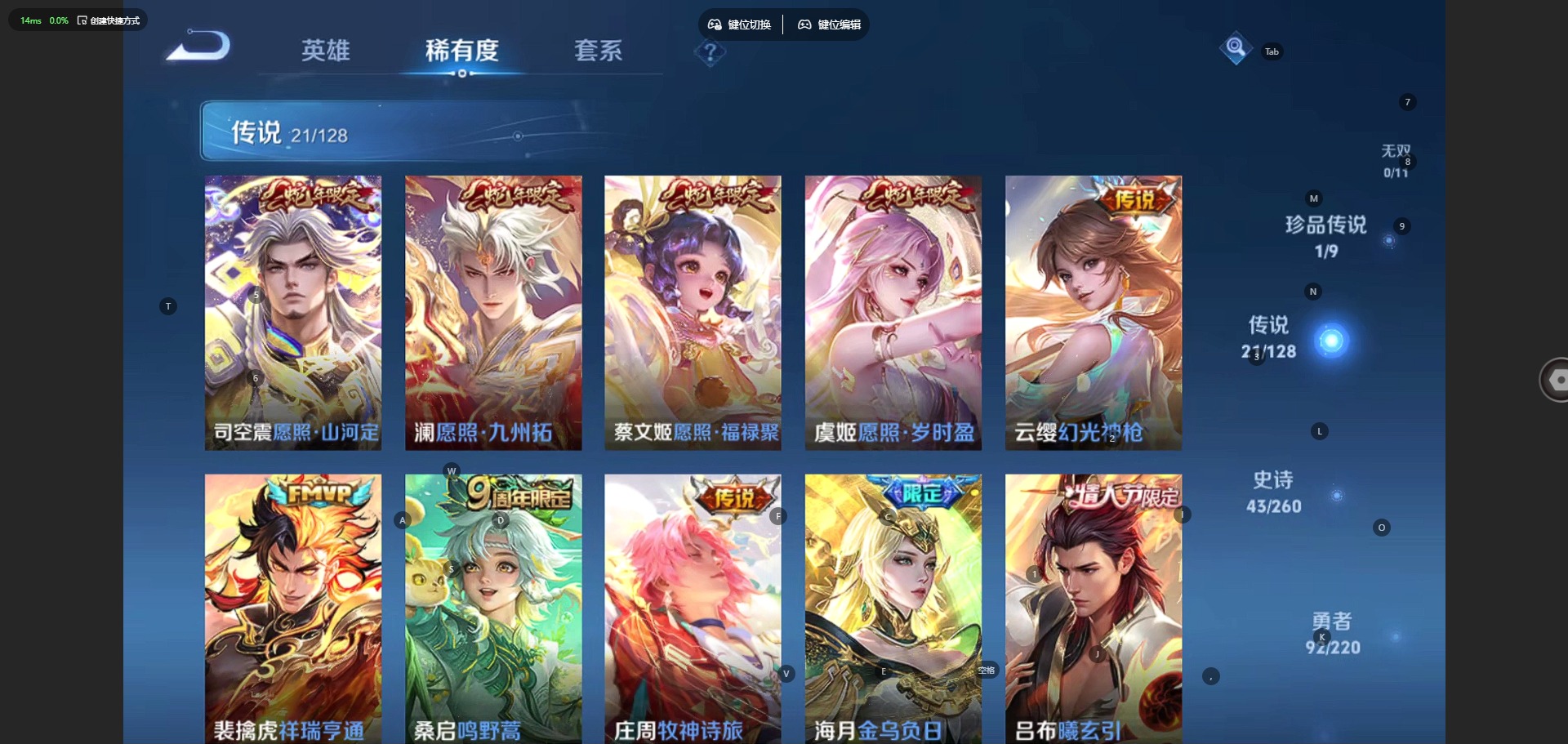 - [11466492]V9 3典藏 20传说 124英雄 297皮肤 可修改实名 优质装备:无限飓风号(高达),大秦宣太后,全息碎影(猴子典藏),黄金狮子座,黄金射手座,云鹰飞将(小将军),黄金白羊座,久胜战神,炽阳神光,一念神魔,末日机甲-孙尚香(绿蚂蚱),地狱之眼,时之恋人-刘备(电焊工),超时空战士-狄仁杰,末日机甲-孙策 珍宝阁皮:万物之道,蔷薇恋人,玩趣恶龙 限定皮:至尊宝,白虎志(电光耗子),凤求凰(白切鸡),梅西,武陵仙君(小桃花),傲雪梅枪,时雨天司(水龙头),神威(电光马子),飞衡(韩信年限),瑞麟志(木兰年限),匿光决锋者,怒海麟威,五谷丰年,青龙志(铠年限),武圣,梁祝,天狼狩猎者,虎魄,天狼绘梦者,李小龙,朱雀志(守约年限),圣诞老人,默契交锋-花木兰,一生所爱,大圣娶亲,青春决赛季,冰霜恋舞曲,神奇女侠,匿光追影者,女儿国国王,玉兔公主,深海之息(深海大菠萝) 史诗皮:化蝶舞,茶境仙,战舞者,百相守梦-黄忠,遇见神鹿,紫霞仙子,苍穹之光,电玩小子(小书包),黄金分割率,特工魅影,千年之狐,永昼,魅语,无限星赏官,冰冠公主,偶像歌手,暗夜猫娘,龙骑士(小龙虾),末日机甲-吕布,猫狗日记-孙策,猫狗日记-大乔,时之恋人-孙尚香,乱世虎臣,节奏热浪,修罗,摇滚巨星,水果甜心,天才门将,星夜王子,心灵骇客,功夫厨神,德古拉伯爵,暗隐猎兽者,幽灵船长,鬼剑武藏,心灵战警,乐园奇幻夜,天秀·启明,舞动绿茵,地狱岩魂,繁星吟游(呼啦呼啦),拒霜思,缤纷独角兽,乘风破浪,逐浪之夏,水晶猎龙者,曙光守护者,箭羽风息,唤灵魅影,金属风暴,原初追逐者,圣诞狂欢,圣诞恋歌,鹰眼统帅,王者之锤,赏金猎手