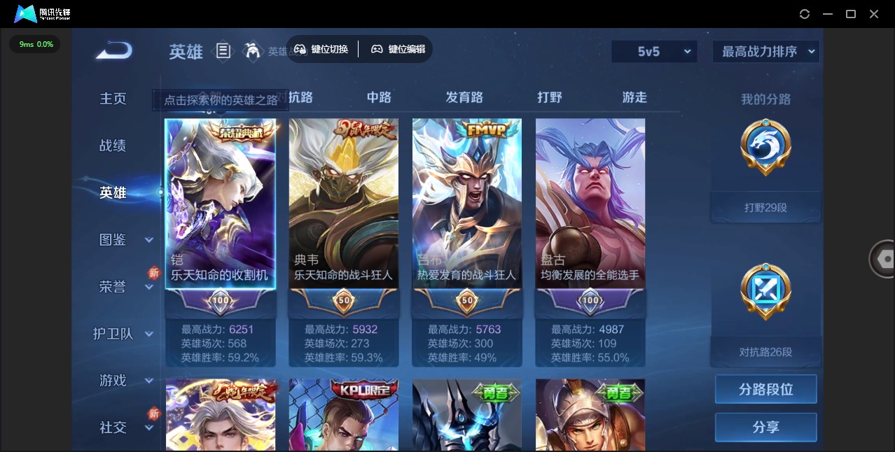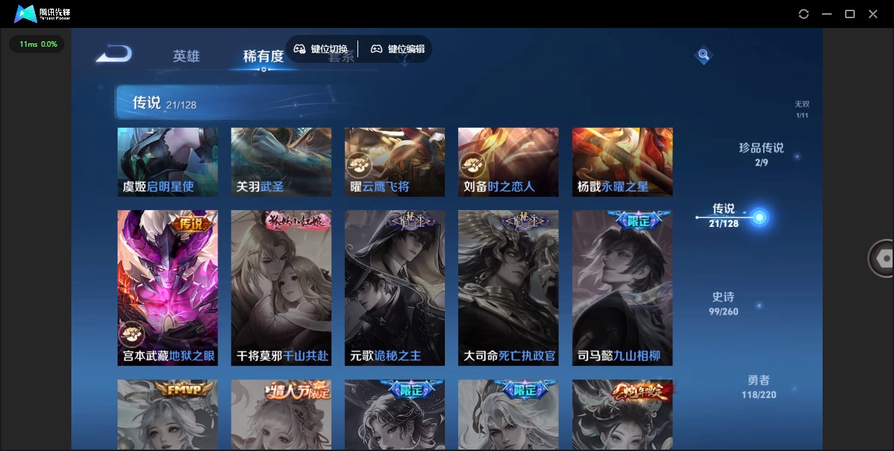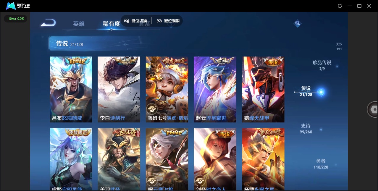 - [11497669]V7 6传说 122英雄 263皮肤 可修改实名 传说皮:幻光神枪,地狱之眼,一念神魔,炽阳神光 珍宝阁皮:妄想食味,蔷薇恋人,玩趣恶龙 限定皮:愿照·九州拓(澜年限),鸣野蒿,傲雪梅枪,神威(电光马子),遇见飞天,高山流水,五谷丰年,梁祝,李小龙,朱雀志(守约年限),山海·玄木吟(马可年限) 史诗皮:星界战将,器灵·浮梦炉,百相守梦-百里守约,战舞者,炽弈燎原,破空之剑,紫霞仙子,苍穹之光,特工魅影,千年之狐,永昼,江河有灵,高渐离燃音魔法,蒙恬荣光圣徽,电玩·爆裂旋风,百相守梦(关羽),猫狗日记-孙策,乱世虎臣,节奏热浪,修罗,女仆咖啡,摇滚巨星,水果甜心,绅士熊喵,天才门将,星夜王子,心灵骇客,功夫厨神,德古拉伯爵,暗隐猎兽者,幽灵船长,鬼剑武藏,心灵战警,纤云弄巧,拒霜思,缤纷独角兽,乘风破浪,逐浪之夏,月团寄思,水晶猎龙者,曙光守护者,箭羽风息,金属风暴,原初追逐者,圣诞狂欢,圣诞恋歌,鹰眼统帅,暗夜贵公子,魅力维加斯,黎明之约,赏金猎手,无心,未来纪元-赵云,玫瑰异探