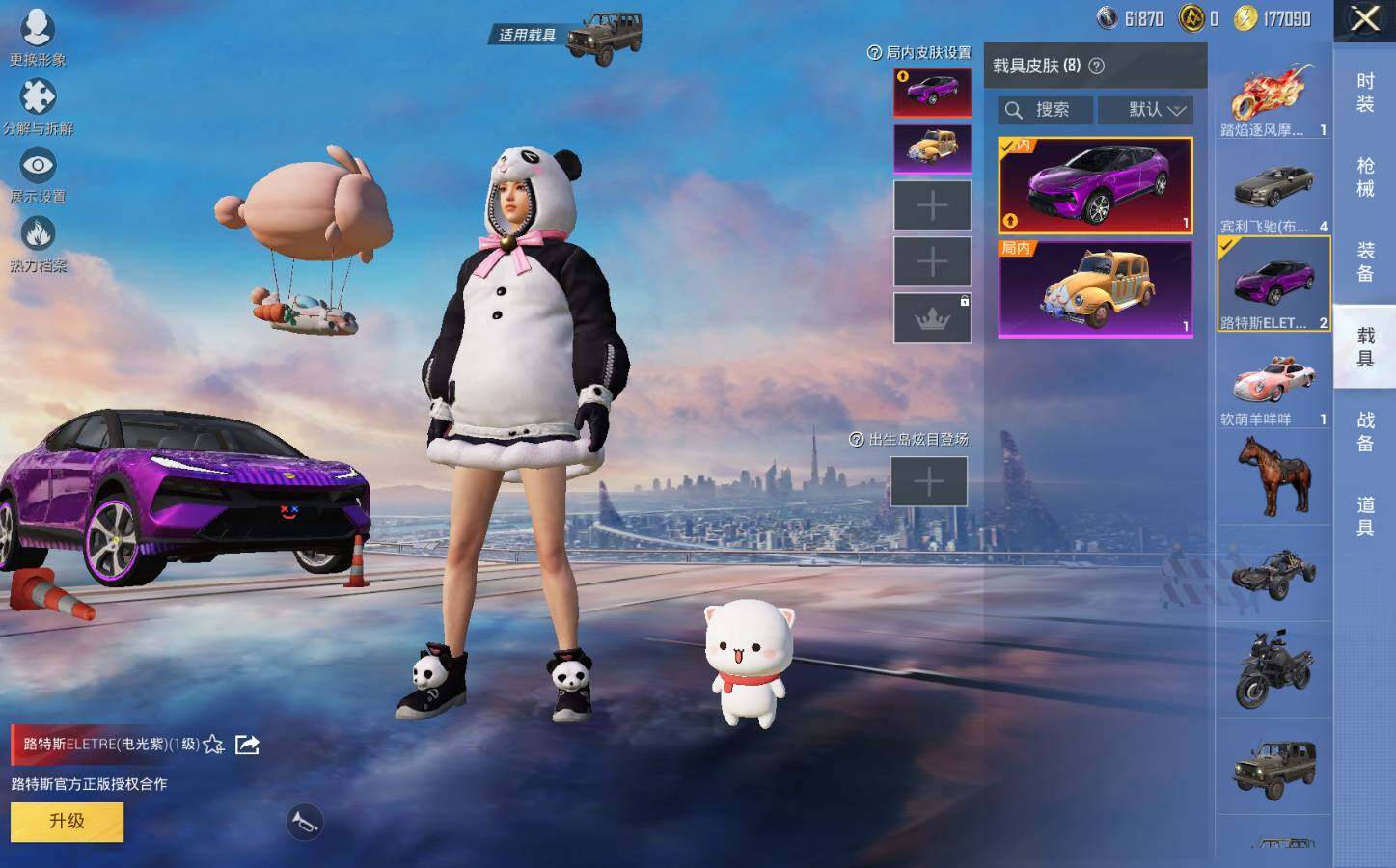 宾利飞驰(布罗德盖棕双色),路特斯ELETRE(电光紫),萌喵橘座,玛莎拉蒂Quattroporte(幻星粉),软萌羊咩咩,玛莎拉蒂Ghibli(蓝),玛莎拉蒂Ghibli(粉)
