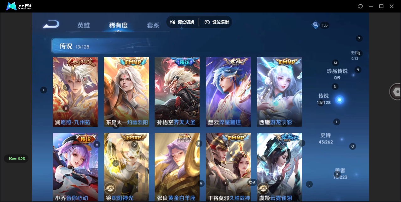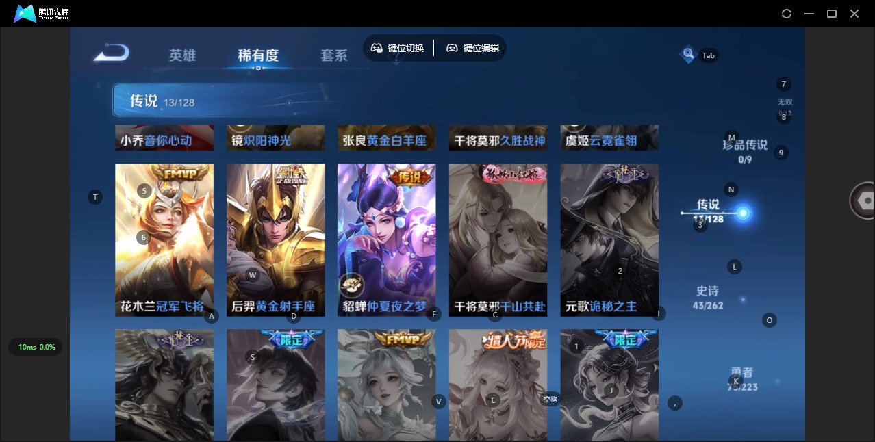 - [11295574]V10 5典藏 4无双 5珍品传说 48传说 126英雄 397皮肤 典藏英雄武则天 可修改实名 优质装备:鸣剑·曳影,九霄神辉(木兰典藏),银白咏叹调(倪克斯侍卫),弑枪猎影(韩信典藏),青丘·九尾(妲己无双),碎月剑心(李白无双),小乔时之魔女(小乔无双),器灵·螭龙剑,最初的交响(伽罗典藏),江户川柯南,怪盗基德,器灵·落星盏,大耳狗之梦,黄金狮子座,黄金射手座,云鹰飞将(小将军),久胜战神,炽阳神光,一念神魔,海洋之心,飞鸢探春,李逍遥,乞巧织情,时之恋人-刘备(电焊工),超时空战士-狄仁杰,碎云,记忆之芯(机甲兔),青丘·九尾,惊梅引,霜月吟,艾琳觅芳踪,琥珀纪元铠,琥珀纪元马超,金乌负日,黄金天蝎座 珍品传说:时之奇旅-孙策 传说皮:乘龙·问璇玑(孙尚香年限),乘龙·铭钟鼎(赵云年限),乘龙·淬吴钩(孙策年限),貂蝉曦玄引,吕布曦玄引,典韦战鼓燎原,落雪白狼,云诺千山,续相思,星之鸣奏,幻光神枪 珍宝阁皮:妄想食味,优雅恋人,玩趣恶龙 限定皮:愿照·九州拓(澜年限),愿照·福禄聚(蔡文姬年限),愿照·岁时盈(虞姬年限),愿照·山河定(司空震年限),愿照·众生和(妲己年限),愿照·千秋盛(女娲年限),逐霄战戟,映山客,陌上桑,鸣野蒿,夏侯惇霜北刀,凤求凰(白切鸡),武陵仙君(小桃花),寅虎·展翼(孙膑年限),白晶晶,时雨天司(水龙头),高山流水,诗剑行,怒海麟威,五谷丰年,青龙志(铠年限),幽恒(沐浴露),烈魂,李小龙,辉光之辰,奇迹圣诞,孙行者,大圣娶亲,寅虎·赤拳(老虎年限) 史诗皮:赞萌露比,鸭鸭历险记-刘禅,器灵·浮梦炉,糖绘人间,狼魂孤将,绮世丹青,化蝶舞,星界战将,灵蛊蚀心,龙之律动,雪豹·霜爪,小牛鸭,石田雨龙,百相守梦-周瑜,戍鼓铭心,茶境仙,破空之剑,埋骨钱,芈月浮光幕影,谪仙醉月,决胜骁骑,上官婉儿群星魔术团,蔬乡物语(鲁班七号),曹操夜都魔契,超元猎域,乘龙·聚宝船(安琪拉年限),乘龙·忆丹青(大乔年限),琥珀纪元伽罗,百相守梦-百里守约,百相守梦-黄忠,紫霞仙子,苍穹之光,电玩小子(小书包),黄金分割率,特工魅影,千年之狐,永昼,完美假期,真我赫兹(百里守约),末日机甲-莱西奥,百解令(蒙犽),高渐离燃音魔法,偶像歌手,龙骑士(小龙虾),白蛇,暗夜猫娘,魅语,无限星赏官,晚萤,青蛇,末日机甲-吕布,猫狗日记-孙策,猫狗日记-大乔