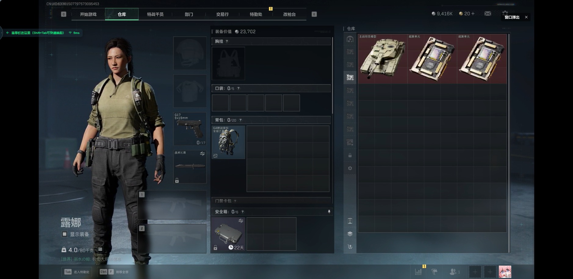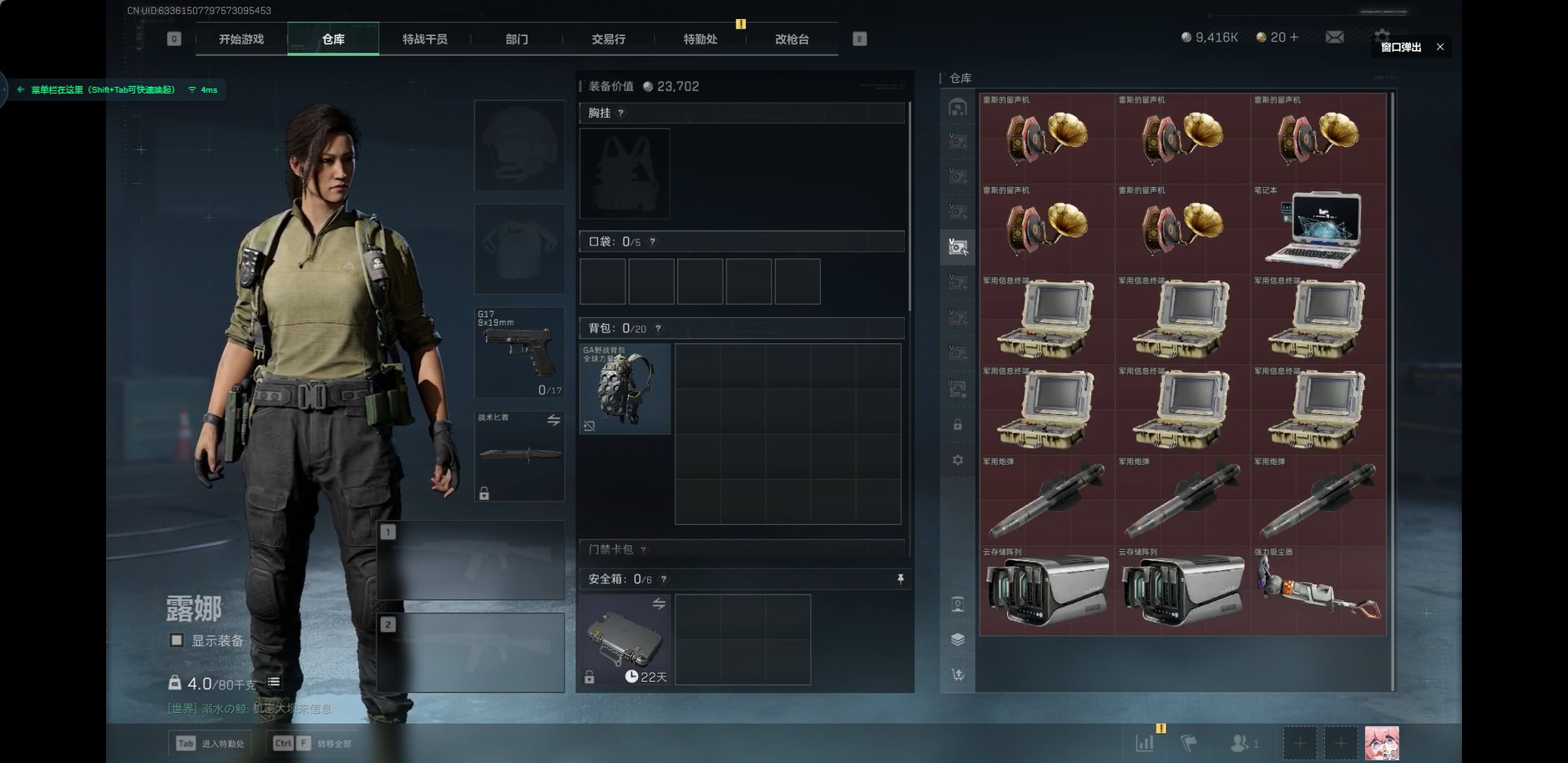 [12291305]总资产:327.6M 1干员外观 12传说枪械 哈夫币:9.416K 高级安全箱(9.17到期) 可二次 可修改实名 烽火地带段位:铂金 全面战场段位:上等兵 传说武器皮肤:SCAR-H战斗步枪-水墨云图,AK-12突击步枪-夜鹰,SMG45冲锋枪-骑士,CAR-15突击步枪-阿米娅,复合弓-黑-天际线,AK-12突击步枪-特斯拉线圈,SR-3M紧凑突击步枪-特斯拉线圈,UZI冲锋枪-特斯拉线圈,勇士冲锋枪-能天使-午夜邮差,725双管霰弹枪-送葬人-无题密令,M7战斗步枪-神秘艺术,CAR-15突击步枪-黑鹰坠落 史诗武器皮肤:AUG突击步枪-蝮蛇,Ash-12战斗步枪-守夜人,SVD狙击步枪-暗夜猎手,M16A4突击步枪-竞赛选手,PKM通用机枪-守夜人,AS Val突击步枪-尖端治疗,M700狙击步枪-守夜人,SG552突击步枪-尖端治疗,SR-25射手步枪-尖端治疗,PKM通用机枪-荒野求生,MP5冲锋枪-深海恐惧,AKM突击步枪-林中猎手,SR-3M紧凑突击步枪-荒野求生,M1014霰弹枪-林中猎手,SV-98狙击步枪-林中猎手,SVD狙击步枪-荒野求生,AS Val突击步枪-典狱官,M250通用机枪-囚徒,SV-98狙击步枪-囚徒,SCAR-H战斗步枪-囚徒,腾龙突击步枪-无垢,MP7冲锋枪-无垢,PSG-1射手步枪-无垢,M14射手步枪-黑鹰坠落,QBZ95-1突击步枪-曙光,沙漠之鹰-曙光,SVD狙击步枪-阿萨拉工艺,S12K霰弹枪-曙光,PKM通用机枪-英雄,M700狙击步枪-竞技风,AUG突击步枪-战术迷彩 干员外观:露娜-黑·天际线