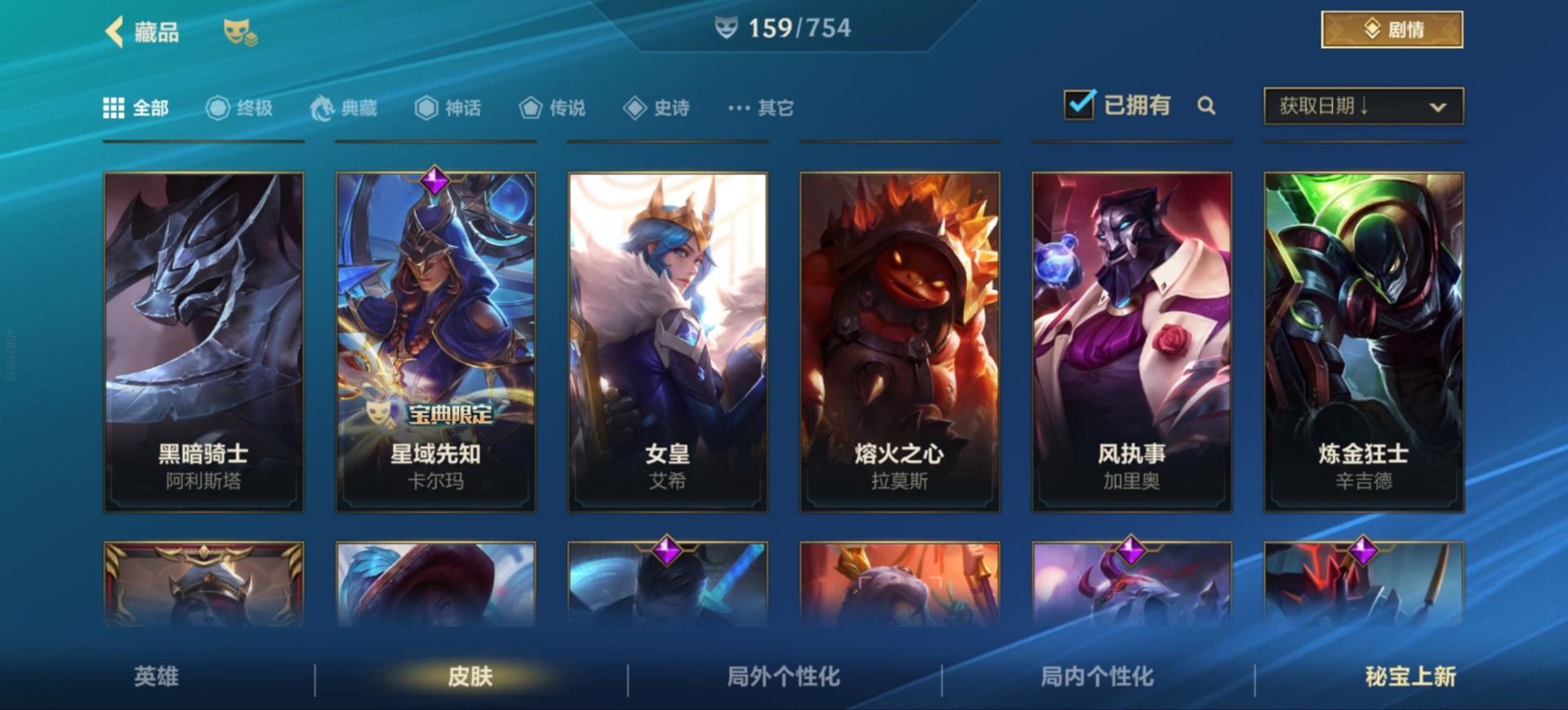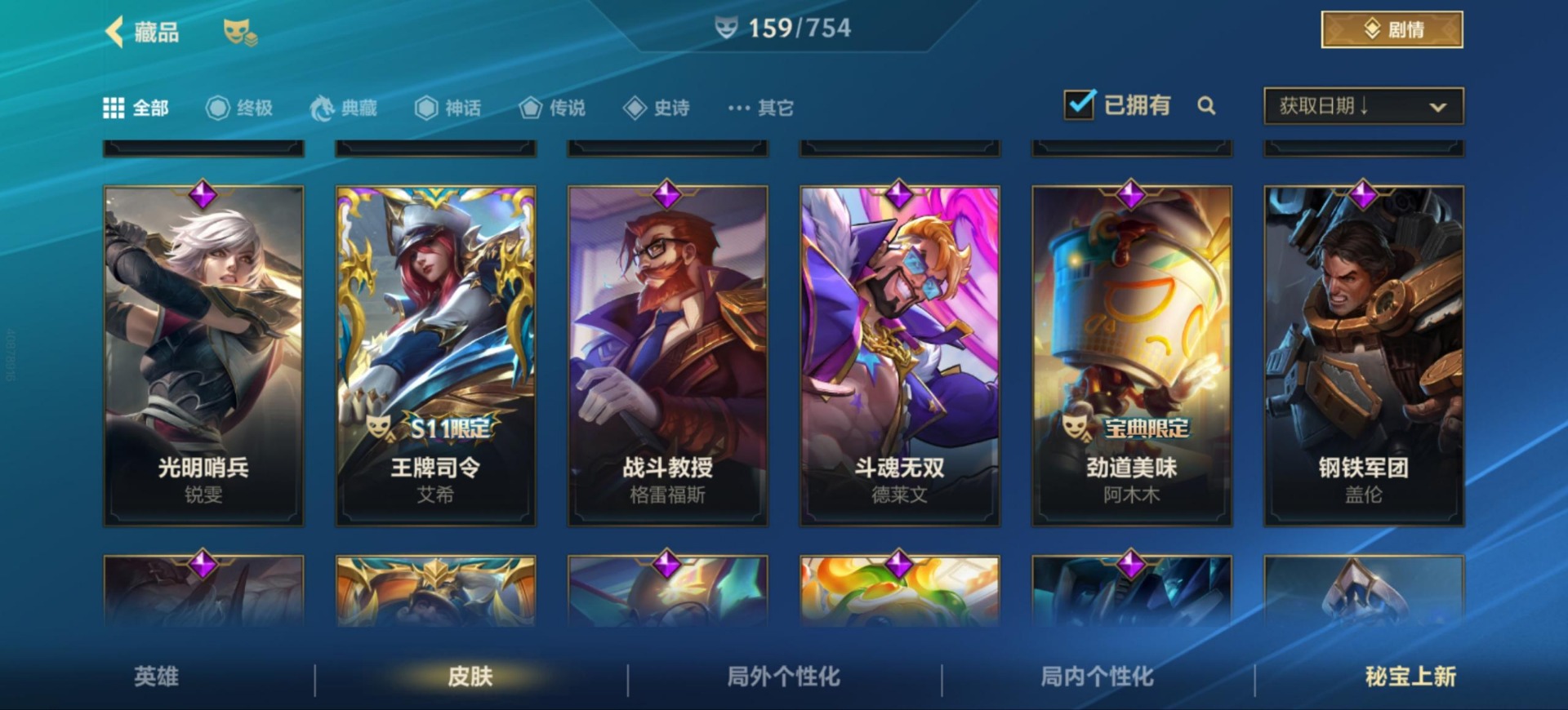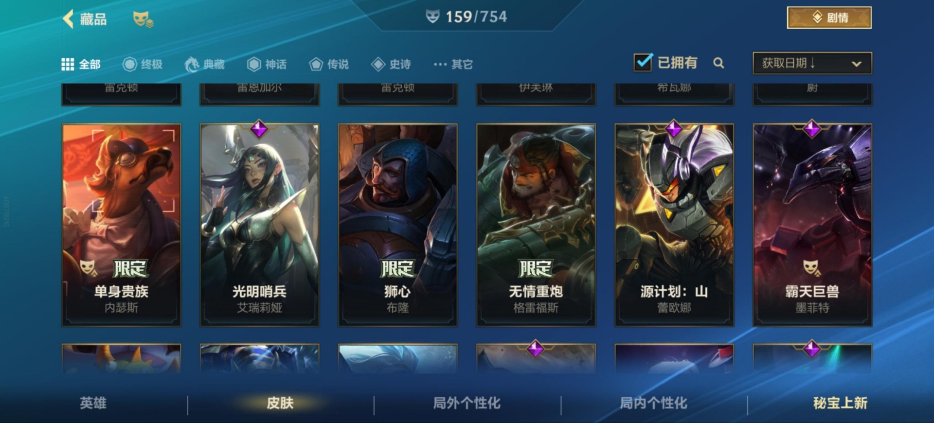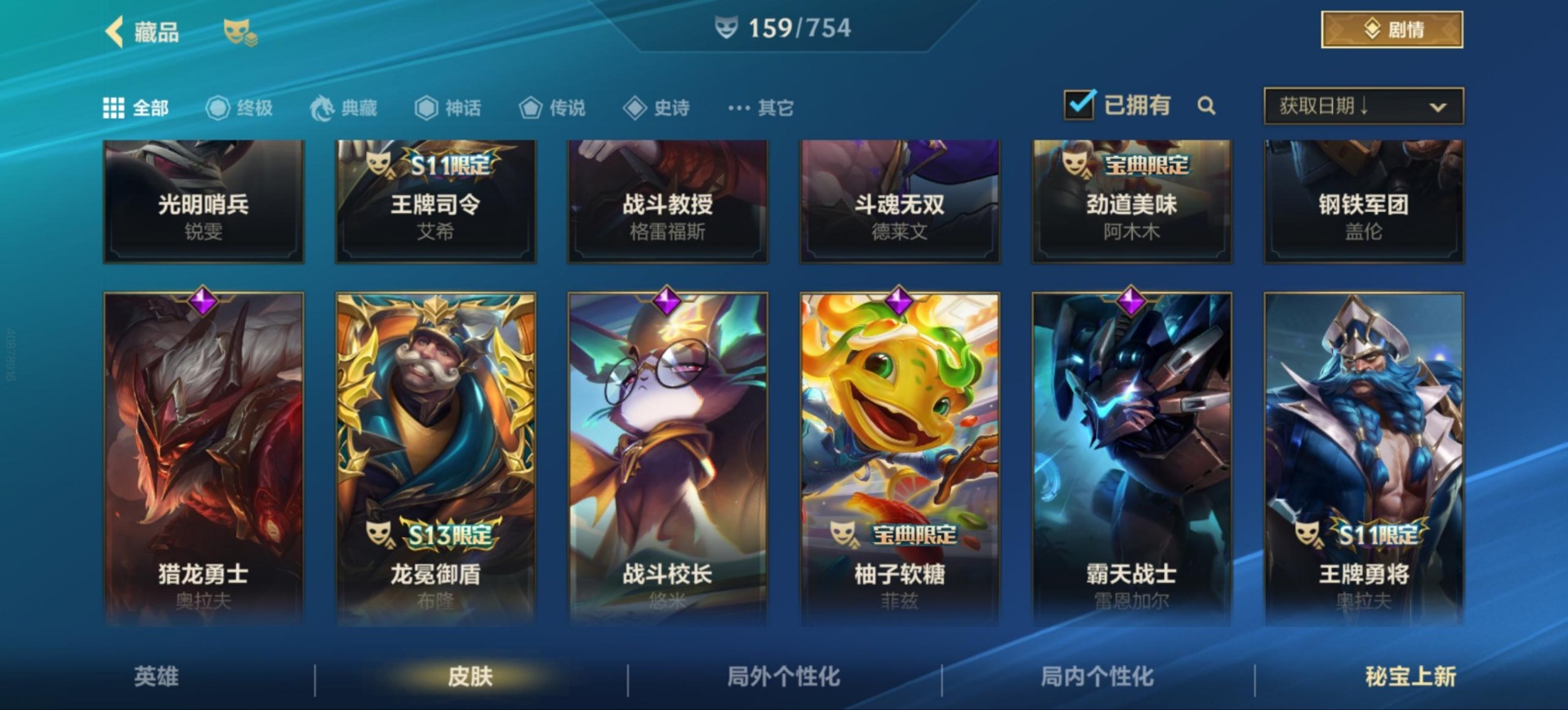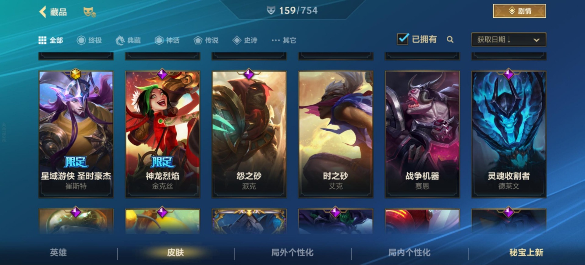 [12291309]2神话 1限定 10传说 71史诗 159皮肤 可二次 可修改实名 优质装备:暗星尊,福牛守护者女枪,光明哨兵薇恩,黑夜使者亚索,炼狱魔犬,神龙尊者 驭风啸龙,神王盖伦,西部魔影卢锡安,星域游侠卡牌圣时豪杰 段位:翡翠 神话皮:天命豪侠 瑟提 限定皮肤:神龙烈焰金克丝 传说皮:地狱之门卫士,太空律动机器人