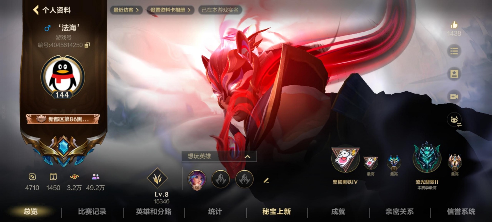 - PX_2095931-[妹子小号 女号!]实名: 可修改 贵族等级: V4 英雄数: 108 皮肤数: 111 传说皮: 山海·琳琅生 限定皮: 遇见飞天,梁祝,高山流水,时之奇旅-妲己,五谷丰年