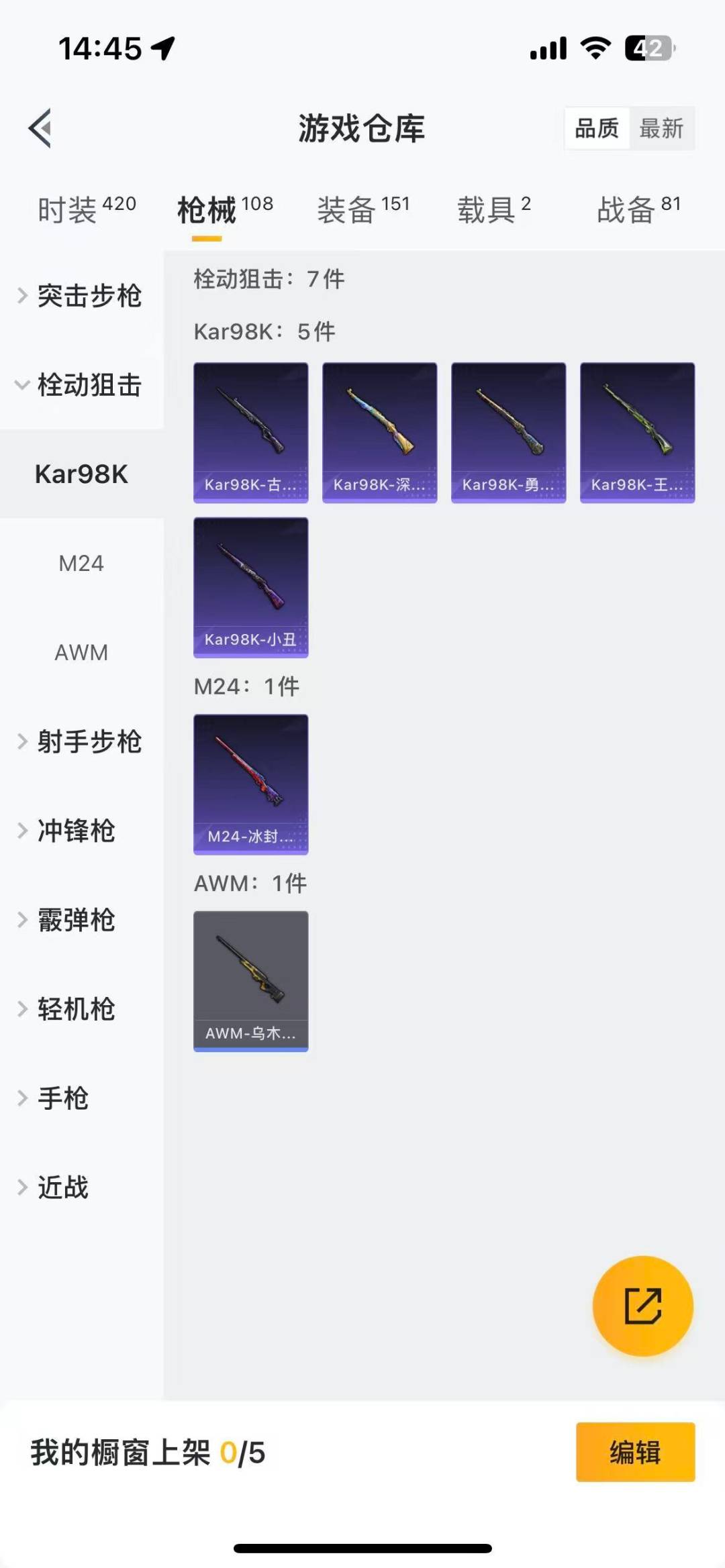 - [11606379]总资产:73.4M 1干员外观 8传说枪械 哈夫币:8.433K 高级安全箱(9.17到期) 可二次 可修改实名 烽火地带段位:黑鹰 全面战场段位:列兵 传说武器皮肤:M4A1突击步枪-阿米娅,CAR-15突击步枪-阿米娅,复合弓-黑-天际线,AWM狙击步枪-捞点薯条,腾龙突击步枪-捞点薯条,93R-捞点薯条,勇士冲锋枪-能天使-午夜邮差,725双管霰弹枪-送葬人-无题密令 史诗武器皮肤:M16A4突击步枪-竞赛选手,PKM通用机枪-荒野求生,MP5冲锋枪-深海恐惧,SR-3M紧凑突击步枪-荒野求生,SV-98狙击步枪-林中猎手,SVD狙击步枪-荒野求生,M250通用机枪-囚徒,SV-98狙击步枪-囚徒,SCAR-H战斗步枪-囚徒,腾龙突击步枪-无垢,MP7冲锋枪-无垢,PSG-1射手步枪-无垢,QBZ95-1突击步枪-曙光,AS Val突击步枪-刀锋,M700狙击步枪-竞技风 干员外观:蜂医-送葬人·无题密令(S5)
