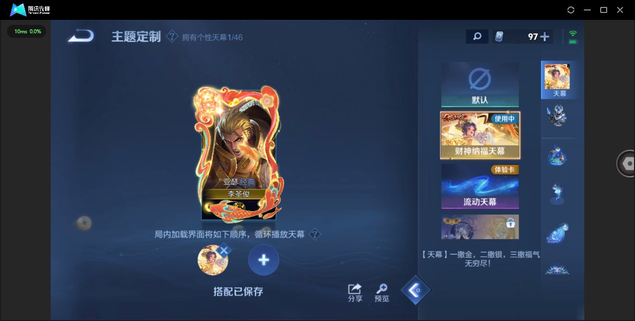 甄姬至美·化雀舞,后羿辉光之辰,司空震愿照·山河定,裴擒虎寅虎·赤拳,李白诗剑行,桑启鸣野蒿,孙悟空大圣娶亲,孙悟空至尊宝,澜愿照·九州拓,虞姬愿照·岁时盈,王昭君映山客