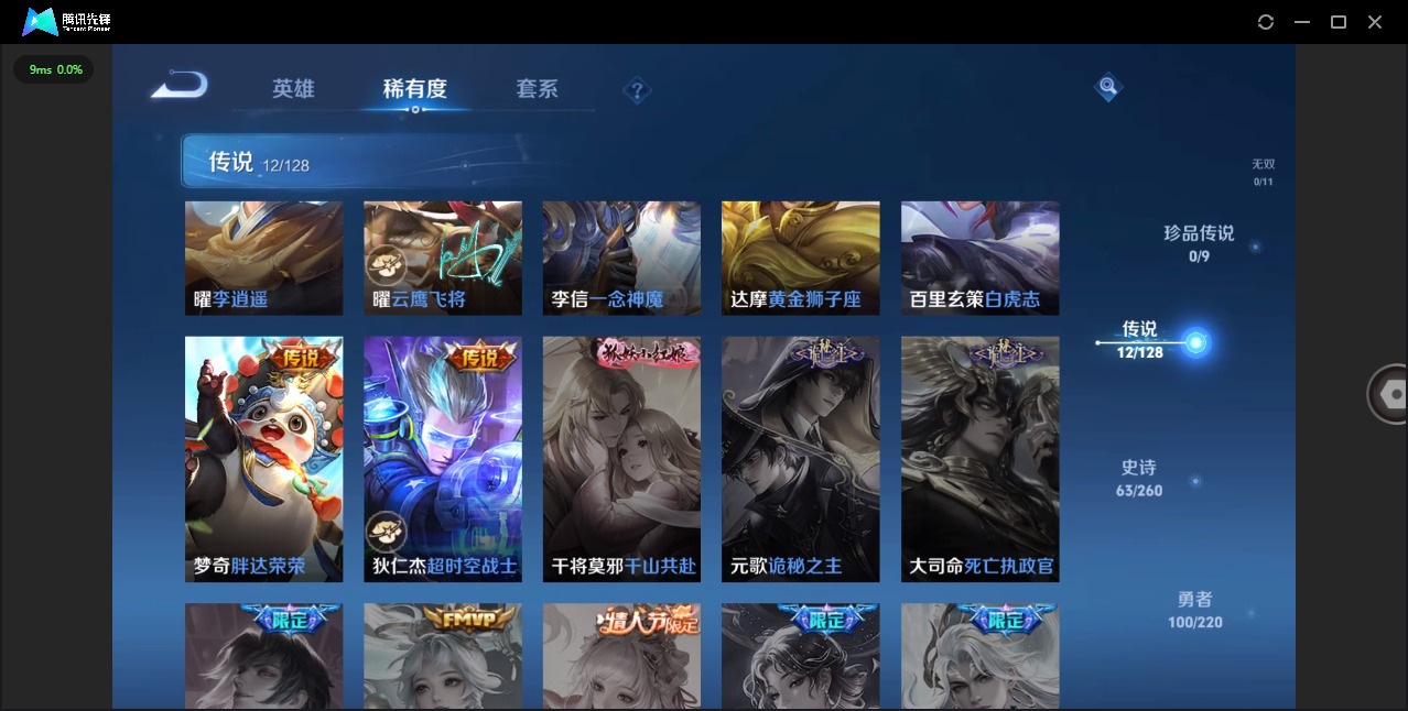 - [11604920]V5 4传说 124英雄 125皮肤 可修改实名 优质装备:冠军飞将,末日机甲-孙尚香(绿蚂蚱) 珍宝阁皮:蔷薇恋人 限定皮:愿照·九州拓(澜年限),鸣野蒿,霸王别姬-虞姬,山海·玄木吟(马可年限) 史诗皮:龙之律动,百相守梦-周瑜,百相守梦-黄忠,无限星赏官,时之恋人-孙尚香,乱世虎臣,节奏热浪,修罗,女仆咖啡,摇滚巨星,水果甜心,绅士熊喵,天才门将,鬼剑武藏,原初追逐者,鹰眼统帅,魅力维加斯,黎明之约,未来纪元-赵云