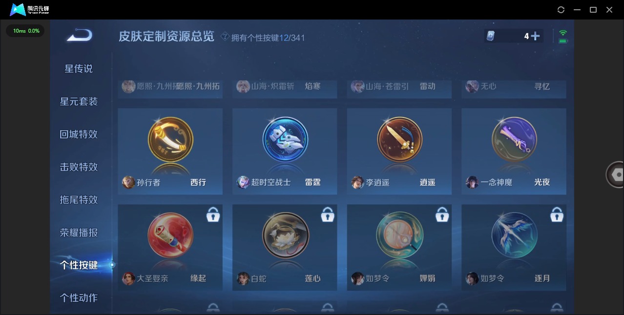 干将莫邪冰霜恋舞曲,吕布御风骁将,裴擒虎李小龙,上官婉儿梁祝,上官婉儿神器·万象笔,上官婉儿天狼绘梦者,桑启鸣野蒿,孙悟空孙行者,孙悟空大圣娶亲,芈月白晶晶,孙悟空至尊宝,孙悟空美猴王,百里玄策白虎志,马超神威,澜愿照·九州拓,关羽冰锋战神